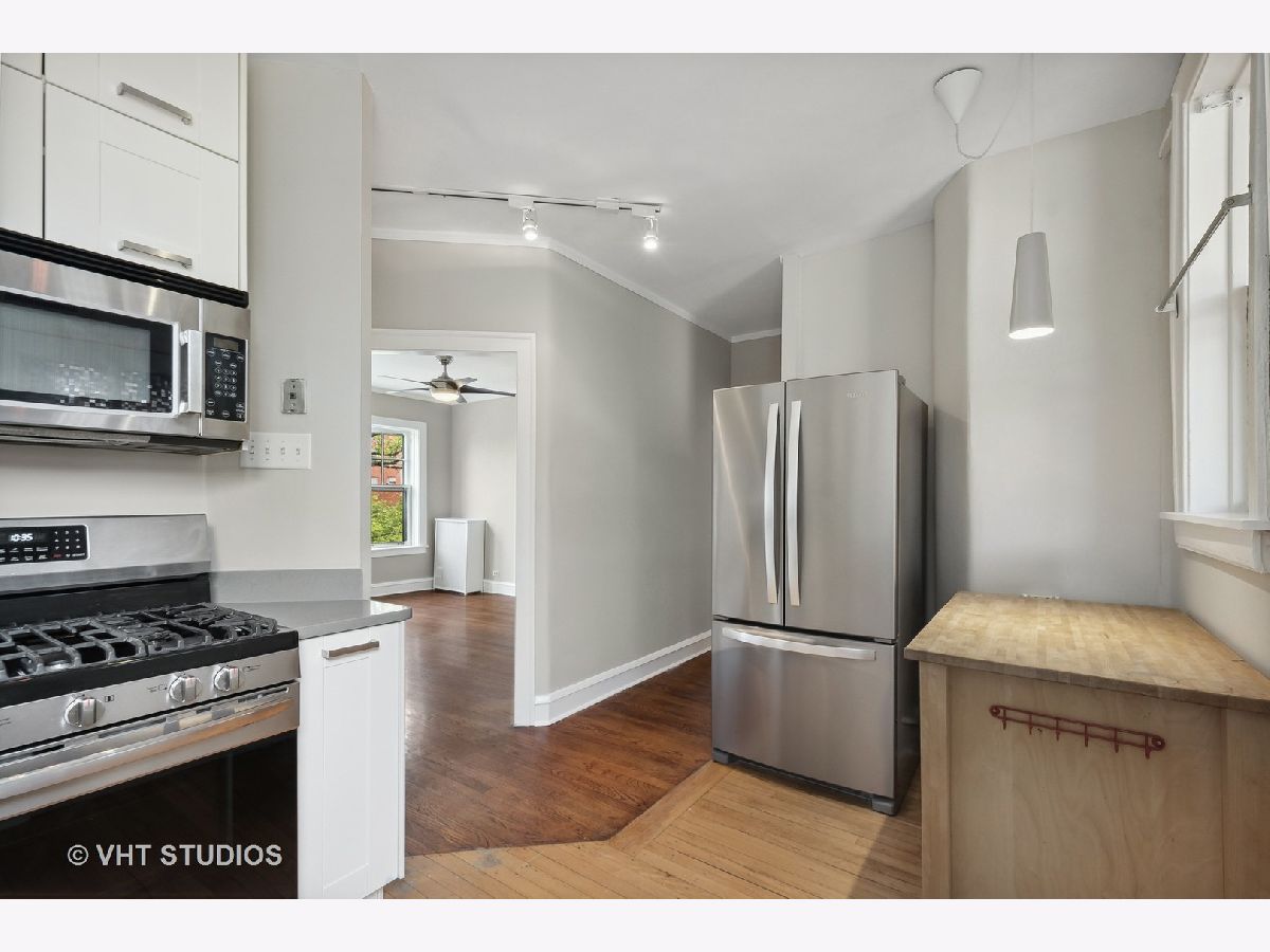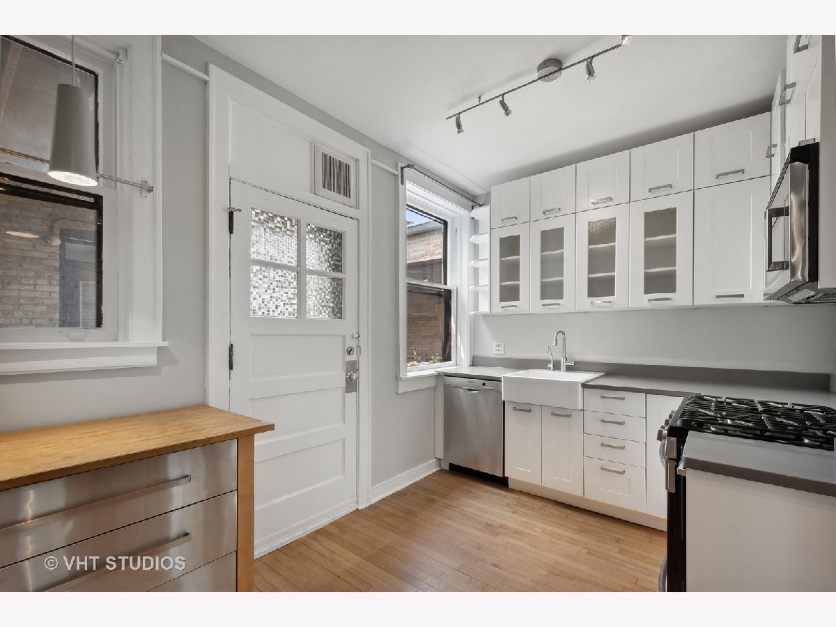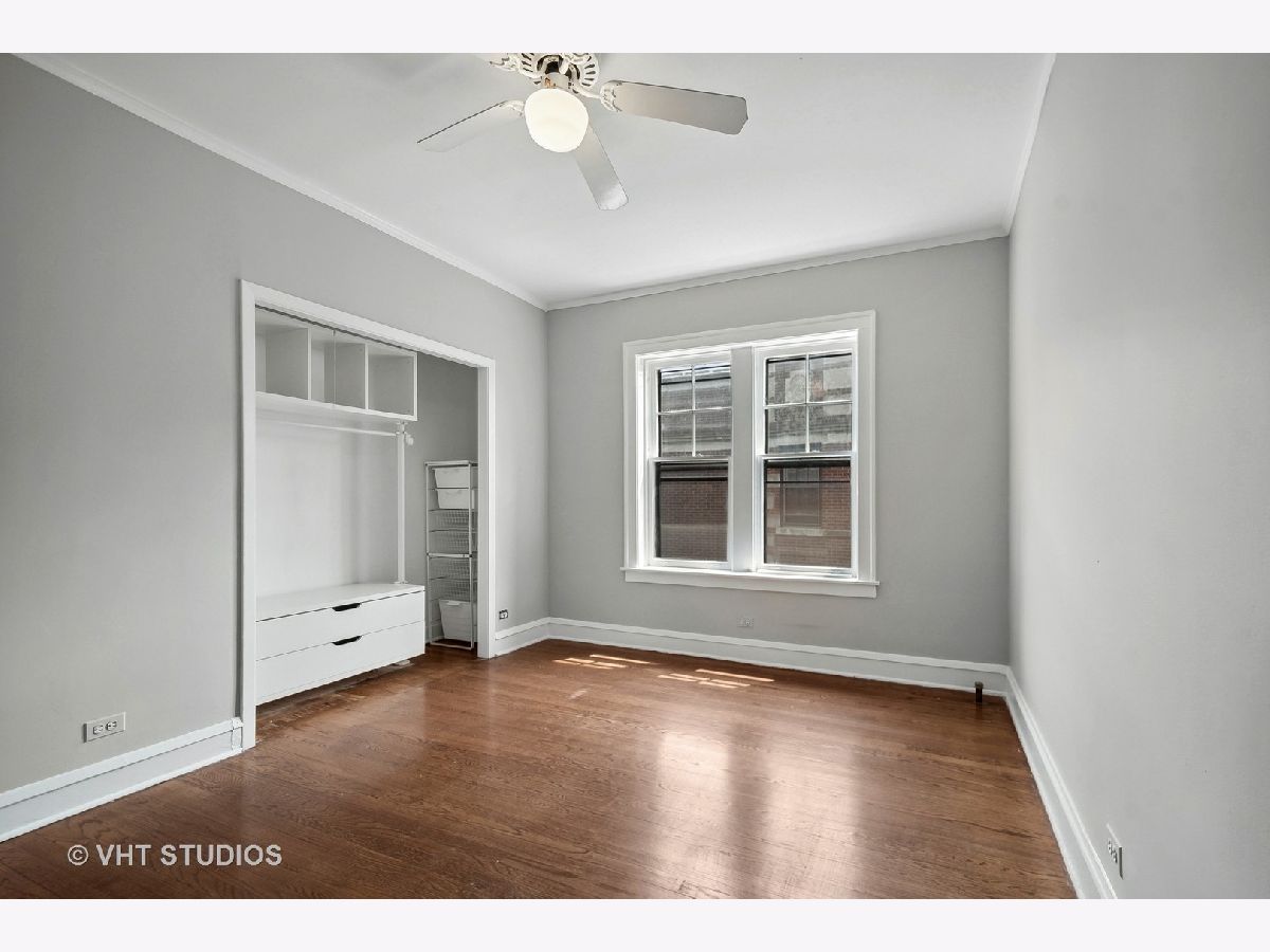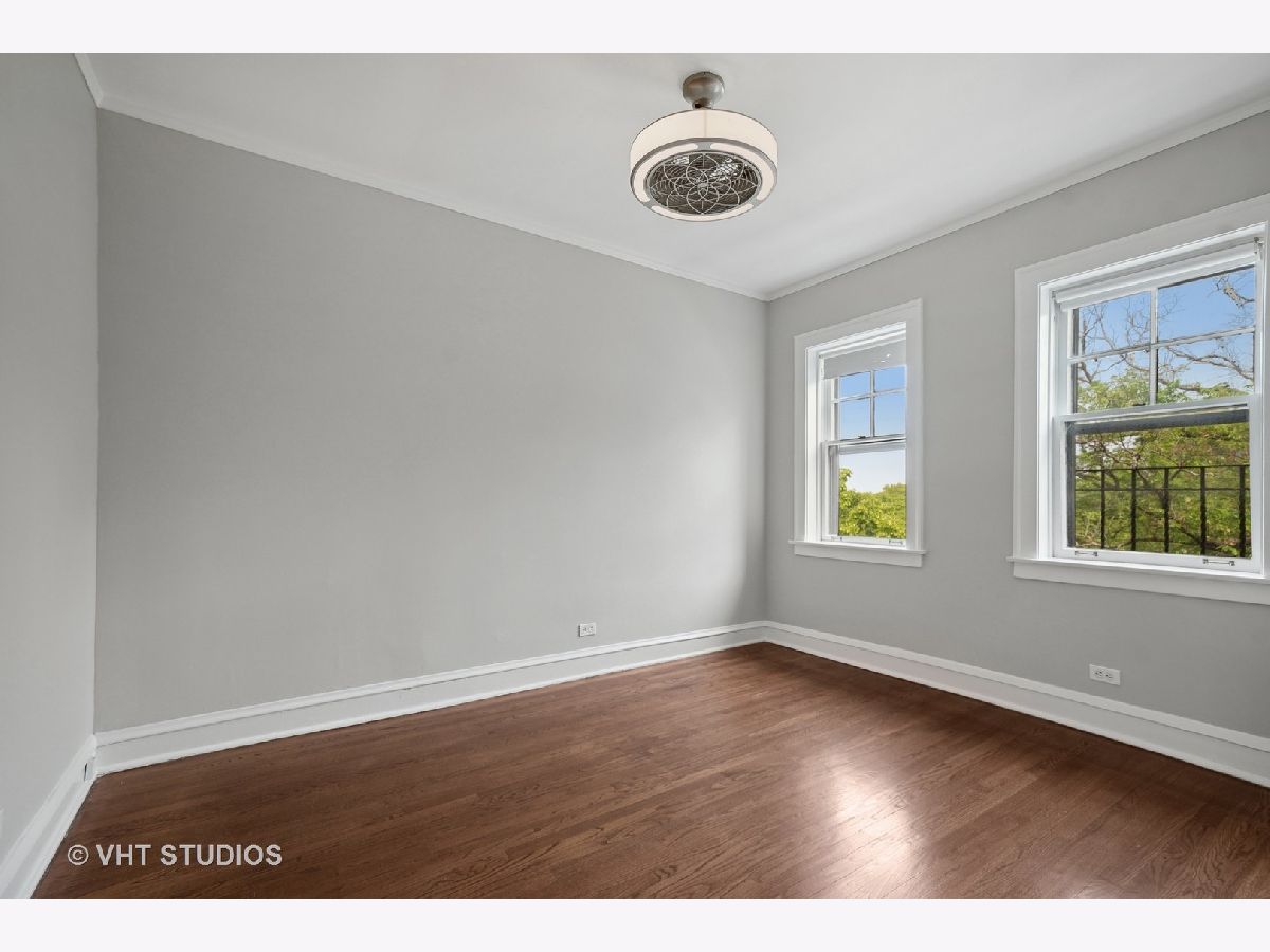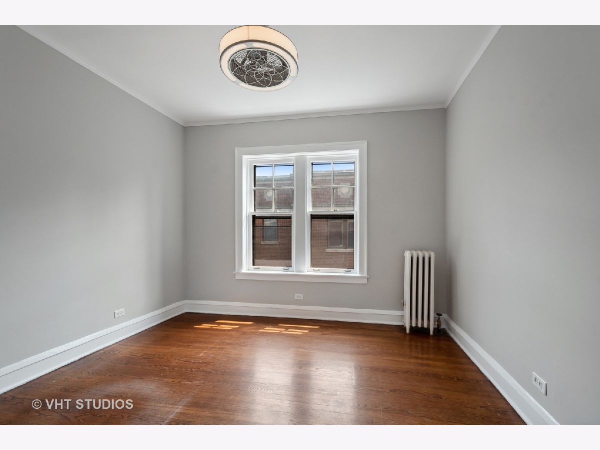 Vintage beauty in Evanston's historic Saint Francis Courts. First impressions matter, and this building does not disappoint as you enter through gorgeous landscaped courtyard surrounded by the brick exterior with beautiful stone detail. Generous, welcoming foyer leads into East facing living room flooded with light, featuring a decorative fireplace. White kitchen with stainless steel appliances is right across the way from the separate formal dining room for relaxed mealtime and entertaining. Split floor plan offers 3 generously sized bedrooms and two full baths. Crown molding and hardwood floors throughout. Lovely communal brick patio on ground level for grilling and gathering. Extra storage space and rechargeable card laundry easily accessed at the base of the rear stairwell. Healthy reserves and well maintained building. 75 Max weight for dogs, 2 cats maximum per unit. No rental restrictions.