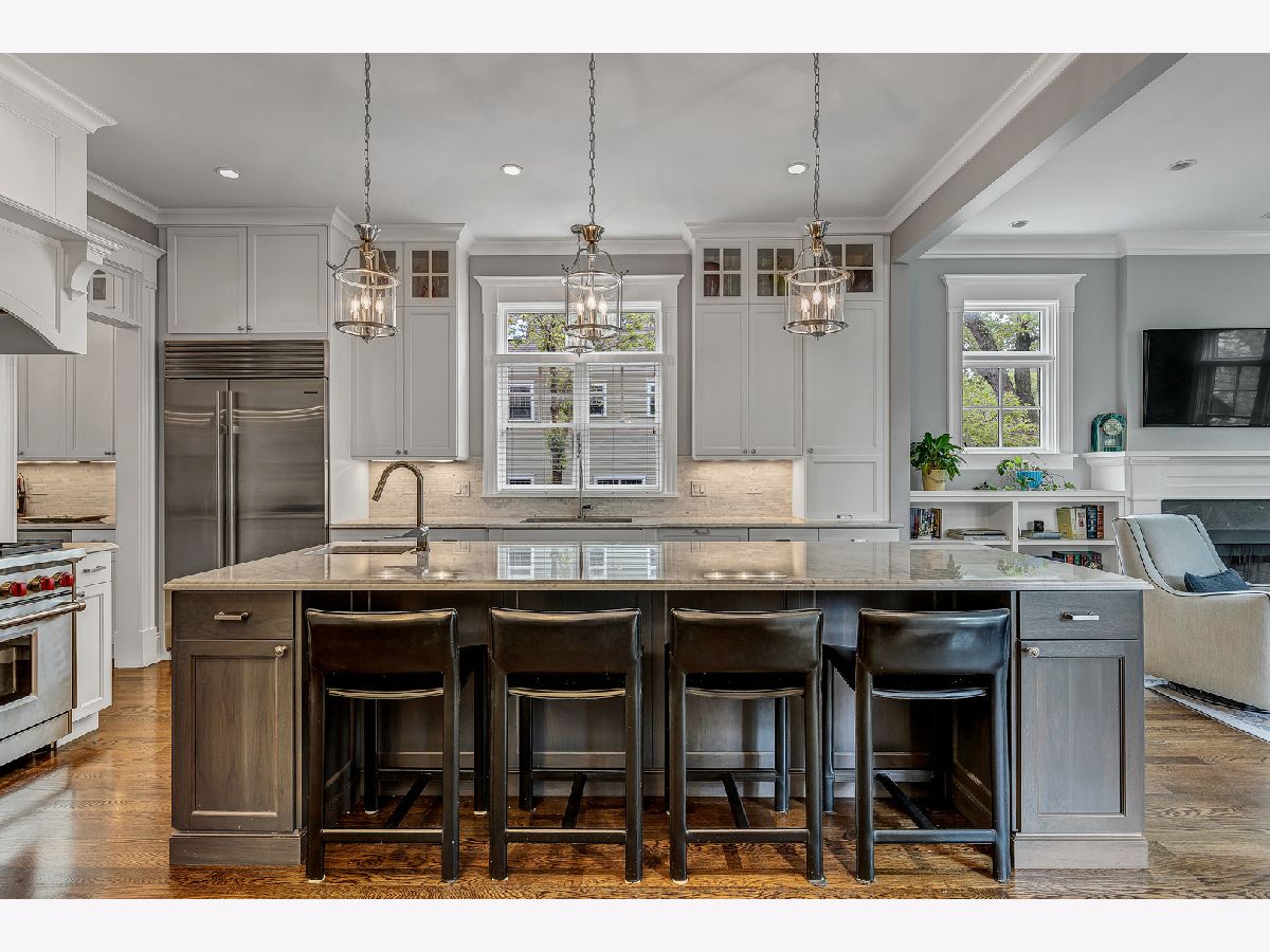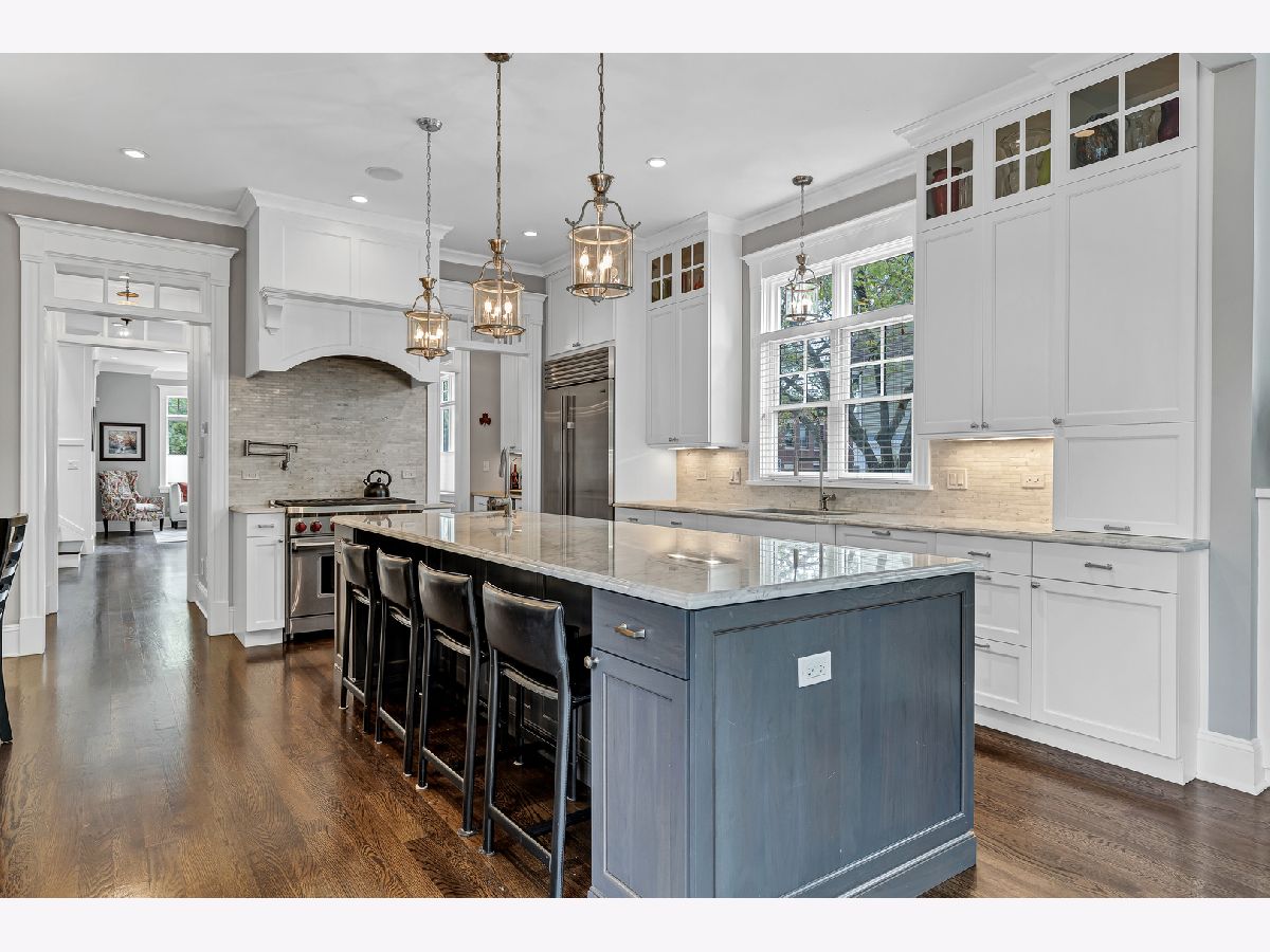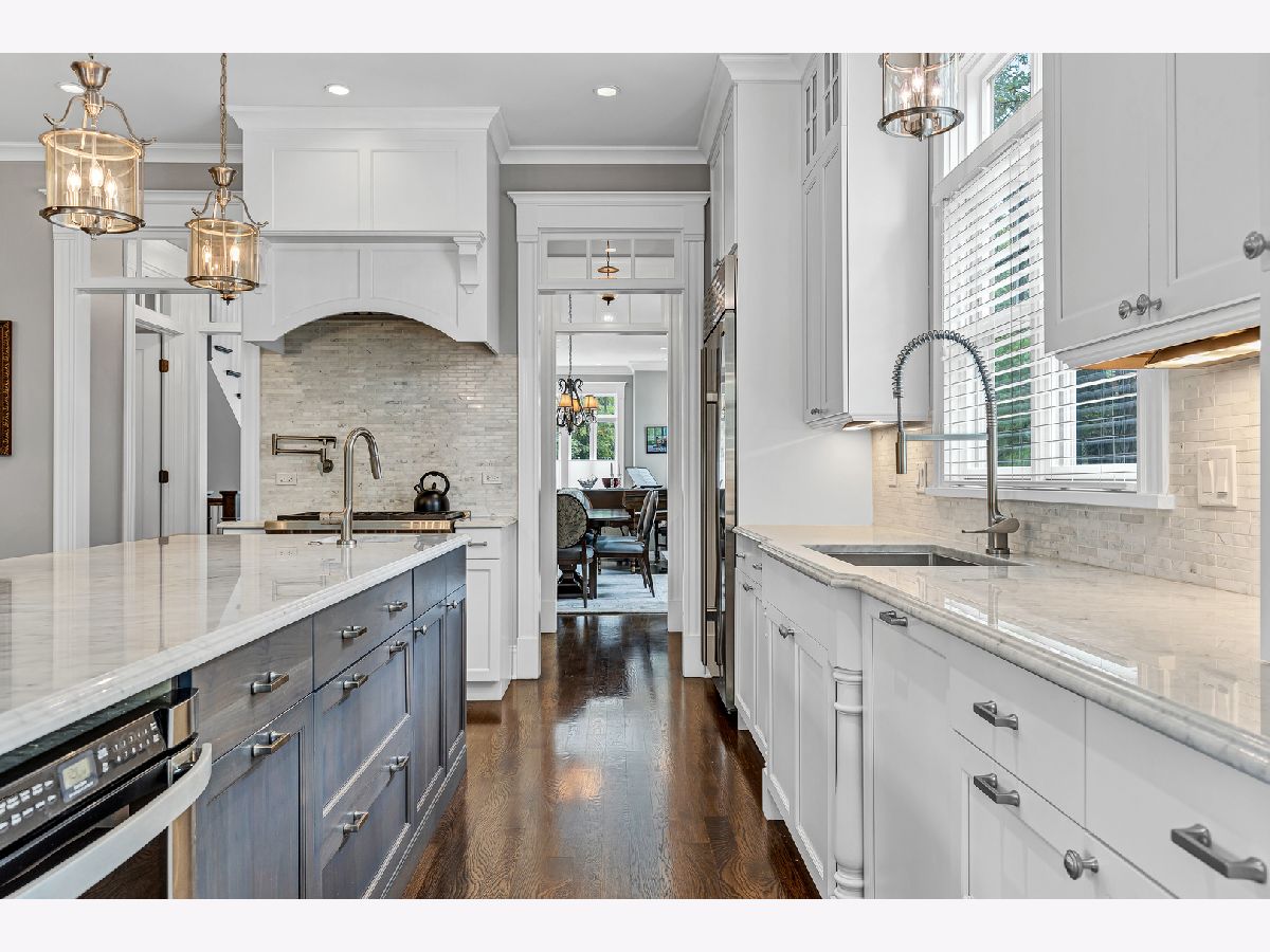 This meticulously built corner lot single family home offers every luxury available. Custom built in 2014, this is the property's first time on the market. Tall ceilings with gorgeous millwork are featured throughout the home. Cathedral ceilings adorn the entire upper level with multiple skylights. An enormous amount of windows are situated on every level providing streams of light in all directions. The superior layout offers an inviting entry which leads to the formal living room and dining room with enough space for a baby grand piano. The open kitchen offers a spacious breakfast bar with cabinetry and seating for 4, a full breakfast room, high end appliances including a Subzero, Wolf and Miele adjacent to the family room which has gorgeous built-in book shelves that flank the fireplace. This main level also includes a butlers pantry with cabinets and a wine refrigerator along with a walk-in pantry and powder room. The primary bedroom offers a luxurious Carrara marble spa bath with a stand-alone soaking tub, separate steam shower with bench, 2 separate vanities, private commode room and an amazing organized walk-in closet. This enormous en-suite also offers another elegant fireplace. The 2nd level also boasts two more generous sized bedrooms with large organized closets, another full bath and a full functioning laundry room with a sink, countertop and cabinetry. The lower level boasts a massive inviting recreation room lined with windows, an elegant wet bar, an office with walk-in closet that could be used as another bedroom, a second powder room, another en-suite bedroom with full bath, huge storage rooms and a second plumbed laundry room currently being used as storage. This home also has handsome hardwood flooring throughout the main and second levels, complete Hardiboard exterior on the home and the garage, 3 full baths plus 2 powder rooms designed for convenient living and zoned heating and cooling. Lush and landscaped, the fenced-in backyard has brick pavers, mature trees and a natural gas spigot for grilling. The elegant timeless finishes throughout this home along with the fantastic location make this an incredible opportunity.