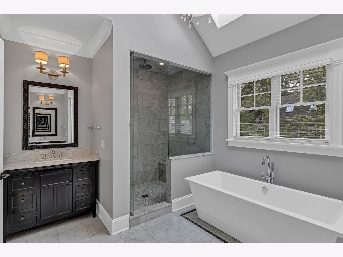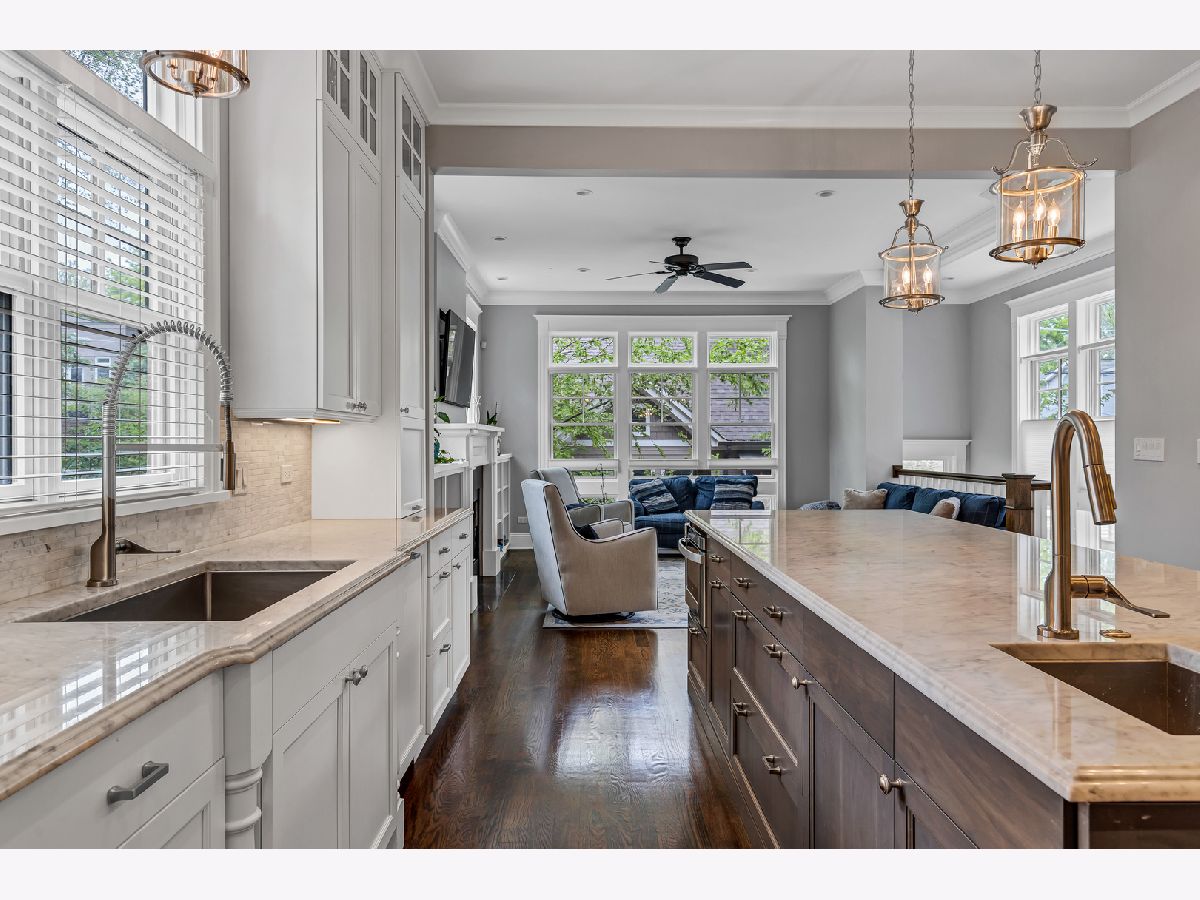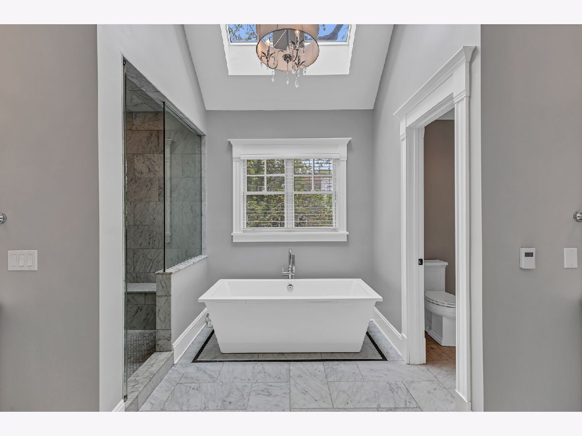 This meticulously built corner lot single family home offers every luxury available. Custom built in 2014, this is the property's first time on the market. Tall ceilings with gorgeous millwork are featured throughout the home. Cathedral ceilings adorn the entire upper level with multiple skylights. An enormous amount of windows are situated on every level providing streams of light in all directions. The superior layout offers an inviting entry which leads to the formal living room and dining room with enough space for a baby grand piano. The open kitchen offers a spacious breakfast bar with cabinetry and seating for 4, a full breakfast room, high end appliances including a Subzero, Wolf and Miele adjacent to the family room which has gorgeous built-in book shelves that flank the fireplace. This main level also includes a butlers pantry with cabinets and a wine refrigerator along with a walk-in pantry and powder room. The primary bedroom offers a luxurious Carrara marble spa bath with a stand-alone soaking tub, separate steam shower with bench, 2 separate vanities, private commode room and an amazing organized walk-in closet. This enormous en-suite also offers another elegant fireplace. The 2nd level also boasts two more generous sized bedrooms with large organized closets, another full bath and a full functioning laundry room with a sink, countertop and cabinetry. The lower level boasts a massive inviting recreation room lined with windows, an elegant wet bar, an office with walk-in closet that could be used as another bedroom, a second powder room, another en-suite bedroom with full bath, huge storage rooms and a second plumbed laundry room currently being used as storage. This home also has handsome hardwood flooring throughout the main and second levels, complete Hardiboard exterior on the home and the garage, 3 full baths plus 2 powder rooms designed for convenient living and zoned heating and cooling. Lush and landscaped, the fenced-in backyard has brick pavers, mature trees and a natural gas spigot for grilling. The elegant timeless finishes throughout this home along with the fantastic location make this an incredible opportunity.