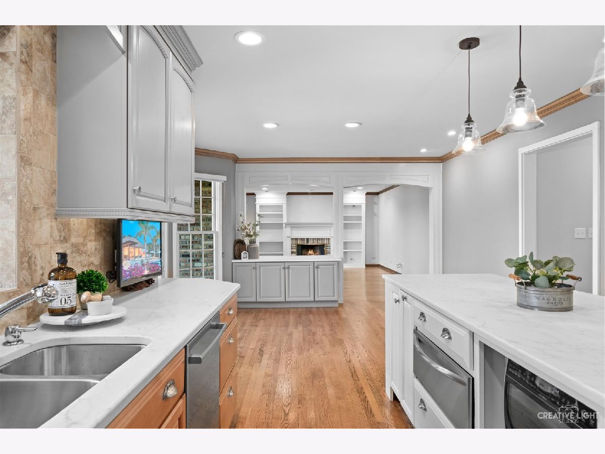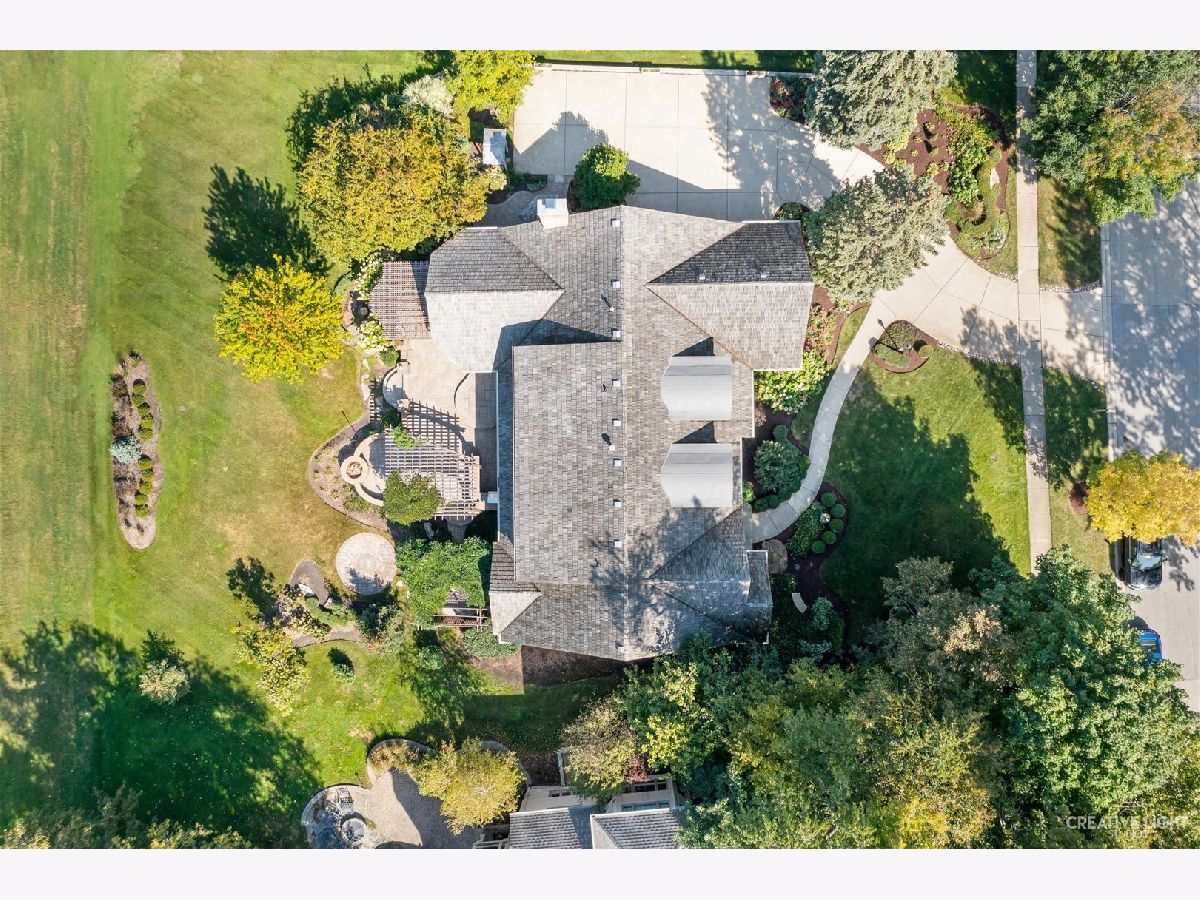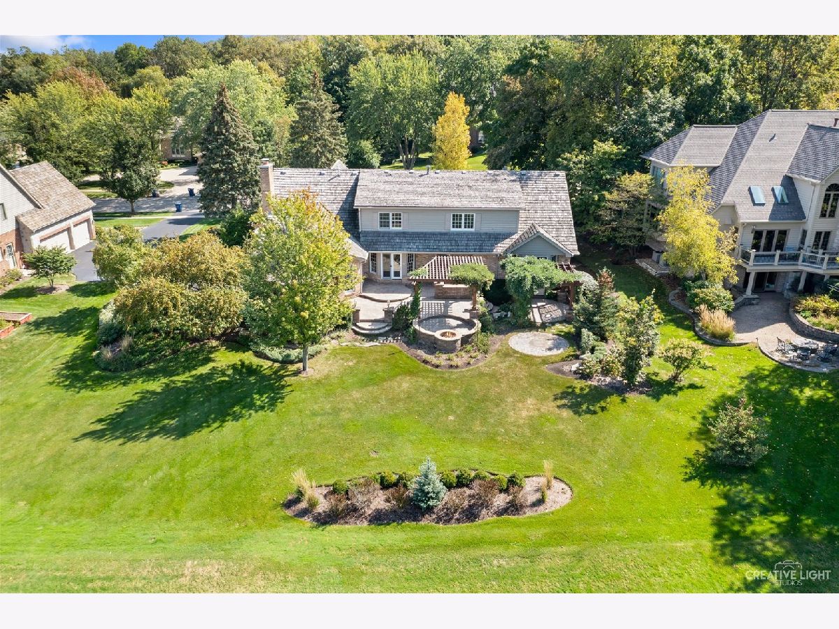 Exquisitely designed, this custom Cape Cod was built to entertain and impress! An idyllic location situated amongst towering trees and offering golf course views with no detail spared throughout 6000+ square feet of living space. The charming yet functional floorplan, 3 FPs, and updates galore await. Chef's kitchen will not disappoint with quartz countertops and high-end appliances. An abundance of light pours through floor-to-ceiling windows in the sunroom, which is adjacent to the family room. Custom Hunter Douglas window treatments allow for a more relaxed ambiance when desired. Sliding doors allow effortless access to the 1800+ sqft paver patio which features multiple outdoor dining areas, a custom built-in grilling station, natural gas fire pit, and custom lighting throughout. Meticulously maintained, the lush foliage allows for a private and tranquil experience. A bedroom (possibly an in-law suite), formal dining room, living room, and office complete the main level. Escape upstairs to a newly remodeled primary bedroom retreat! Three more spaciously sized bedrooms complete the upper level. Bedroom #3, #4 and #5 share a full bath upstairs. A finished basement provides additional entertaining space, ample storage, and your very own workout room. Alternative exterior access is available through the garage stairway. Highly rated D303 schools and conveniently located near restaurants, shopping, and major expressways. This unbeatable location provides for the lifestyle you have been desiring!