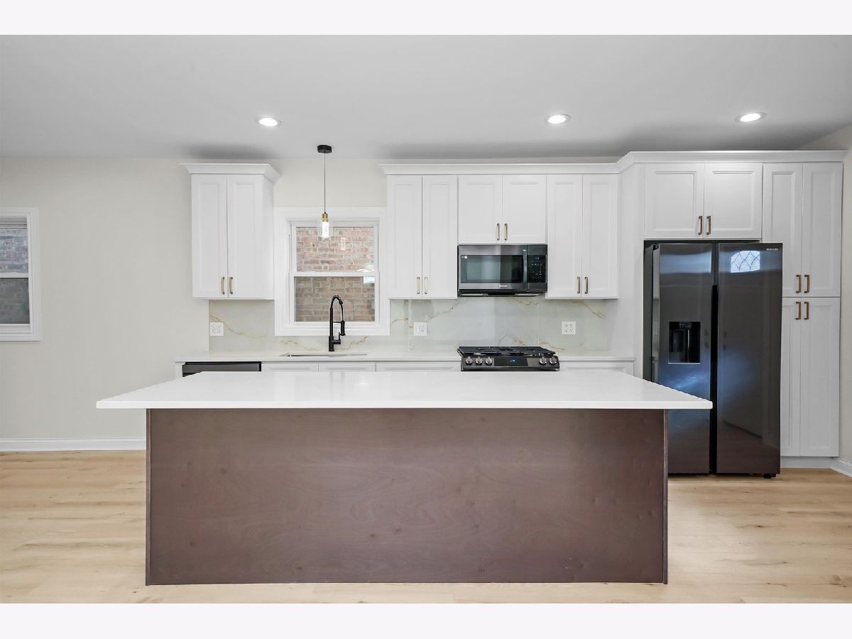 Welcome to this gorgeous and exquisite completely New two- story home. Property features four bedrooms, one of which is located on the main level, and two full bathrooms. The main level offers an open floor plan with plenty of natural light and appealing neutral colors. The modern floor plan combines the living room with a stunning kitchen/dining combo. The kitchen boasts a large island with quartz countertops, backsplash, LED lighting and black stainless steel appliances. Upstairs, the master suite with its walk-in closet, and two other bedrooms. Custom full bathroom with also a tub. Sought-after second floor laundry area.Perfect sized yard for fun entertainment large two car garage. Located in the popular West Lawn area, it is nearby shopping and restaurants, and not far from Midway Airport and the Orange Line for an easy downtown connection.
