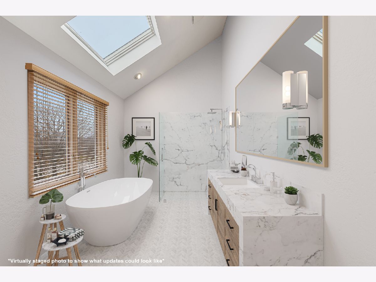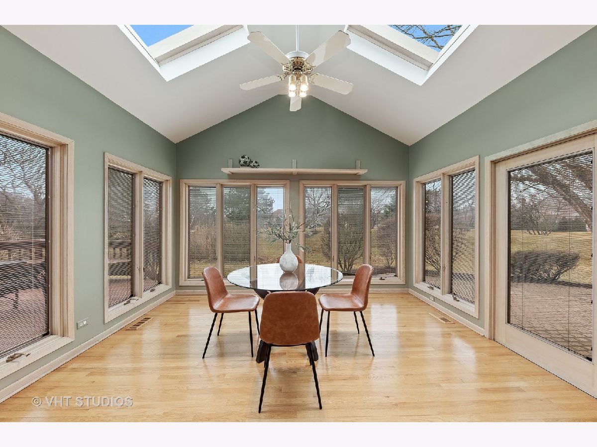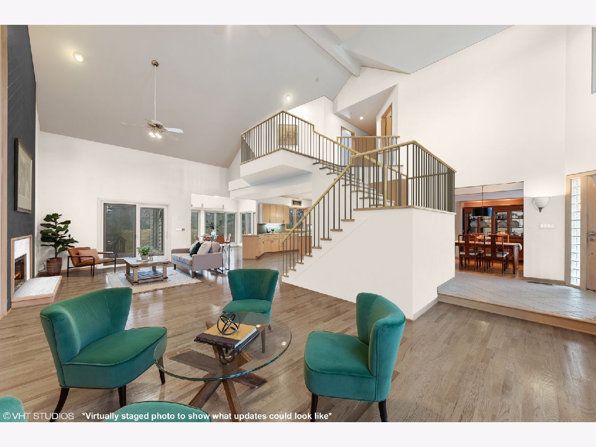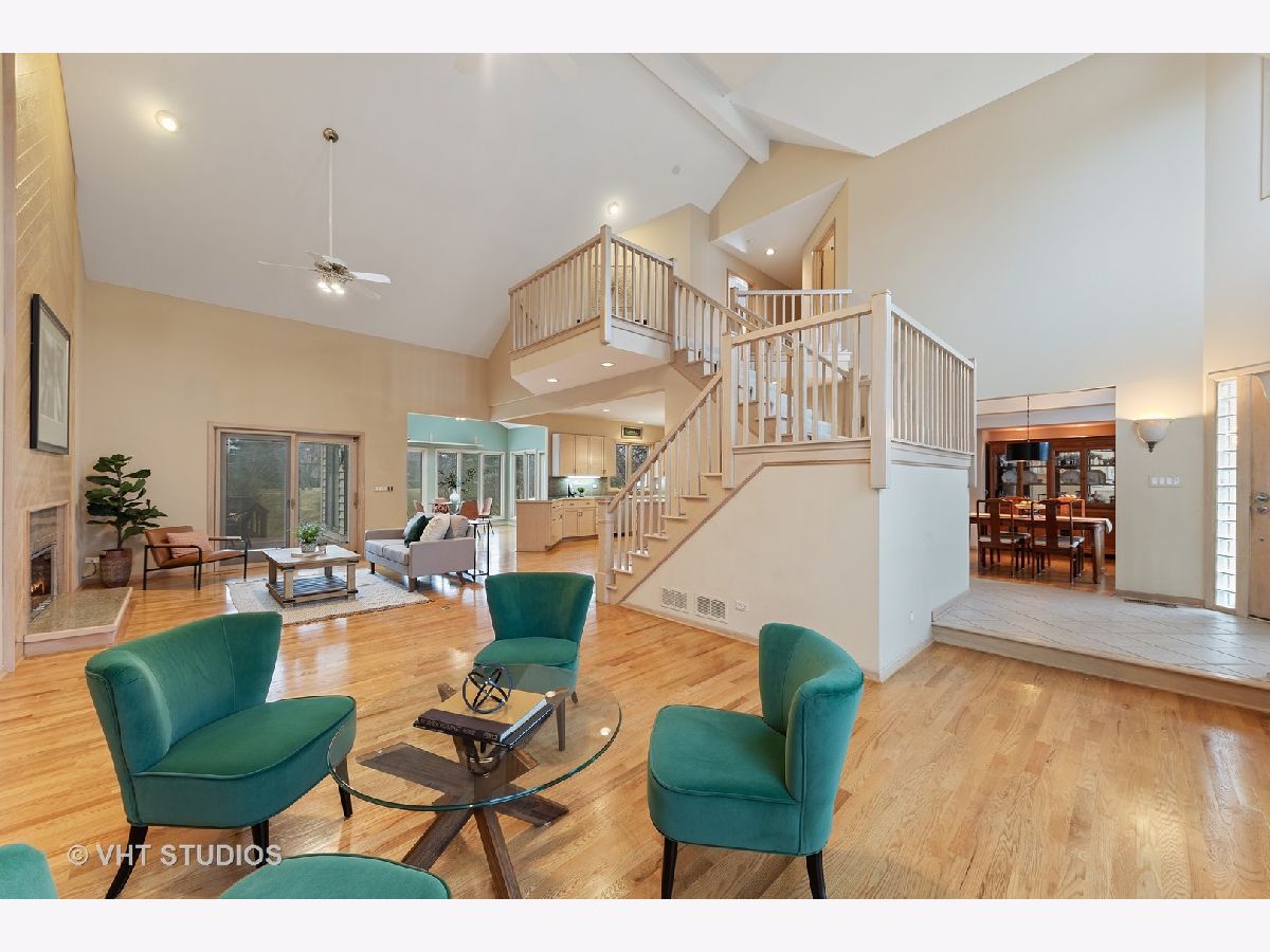 *Check out the video tour for a virtual walk thru of this wonderful home!* Ready for the next trend in home design?! Welcome to this contemporary home in White Eagle's golf course community neighborhood, built around an originally designed 18 hole golf course by Arnold Palmer Design Group, adding to the beauty and peaceful nature of the subdivision. Soaring 18' ceilings span the open living area. The two-story family room is centered with fireplace accented by wood paneling in chevron pattern flowing all the way up to the ceiling. Sun room/eating area off of the kitchen features a peaked ceiling with three walls of windows + skylights that flood this room with natural light and bring the outside in. Your first-floor bedroom or office connects to a full bathroom - perfect for one-level living! Gleaming hardwood floors run throughout the first floor where you will find your dining room, living room, family room, and chef's delight kitchen complete with lighter wood cabinets, stainless steel appliances, large island, & media center. Storage space abounds with over 60 square feet of counter space and cabinets for all your kitchen gadgets. This space welcomes entertaining and cooking parties! Ascend up the wide & open staircase to your second-level. Enjoy the changing seasons from your master suite where a wall of windows and private balcony await you. The suite is complete with two walk-in closets, and a master bathroom with vaulted ceilings, skylights, dual sinks, walk-in shower & tub. Two additional large bedrooms are also located on the second level with a shared full bathroom featuring two showers! The space continues in your freshly painted finished basement with full bathroom! Extra built in storage allows for all your organized treasures. Keep cool in the warmer months with 9 ceiling fans spread throughout this home! 3 car garage. District 204 schools. So many amenities in the community: Golf, tennis, pool, parks, club house! Close to highway access, shopping, dining, Costco, + many more neighborhood spots! While this home is move-in ready, it lends itself to potential new possibilities if you so desire! Get your HGTV, Pinterest, & Instagram creativity flowing! Assessments are $260 per quarter and cover Clubhouse, pool, tennis. *If anyone is experiencing symptoms related to the current COVID-19 virus, we please ask that you arrange a virtual showing.* Some photos have been virtually staged to show what updates could look like.