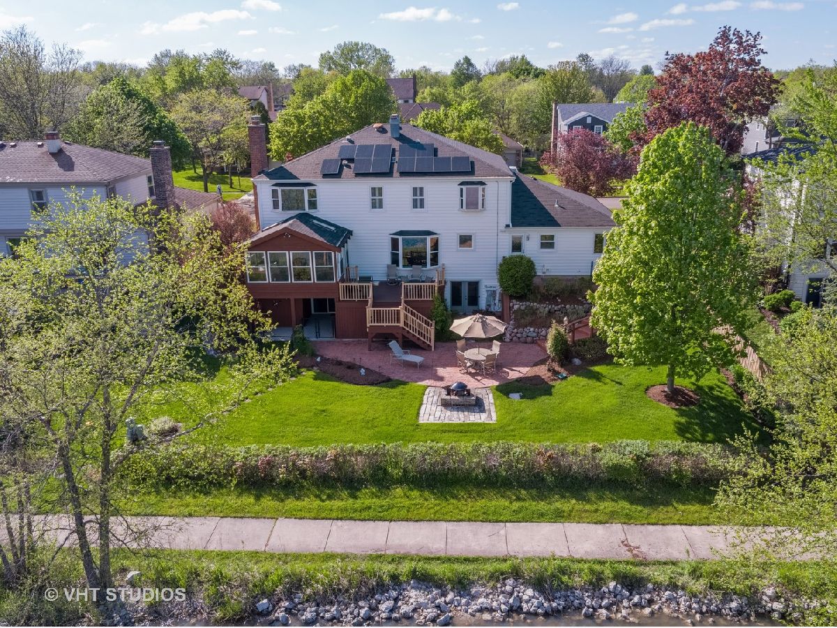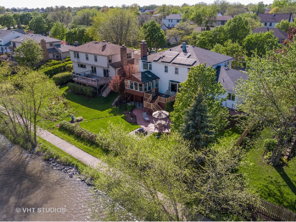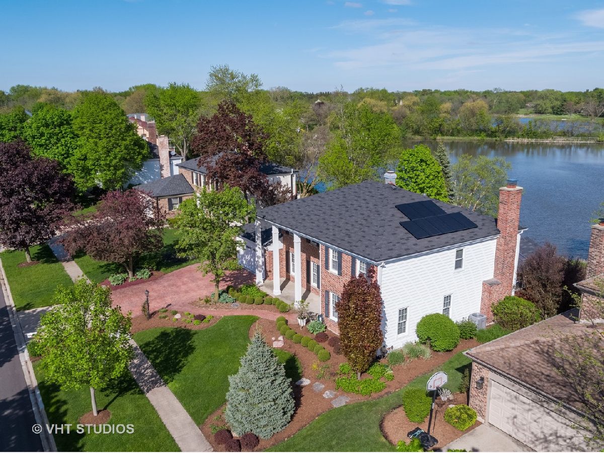 Better hurry, this home is spectacular! Note that the taxes and exemptions have been updated in the MLS. Almost 3300 sq ft plus a finished walkout basement! Breathtaking views of park district wetlands, walking path and "Lake Charlemagne!" 2018 and 2019 Hoffman Estates beautiful landscaping award winner! Welcoming covered front entry and gracious foyer! Desirable flowing floorplan throughout the main level! The formal dining room is connected to the kitchen by a butler's service pantry/bar with a granite countertop and glass door cabinetry! The lovely living room has crown molding and decorative glass double doors! There is a private main level office and updated first floor powder room! You will love the handy mudroom off of the garage which has a utility sink, cabinets, coat/storage cubbies and a new washer/dryer! The "dream kitchen" has tons of cabinets, generous granite counterspace, a fantastic walk-in pantry, newer stainless appliances, hardwood flooring and under-cabinet accent lighting! The adjoining kitchen eating area can accommodate a large table and has a huge picture window for great natural light and backyard/water views! The fabulous family room has a cozy wood burning fireplace, new hardwood flooring, recessed lighting and crown molding! Enjoy your morning coffee or peaceful evening sunsets from the enclosed porch! The patio, fire-pit and newer Trex deck are perfect for outdoor gatherings! 5 huge upstairs bedrooms also provide great closet space! BR 5 is currently used as a second office and has hardwood flooring and built in shelves. The master suite has two walk-in closets with organizers, hardwood flooring, a mounted TV, and a bay window overlooking the water! The updated private master bath has a separate dressing area, two sinks, granite countertops and glass shower! The updated second upstairs bath has a double sink! Note the stunning open stairway! The massive basement rec room has newer carpeting and paneling, recessed lighting, an electric fireplace, mounted TV and pool table! Check out the bonus game room/multi purpose room which was updated in 2017 and has sound proofing! There is also a convenient basement powder room! All of this plus additional space for your indoor storage needs! The lower level attached shed and under deck storage can be used for patio furniture, bikes, yard equipment, and more! This home has also been equipped with solar panels (2019)! Impressive stamped concrete driveway and walkway, inground sprinkler system and gutter guards! This home backs to the walking path which leads to the neighborhood playground, tennis courts and basketball court! Just across Algonquin Rd is the forest preserve and wonderful bike path! Truly a fantastic home for indoor and outdoor entertaining! Fremd High School! Living room and dining room just repainted to a neutral sandy color! Photos reflect the previous decor.