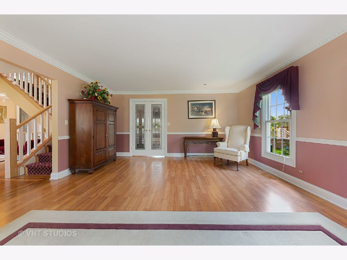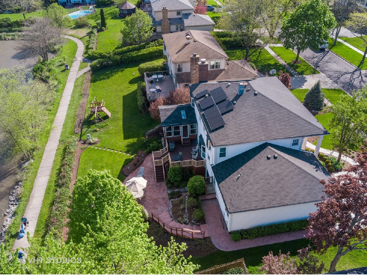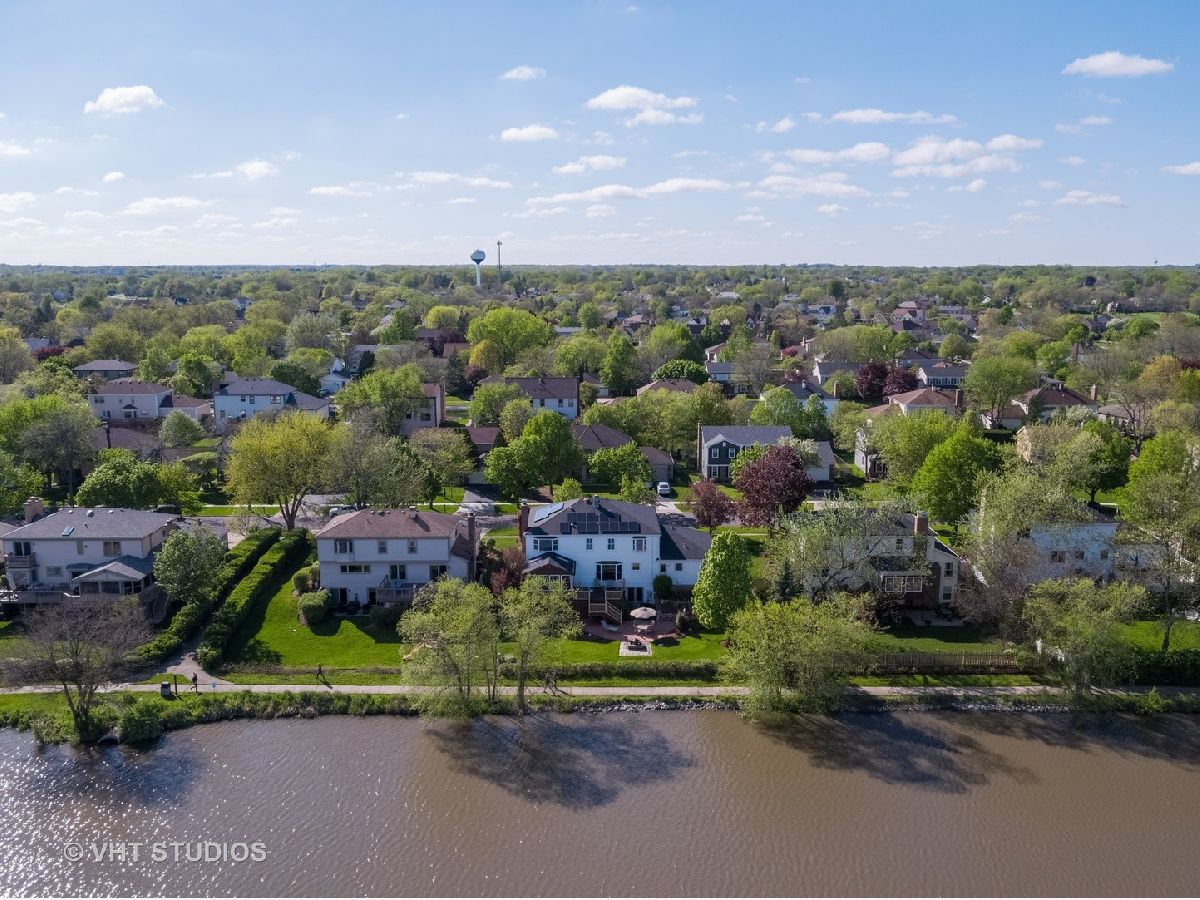 Better hurry, this home is spectacular! Note that the taxes and exemptions have been updated in the MLS. Almost 3300 sq ft plus a finished walkout basement! Breathtaking views of park district wetlands, walking path and "Lake Charlemagne!" 2018 and 2019 Hoffman Estates beautiful landscaping award winner! Welcoming covered front entry and gracious foyer! Desirable flowing floorplan throughout the main level! The formal dining room is connected to the kitchen by a butler's service pantry/bar with a granite countertop and glass door cabinetry! The lovely living room has crown molding and decorative glass double doors! There is a private main level office and updated first floor powder room! You will love the handy mudroom off of the garage which has a utility sink, cabinets, coat/storage cubbies and a new washer/dryer! The "dream kitchen" has tons of cabinets, generous granite counterspace, a fantastic walk-in pantry, newer stainless appliances, hardwood flooring and under-cabinet accent lighting! The adjoining kitchen eating area can accommodate a large table and has a huge picture window for great natural light and backyard/water views! The fabulous family room has a cozy wood burning fireplace, new hardwood flooring, recessed lighting and crown molding! Enjoy your morning coffee or peaceful evening sunsets from the enclosed porch! The patio, fire-pit and newer Trex deck are perfect for outdoor gatherings! 5 huge upstairs bedrooms also provide great closet space! BR 5 is currently used as a second office and has hardwood flooring and built in shelves. The master suite has two walk-in closets with organizers, hardwood flooring, a mounted TV, and a bay window overlooking the water! The updated private master bath has a separate dressing area, two sinks, granite countertops and glass shower! The updated second upstairs bath has a double sink! Note the stunning open stairway! The massive basement rec room has newer carpeting and paneling, recessed lighting, an electric fireplace, mounted TV and pool table! Check out the bonus game room/multi purpose room which was updated in 2017 and has sound proofing! There is also a convenient basement powder room! All of this plus additional space for your indoor storage needs! The lower level attached shed and under deck storage can be used for patio furniture, bikes, yard equipment, and more! This home has also been equipped with solar panels (2019)! Impressive stamped concrete driveway and walkway, inground sprinkler system and gutter guards! This home backs to the walking path which leads to the neighborhood playground, tennis courts and basketball court! Just across Algonquin Rd is the forest preserve and wonderful bike path! Truly a fantastic home for indoor and outdoor entertaining! Fremd High School! Living room and dining room just repainted to a neutral sandy color! Photos reflect the previous decor.