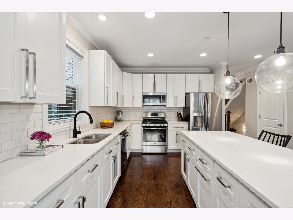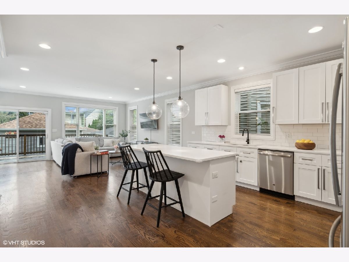 This 4-bedroom, 3.5-bath single family home with an exceptionally wide floor plan is spacious and thoughtfully renovated throughout on a quiet tree-lined street on a standard 25X125 lot. A full gut renovation created an open, flexible, layout with generous room sizes. The main level offers a versatile setup with both living and family rooms on either side of a gourmet white kitchen, featuring 42" white cabinetry, quartz countertops, high-end stainless steel appliances, pantry, and an oversized island with breakfast bar, perfect for everyday use and entertaining. The second level includes a large primary suite with ensuite bath featuring a dual vanity, soaking tub, and separate shower. Two other bedrooms complete the second level with a shared hall full bath. Enjoy serene views out the front bedroom large windows. The finished basement adds valuable living space with a wet bar with beverage fridge, large recreation area, and additional guest bedroom. Other features include, window treatments, large laundry room with side-by-side laundry and wet sink, hardwood floors, crown molding, updated lighting and a beautifully appointed wooden staircase. Enjoy three outdoor living areas, a front porch and a spacious backyard with deck, ideal for entertaining and outdoor gatherings. Fully fenced in yard and 2 car private garage. Ideally located in the heart of Irving Park with easy access to Old Irving, Avondale, and Roscoe Village. Enjoy proximity to neighborhood parks, local dining, and everyday conveniences, along with nearby CTA and Metra options for an easy commute and quick access to the rest of the city.