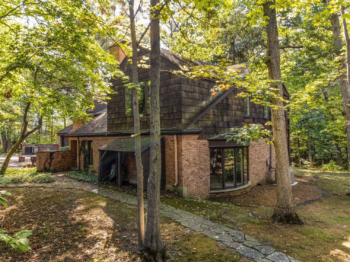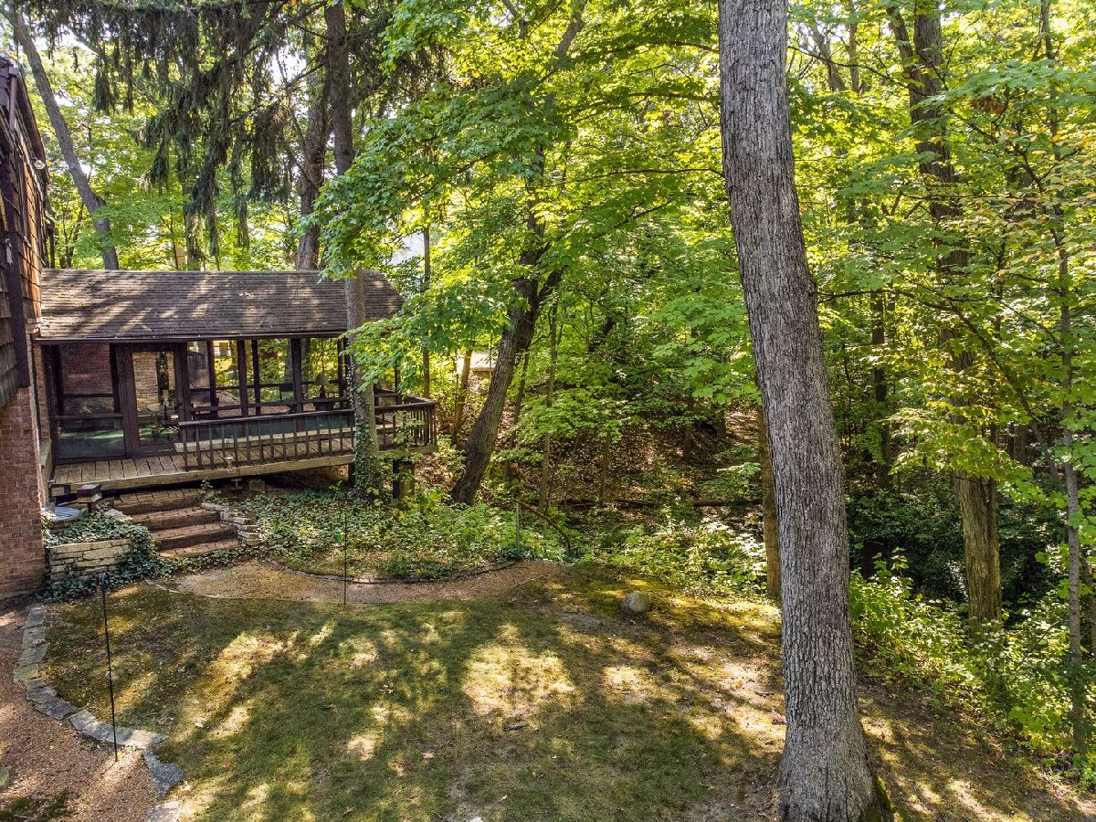 One of the most amazing settings you'll find for privacy, convenience, and gorgeous views! Located just off Sheridan Road in east Lake Forest you'll find this interesting home tucked away and yet just minutes from town, train, schools, beach, and Lake Bluff. With over 3400 square feet on nearly 3/4 of an acre there is plenty of space for indoor and outdoor enjoyment. The family room opens to a beautiful, spacious screened-in porch with views of a magnificent ravine. A brick patio and wood deck off the porch with steps down through the ravine provide a gorgeous view and exciting indoor/outdoor living for today's healthy lifestyle. The kitchen includes a pleasant eating area with a large bow window. On the second level the large knotty pine study with built-ins is perfect for a home office. The oversized two-car attached garage opens into a mud room area with laundry room and half bath. The large, unfinished partial basement has space for a rec room and also offers extra storage. A shed with work space and electricity is located at the rear of the property. Don't miss this opportunity to own a very unique home in an outstanding location.