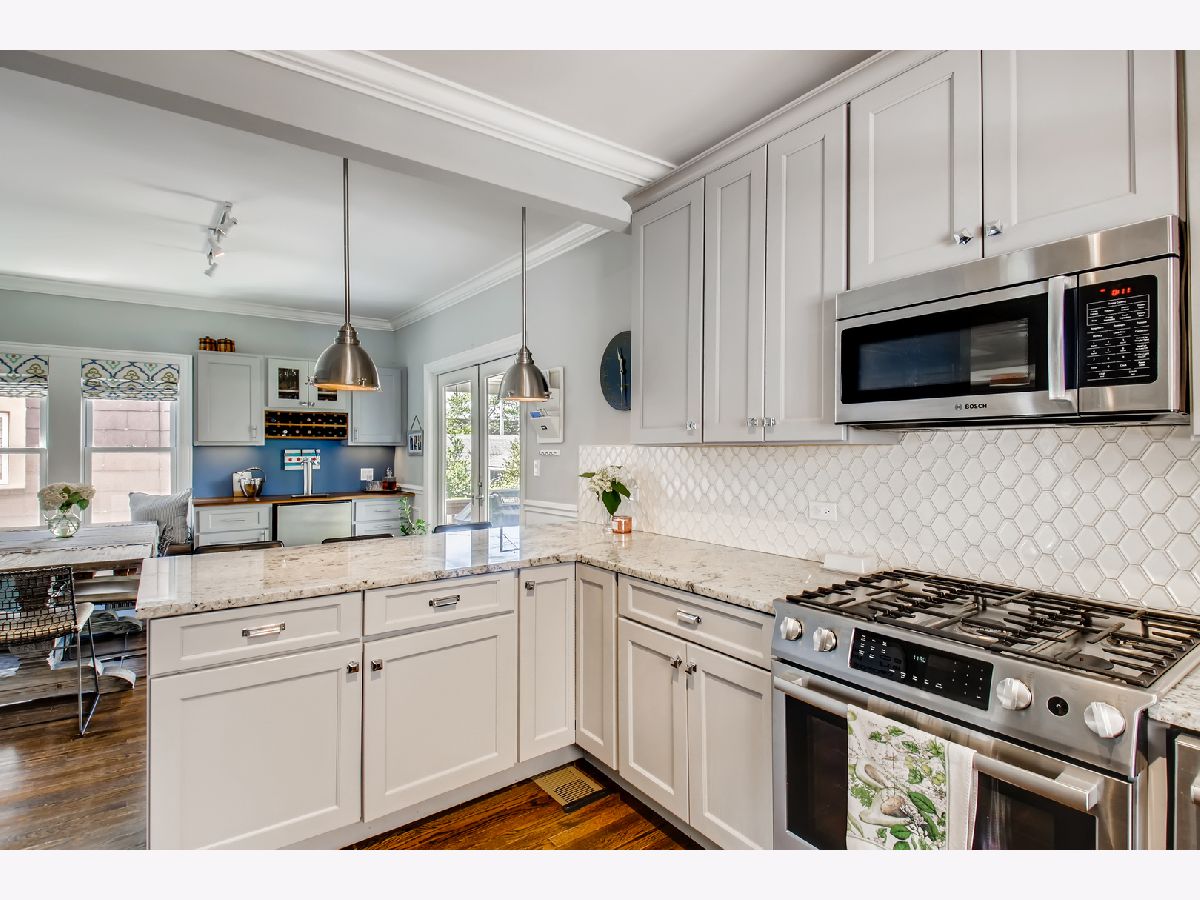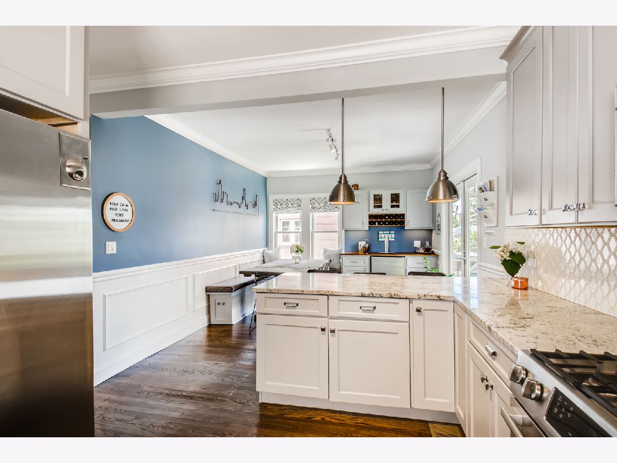 Absolutely charming bungalow rehab in the middle of an exceptional block in Independence Park! This adorable house is one of just a few in the neighborhood with a side driveway, inviting front porch and on an extra wide lot (37.5')! Home was completely gutted just a few years ago and beautifully combines vintage character with modern features - perfect for a growing family! 5 bedrooms and 4 full baths w/hardwood floors throughout the main level and super chic tile-work in the kitchen, bathrooms and entryway. Main level is well laid out with a large living room leading in to an office and fabulous kitchen featuring eat-in dining space, extra cabinet/bar area and french doors that open right to the back deck and grassy yard. Fully finished basement has extra family/play room and huge laundry space and guest bedroom. Great storage throughout the house and garage, amazing location - close to Blue Line, 90/94, Independence Park and good schools, including Disney II Magnet.