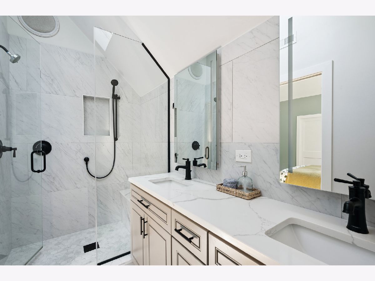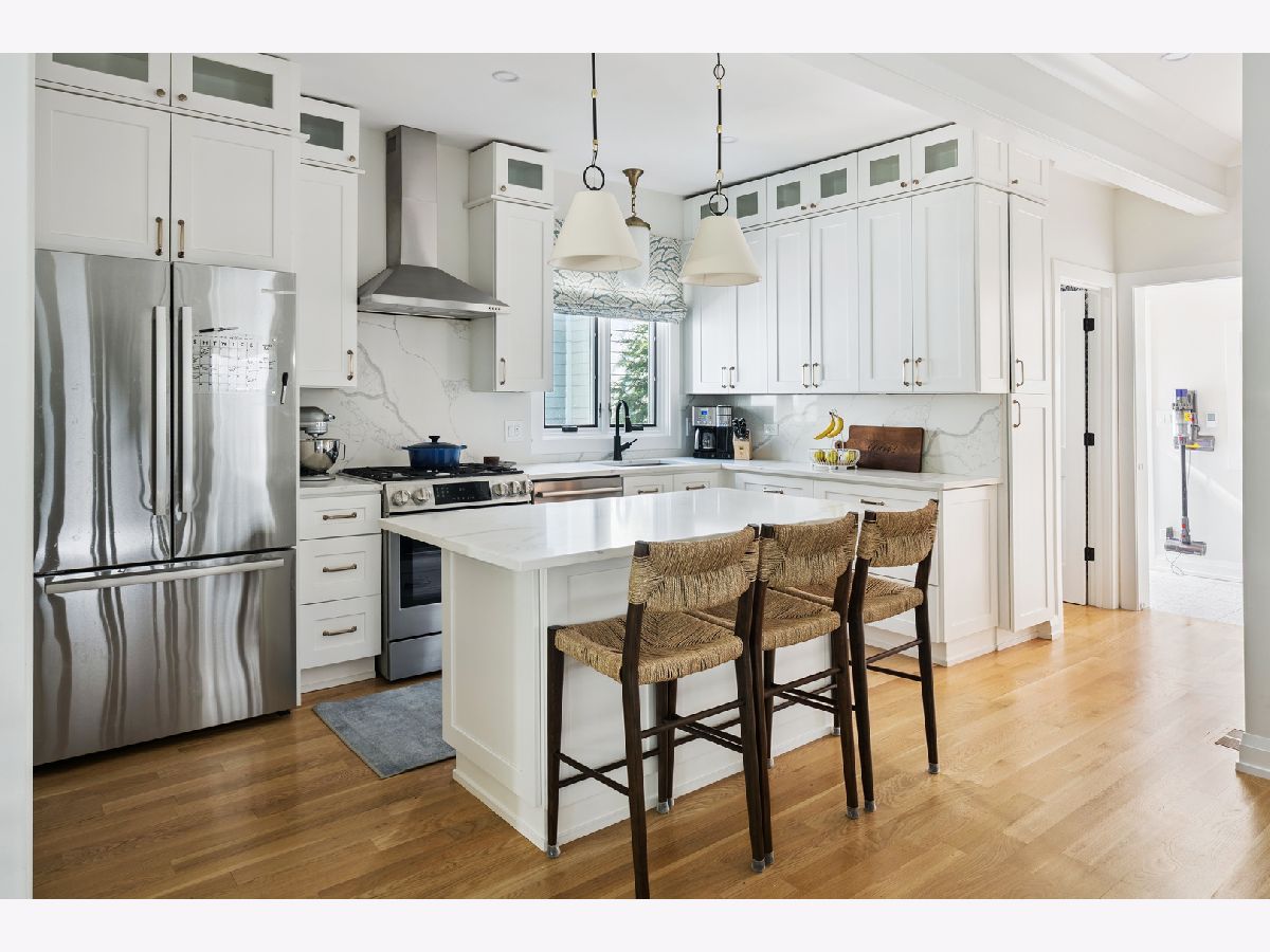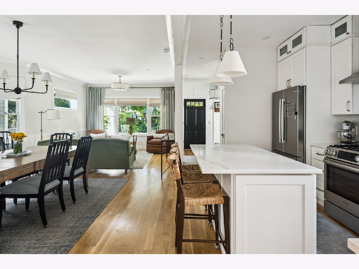 **Multiple Offers Received** Beautiful storybook worthy 4-bedroom + loft, 3.5-bath home on an oversized 34'x155' lot in the heart of Old Irving Park on highly sought-after Kildare Avenue, this extensively renovated home combines timeless sophistication with modern luxury and thoughtful design throughout. The sun-filled main level features 9' ceilings, wide-plank white oak flooring, custom lighting, a spacious living and dining area with fireplace and built-ins, and a true chef's kitchen with custom 42" white shaker cabinetry topped with glass display cabinets, stunning quartz counters and backsplash, Bosch stainless steel appliances, and a large eat-in island, all flowing seamlessly into a bright family room addition with coffered ceilings. A beautifully organized mudroom opens to a rear deck, patio, and professionally landscaped yard, perfect for entertaining. Upstairs offers three bedrooms plus a versatile loft ideal as a playroom, office, or fourth bedroom, along with a luxurious primary suite featuring cathedral ceilings, dual walk-in closets, and a spa-inspired bath with skylight, radiant-heated Italian porcelain tile floors, double vanity, and oversized walk-in shower. The fully finished lower level includes a large recreation room, guest bedroom/office, full bath with radiant-heated floors and walk-in shower, laundry room, and direct walk-out access to the yard. Every detail has been updated including new structural steel and LVL beams, plumbing with instant hot water to upper baths, water softener and water filtration, 200-amp electrical with CAT-5 wiring, flood control system, spray foam insulation, new LP SmartSide siding, sidewalks, oversized 2.5-car garage with 100-amp/220V electric for vehicle charging, and more. With newer roof, windows, zoned HVAC, and professionally landscaped grounds with new sod and drains, this home offers turn-key living on a quiet tree-lined block just steps from Belding and Disney II schools, parks, Starbucks, Backlot Coffee, Lola's Diner, Eris Brewery and much more. Easy access to downtown via the Blue Line, Metra UP-North and Metra Milwaukee NW.