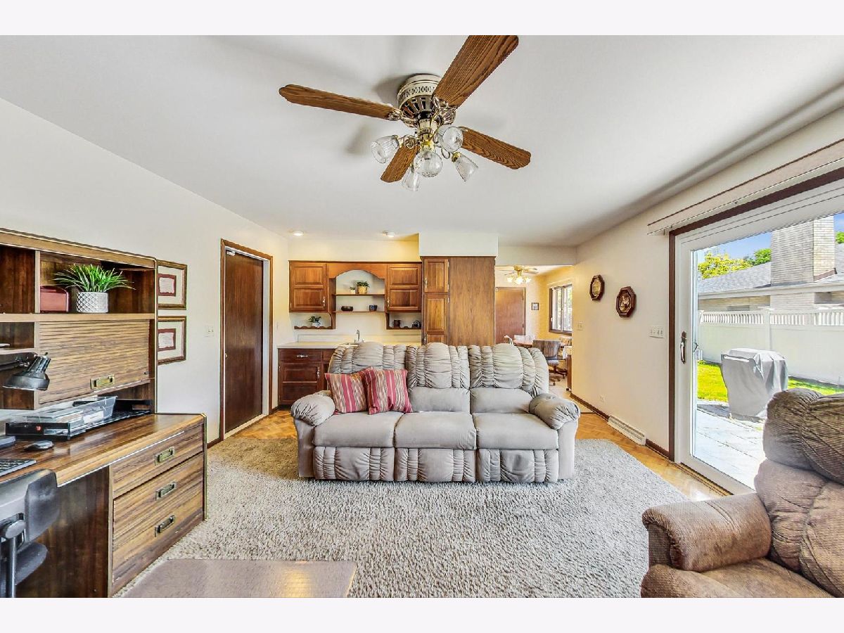 Nestled within the tranquility of a cul-de-sac, this expansive custom built MacDougal brick ranch has been meticulously maintained. The living and dining areas are spacious and light filled. Discover the comfort of three bedrooms and two and a half baths, where the primary bedroom boasts double closets and an ensuite bath, while the second and third bedrooms share a generously-sized bathroom with a dual vanity. The heart of the home, an eat-in kitchen adorned with modern appliances, including a double oven, and spacious pantry, invites culinary adventures. Unwind in the cozy family room, complete with a fireplace and seamless access to the lovely yard through an oversized slider door. The finished basement expands the living space by an impressive 1756 square feet, featuring a recreation room with wet bar, bathroom, laundry room, workshop, and ample storage. The attached two-car garage offers easy access to the home as well as access to additional storage in the attic. Outside, the extra-wide lot provides a picturesque backyard and a sizable side yard, perfect for outdoor enjoyment. Please note it is believed there are hardwood floors under the carpet in the living room, dining room and bedrooms. Elmhurst Schools: Jefferson Elementary, Bryan Middle School, and York High School. Close to Butterfield Park. Conveyed with the sale: basement refrigerator, garage freezer, and pool table with ping pong top. Please exclude dining room chandelier. Sprinkler system "as-is". Furnace, Humidifier and Water Heater (2024).
