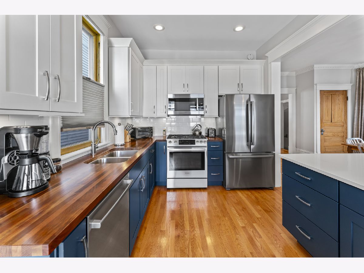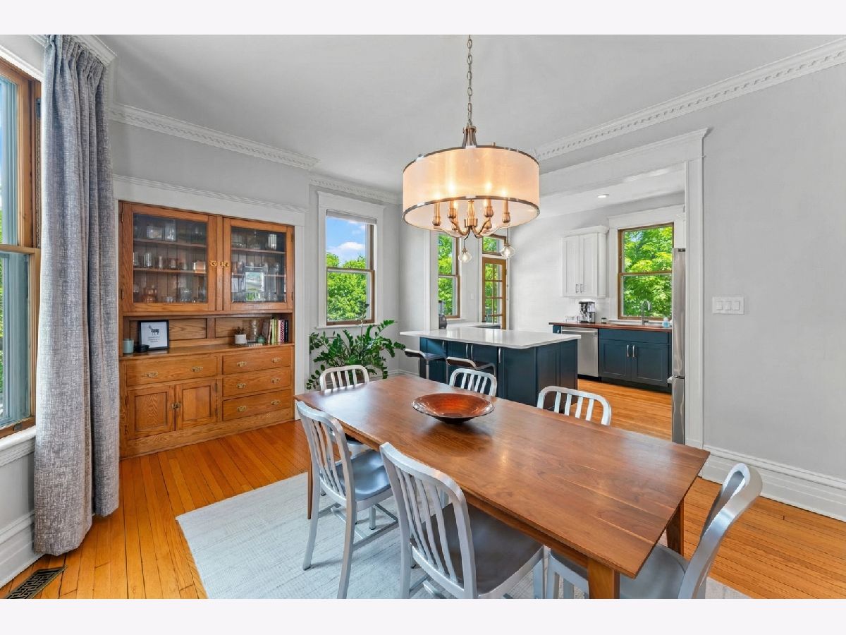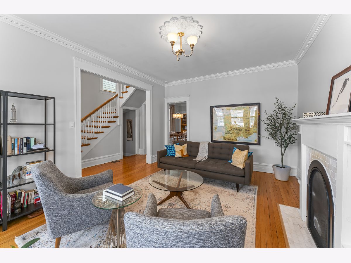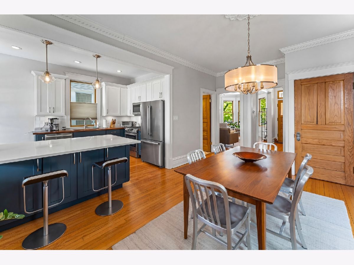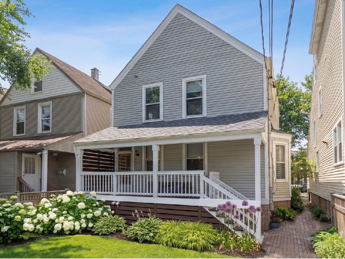 Vintage charm meets modern comfort in this beautifully-updated 1906 single-family home on an oversized 30' wide lot in the heart of North Center and Bell school district. Thoughtful renovations blend seamlessly with original character, showcasing stunning hardwood floors, classic moldings, and timeless built-in details throughout. The inviting main level features a sun-filled living room with a charming fireplace, flowing effortlessly into the spacious dining area, ideal for both everyday living and entertaining. The updated kitchen impresses with a large peninsula, quality finishes, and a full suite of Bosch appliances, all within an open layout that keeps everyone connected. A beautiful staircase leads to the second level, where the serene primary suite awaits, complete with a generous walk-in closet and a stunning, fully-renovated ensuite bathroom featuring a separate shower and luxurious soaking tub. Two additional well-appointed bedrooms and another full bath complete the upper level. The lower level offers exceptional flexibility with a comfortable family room, dry bar, additional half bath, and a large laundry room with ample storage, perfect for today's lifestyle needs. Enjoy outdoor living on both the front and back porches, complemented by beautiful landscaping and private backyard ideal for relaxing or gardening. A generously sized 2-car garage adds convenience and storage. Recently-updated mechanicals provide added peace of mind. Situated on a picturesque tree-lined street in an outstanding neighborhood, this home offers timeless character, thoughtful updates, and exceptional livability.