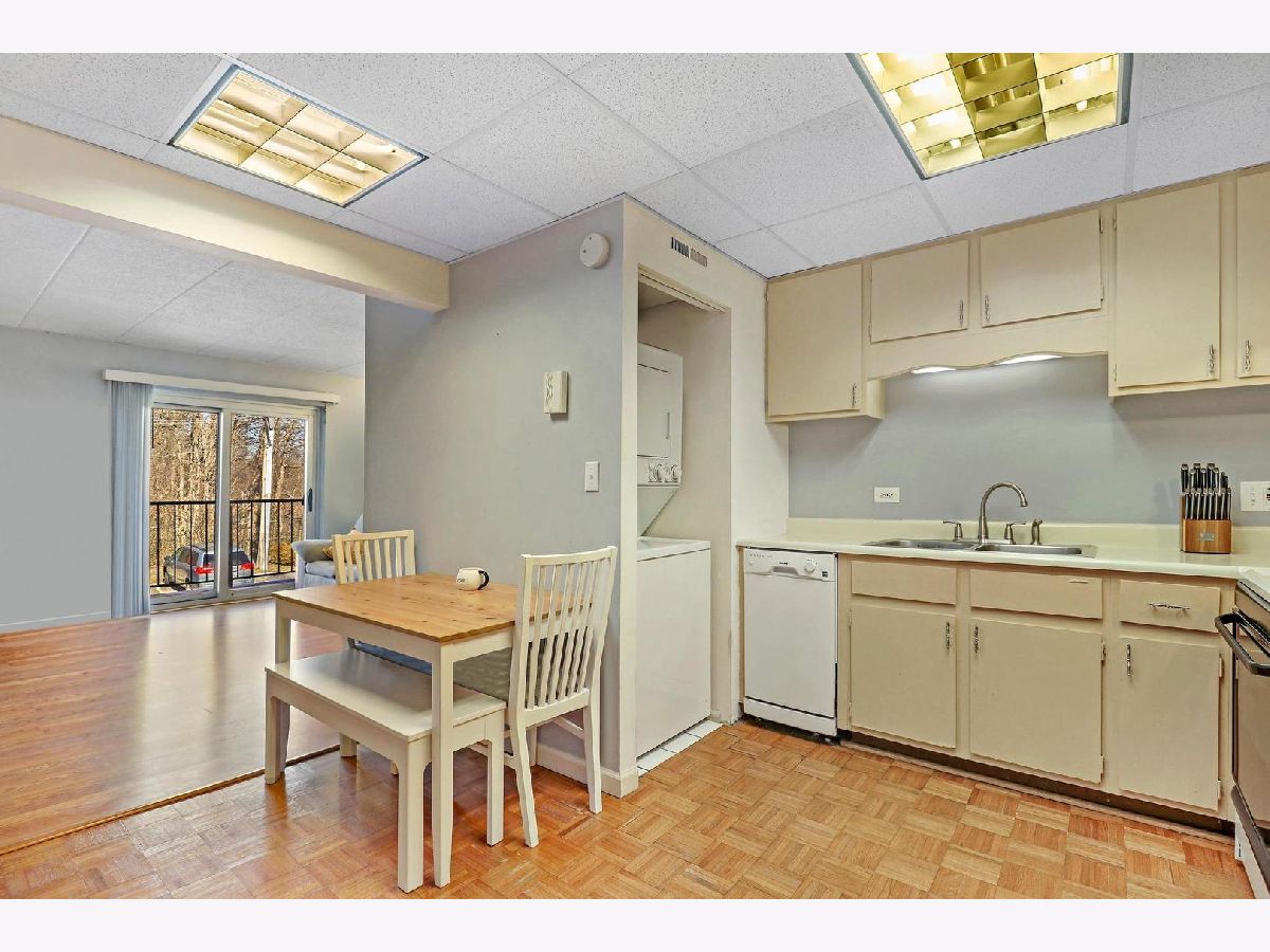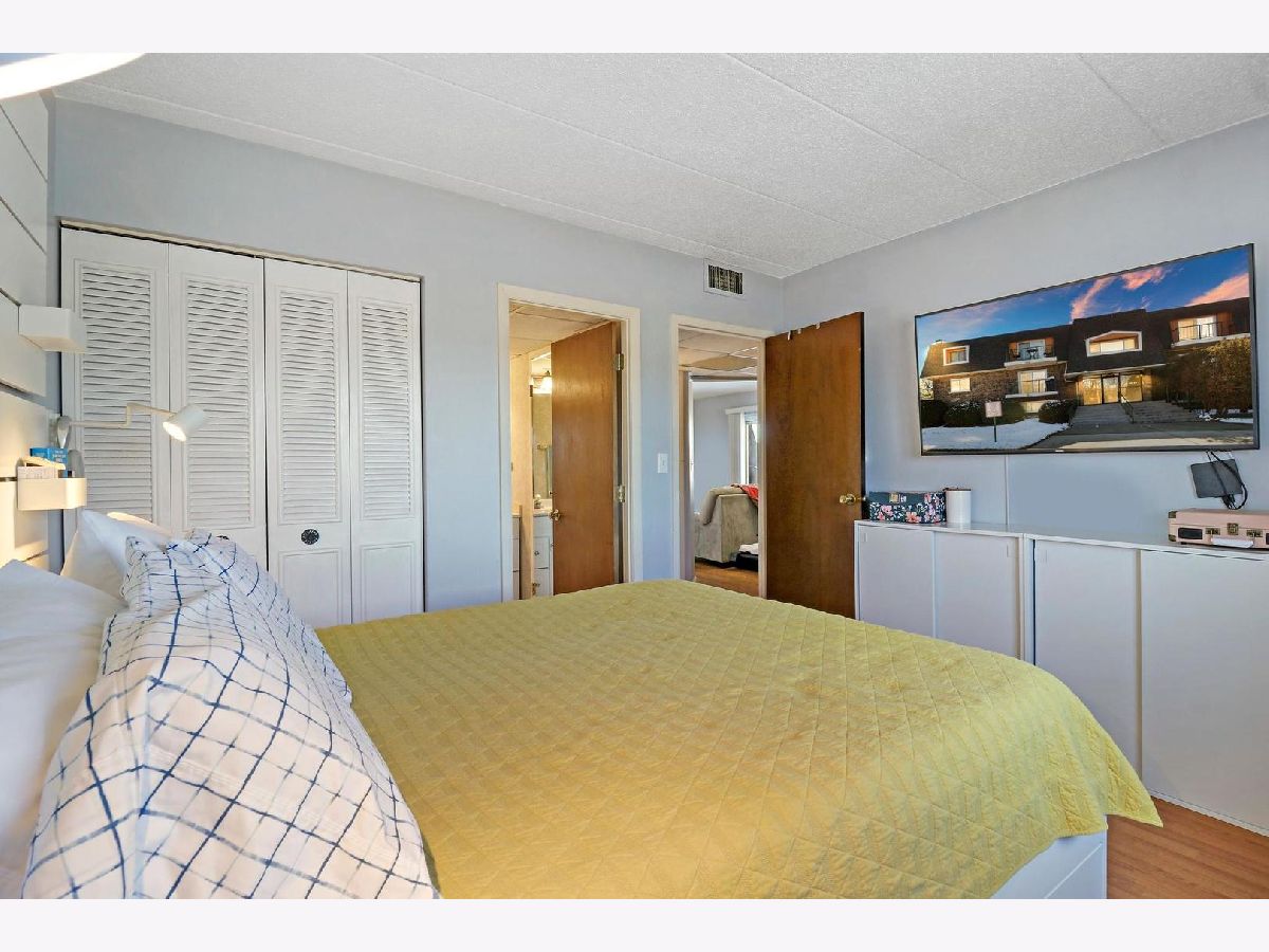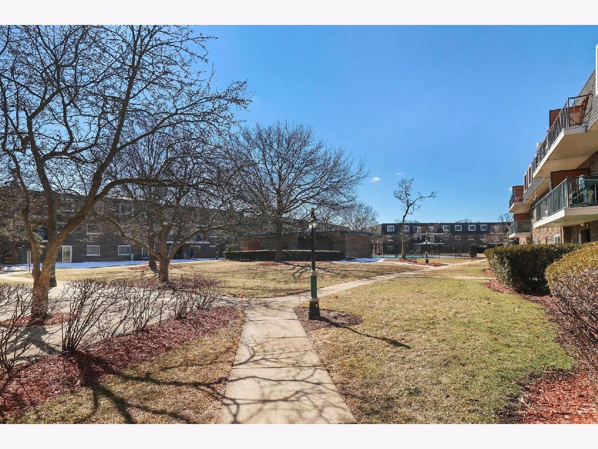 Welcome to this well maintained higher first floor end unit in desirable 12 Oaks Subdivision located in Northbrook school district. Bright and open floor plan includes spacious living room with private balcony, kitchen with wooden cabinetry, pantry closet and space for a table. Generously sized bedrooms with large windows for providing a lot of natural light. Master bedroom has its own bathroom. Second bedroom has wall to wall closet. Hallway bathroom is finished in ceramic tiles. Wood laminate flooring throughout except the kitchen. In unit washer and dryer. Unit has new HVAC. There is also storage locker and additional coin operated laundry on the ground level. Newly remodeled common areas in the building including entry foyer. Very nice complex with a beautiful courtyard, swimming pool, party room, picnic area, walkways, lots of parking including guest parking. Pet friendly. Rentals allowed. Great location, near public transportation, stores, forest preserves, and I-294.