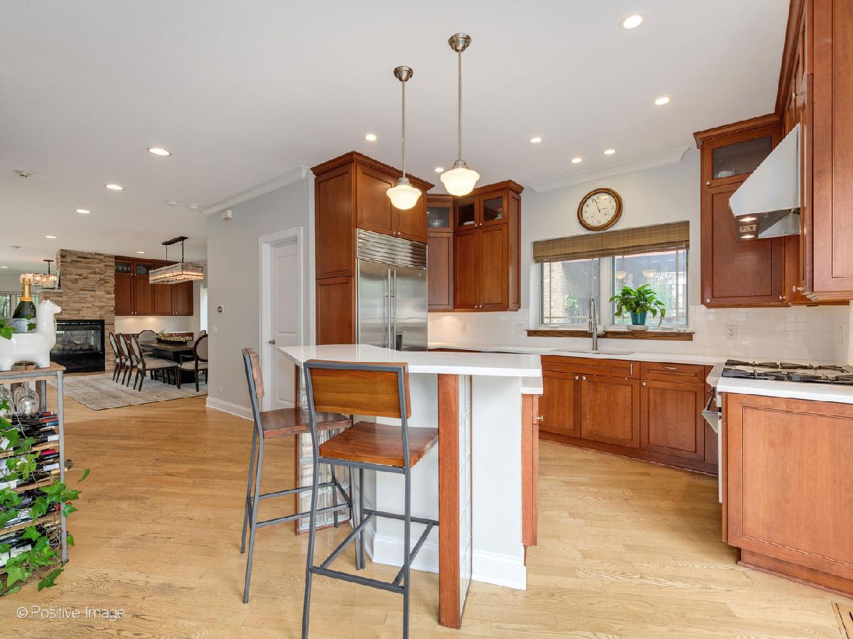 Presenting this Old Irving Park home that's a true rare gem to hit the market. A Prairie style, brick & stucco house with undeniable curb appeal. It has four bedrooms, three full & one half bathrooms. The large 4500 sqft floor plan is laid out over three spacious, bright, open floors, all with tall ceilings. Situated on an oversized double lot, 62' wide with side drive and a three car brick garage. Located in the heart of Old Irving Park, on tree lined Keeler Ave, one of the most desirable livable neighborhoods in Chicago. You enter the magnificent home through a side entrance, which provides for a dramatic center open staircase & atrium, this also allows for a unique layout with undivided space to the front. The open feel of the home is realized once you enter the first floor living/dining area which flows from the front all the way back to the kitchen and eat-in area. The living/dining room has a three-sided fireplace with stone surround and built in cabinets. There is also a large power room. The chef's kitchen has a Wolf stove, Sub Zero refrigerator, quartz counters & island, full ceiling height cabinets. A cozy eat-in breakfast area with pantry adjacent to the kitchen. Patio doors lead directly out to the back deck, perfect to enjoy grilling and lounging, overlooking the rear yard. Moving up the stairs you enter the bright open plan second floor with a sitting area to relax. There are four bedrooms upstairs (one is currently used as an office/library). The luxurious primary suite has a walk-in closet professionally organized, ensuite bathroom with oversized shower and dual vanities, tray ceiling over the bed. This level has another bathroom with a walk-in shower and Jacuzzi tub. The two remaining bedrooms are at the rear of this level. Down on the lower level you'll find a fully finished area that's open plan with a large family room, wet-bar, gym, laundry room, full bath. Many potential other uses for this great space are a home office and guest suite. Throughout the home there are solid hardwood floors, designer lighting. Newer central air and GFH. The house was a new build in 2006, it has all the modern conveniences of that recent construction coupled with many traditional characteristics. Many recent updates have also been done. All this on the 62' wide lot, something not often found in the city. Best of transport options - Blue line train, Metra Train, expressway access. Enjoy everything that makes Old Irving such a sought after neighborhood. Finally worth the wait!