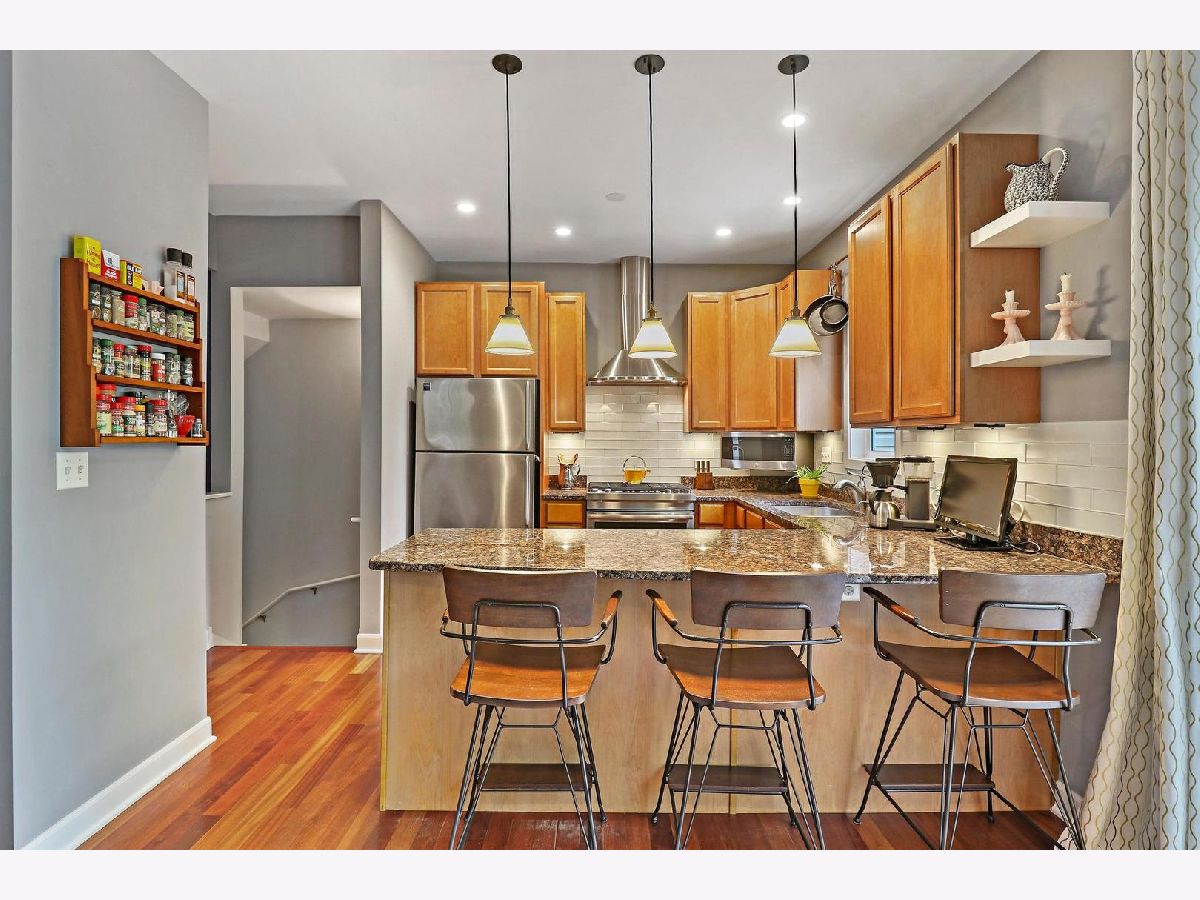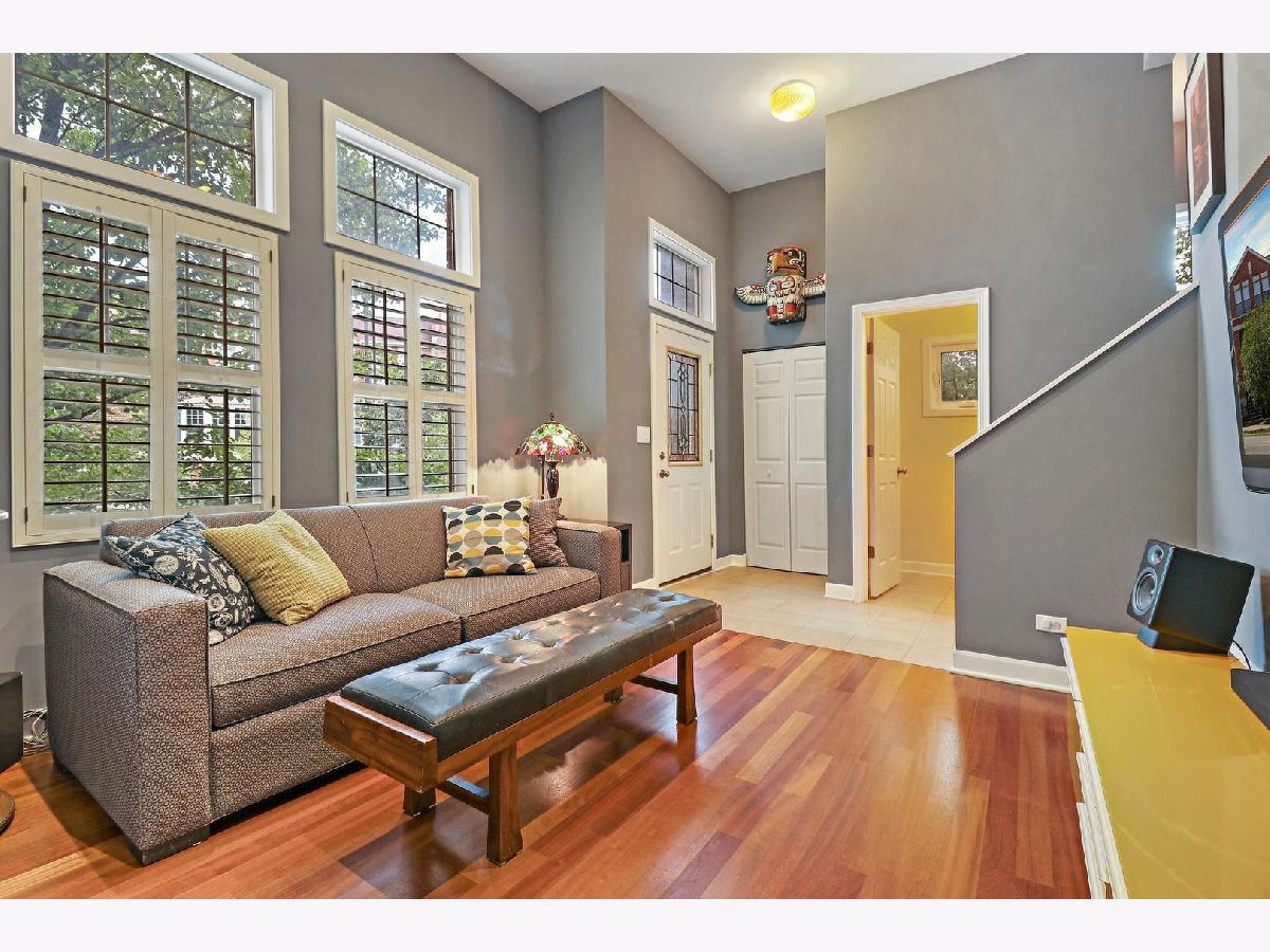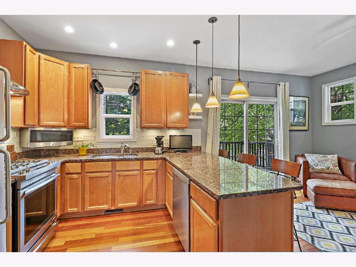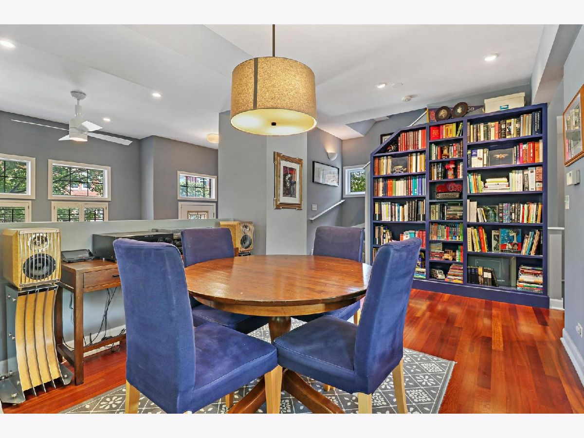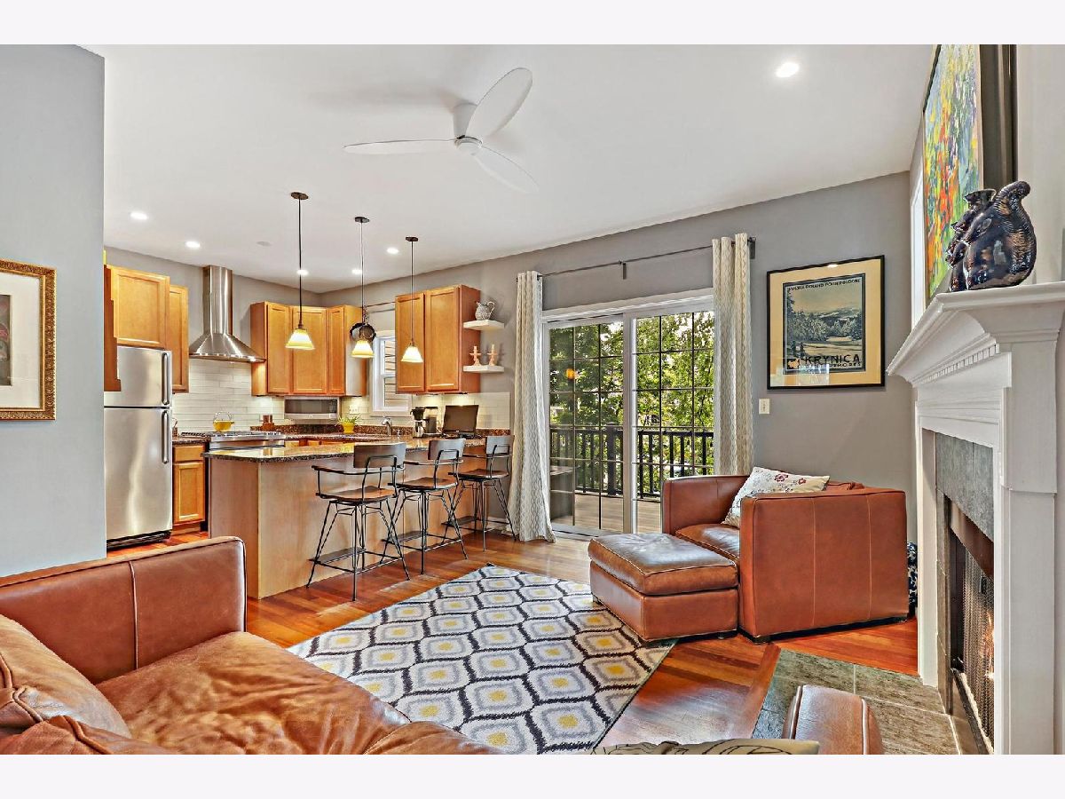 Welcome to Old Irving Pointe, a unique and highly desirable community surrounded by all the amenities you need and seclusion you never knew possible in the city. This well-laid out three bedroom, two and a half bathroom home with a beautiful brick exterior and contemporary, open floor plan has tons of surprises. Living spaces are spread out over three levels with upgraded hardwood floors, a custom built-in bookcase, LED recessed lighting, and DC ceiling fans. There's room for multiple cooks in the u-shaped kitchen featuring stainless steel appliances and hood, a gas 5-burner range, double oven, 42-inch cabinets with under lighting, and a nearly 8-foot granite peninsula for extra seating. Adjacent Family Room with wood burning fireplace transitions nicely to generously sized Dining Room. The front Entryway leads to a light-filled Living Room with soaring ceiling. Main floor expands to brand new deck to provide an exceptional spot for entertaining, dining, or relaxing while enjoying the view of the courtyard or the full moon. Powder Room is on the main. The well-designed second floor features 3 bedrooms, 2 bathrooms, and roomy linen closet. Master Bedroom enjoys plenty of privacy along with wall-to-wall closets, vaulted ceiling and spacious bathroom with double vanity, soaking tub and separate shower. Finished Lower Level offers additional multipurpose room suitable for office/workout/playroom/extra living/so many options, a massive storage room, and laundry area featuring side-by-side Speed Queen Commercial washer/dryer. This private end unit rowhouse lives like a single family, with only a half shared wall on the east, a side yard with glorious river birch trees on the west, and a perfectly situated southern view of the lush green common courtyard. The 2.5-car attached garage has tons of storage and a new belt-driven opener. Private driveway for two more cars and ample extra parking for visitors make this gem an entertainer's paradise. Home has whole house surge protector, new hot water tank, AC 2018, new furnace coil, humidifier. Located in Old Irving Park neighborhood steps from Grayland Metra, Six Corners shops and restaurants, soon to feature Aldi, Amazon Fresh, and Target (coming 2023). Easy access to I-90/94, Blue Line, CTA Buses, O'Hare, and Chicago Loop. Minutes away from Kilbourn Park and Portage Park. This stunning property is a beautiful place to call home. Move in ready!