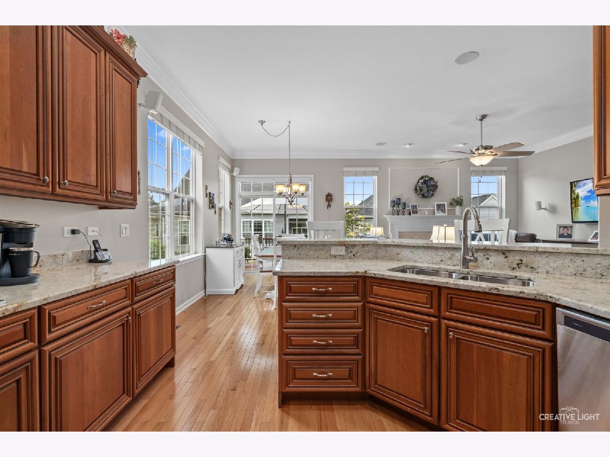 Luxury living at its finest with over 3,100 square feet of finished living space in this rarely available Norwich model in Bowes Creek Country Club's Regency active adult community! The original owners of this beautiful Toll Brothers ranch have taken immaculate care of it, so all you need to do is move in! The home features 10' ceilings and beautiful hardwood floors through the main living space, large windows providing plenty of natural light, and an open staircase leading to a huge finished basement. The gourmet kitchen includes granite countertops, breakfast bar, soft-close cabinets/drawers, under-cabinet lighting, and stainless steel appliances including a double wall oven. Main level primary suite features a bay window, tray ceiling and oversized walk-in closet with custom built-ins. The en-suite bath has double sink vanities, separate shower and jacuzzi tub. The finished basement features tons of additional living/storage space, including powder room, second family room, finished workroom, and huge extra space that could be used as recreation area or easily turned into a 3rd bedroom. Other features include a large Trex deck for outdoor living and entertainment, gas fireplace. main level laundry room, built-in surround sound system, security system and a rare find in the Regency...a front porch!! Community amenities include pool, clubhouse, exercise facility, tennis, pickleball, bocce, walking paths, lawn care and snow removal. Easy access to Randall Rd corridor of shopping and restaurants, and a quick walk to enjoy the beautiful Bowes Creek Country Club award-winning golf course!