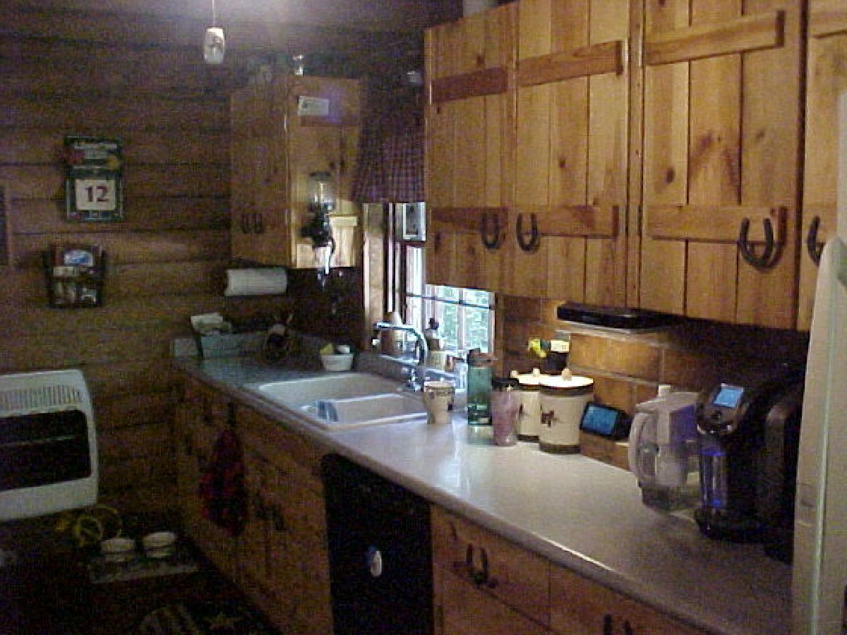 This home is a true western Log Home, has a full basement, half is finished, and the other half is work shop, this home has two full baths an two bedrooms, with a second story loft that could be a third bedroom. The primary heat in this home is Electric, a natural gas wall heater in the kitchen, and a wood burning free standing stove in the Living / Family Rm. it also has Cathedral Ceilings, all wooden plank flooring throughout,the bonus room in the loft is 11 x 20 with a double closet that could be a third bedroom, as a added touch in the laundry area there is a "Dog Grooming Bath" area, Just off the kitchen there is a "Breakfast Nook" with table an chairs,room also for a China cabinet, also in the other end of the kitchen there is a island / stools, All bedrooms have a double closet, Also has a two car detached garage, which is all log also.
