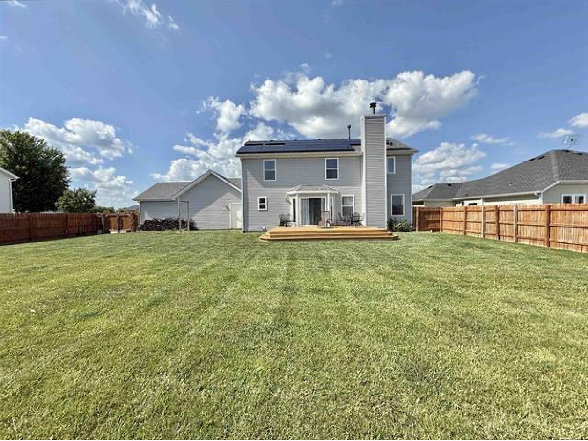 This spacious 2,400 sqft two story home is tucked away at the back of Harvest Glenn subdivision on a quiet cul-de-sac. It boasts a fenced backyard with a brand-new deck and mature landscaping that adds privacy and charm. As you step through the front door, you are welcomed by a large entryway flanked by a formal dining room on one side and a formal living room on the other. Just beyond is a convenient half bathroom, then an open kitchen, and family room featuring a cozy gas fireplace and patio doors that lead out to the deck - perfect for entertaining or relaxing outdoors. Upstairs, you'll find four generously sized bedrooms, including a spacious primary suite with a walk-in closet, dual sinks, a jetted tub, and a separate shower. A versatile landing area provides the ideal spot for a desk or computer nook, and the additional full bath also offers dual sinks and a tub/shower combo. The full unfinished basement is ready and waiting for your finishing touches to create even more living space.