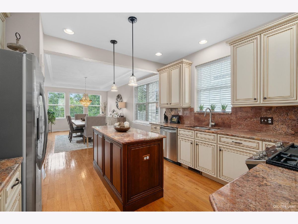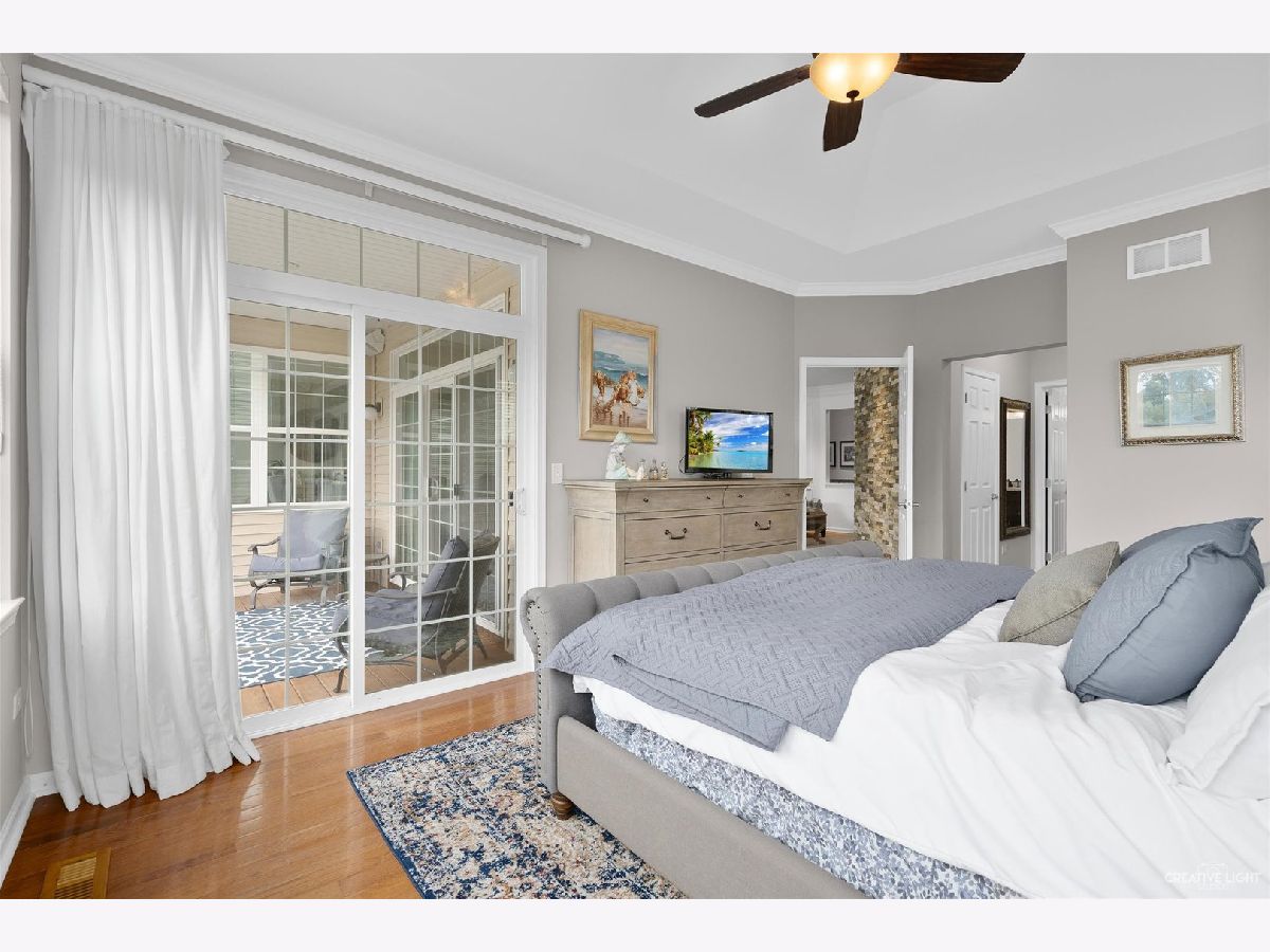 Absolutely stunning! One of the best views in Bowes Creek backing to pond, prairie and trees! Great curb appeal with partial stone front and covered front porch! Foyer area with 3 piece crown molding and hardwood floors! Cozy family room with unique stone accent wall and sliding glass door to the expanded partially covered custom deck with amazing views! Gourmet kitchen with granite countertops and backsplash, center island with pendant lighting, stainless steel appliances and beautiful 42" quality cabinetry with crown molding! Separate formal dining area with custom light fixture, pan ceiling and tons of windows! Separate flex/sitting area! Convenient 1st floor laundry! Gorgeous master bedroom with tray ceiling, sliding glass doors to the deck, double closets and garden bath with soaker tub, separate shower with bench and raised dual sink vanity! 1st floor den with double French door entry and added wainscoting! Unbelievable finished lower level with private 3rd bedroom with pretty views, custom built entertainment wet bar with copper top and granite! Cozy family room with 3 sided fireplace, built-in window seat, extra built-in shelving throughout and sliding glass doors to the lower patio! Added speakers throughout! Sprinkler system! Security system! Shows incredibly! Pride of ownership! You won't find a better home than this in Bowes Creek! Quick access to golf course and Randall Rd shopping/restaurant corridor!