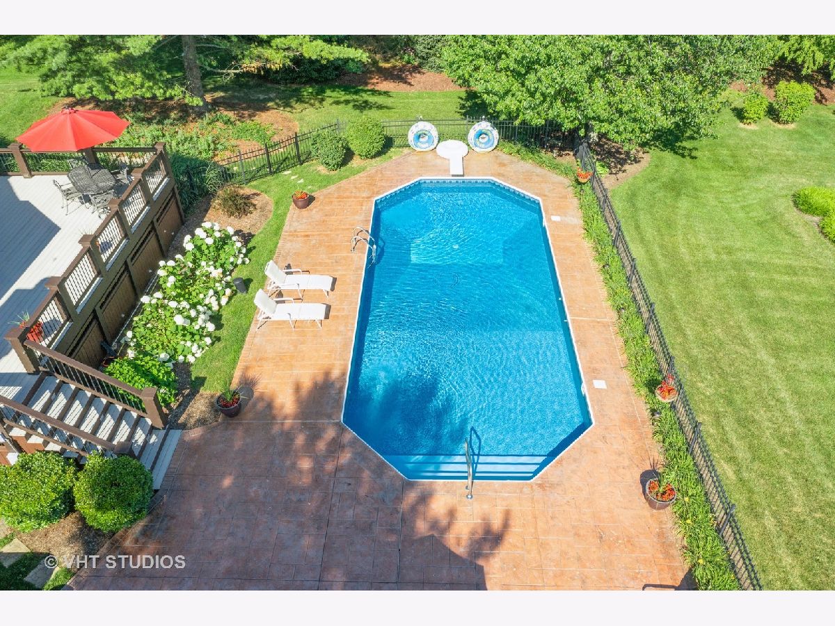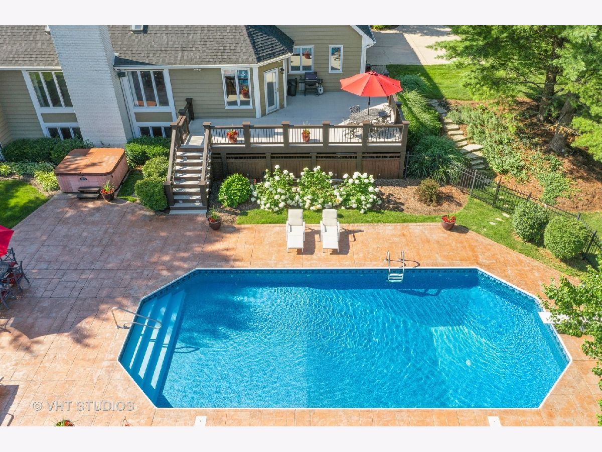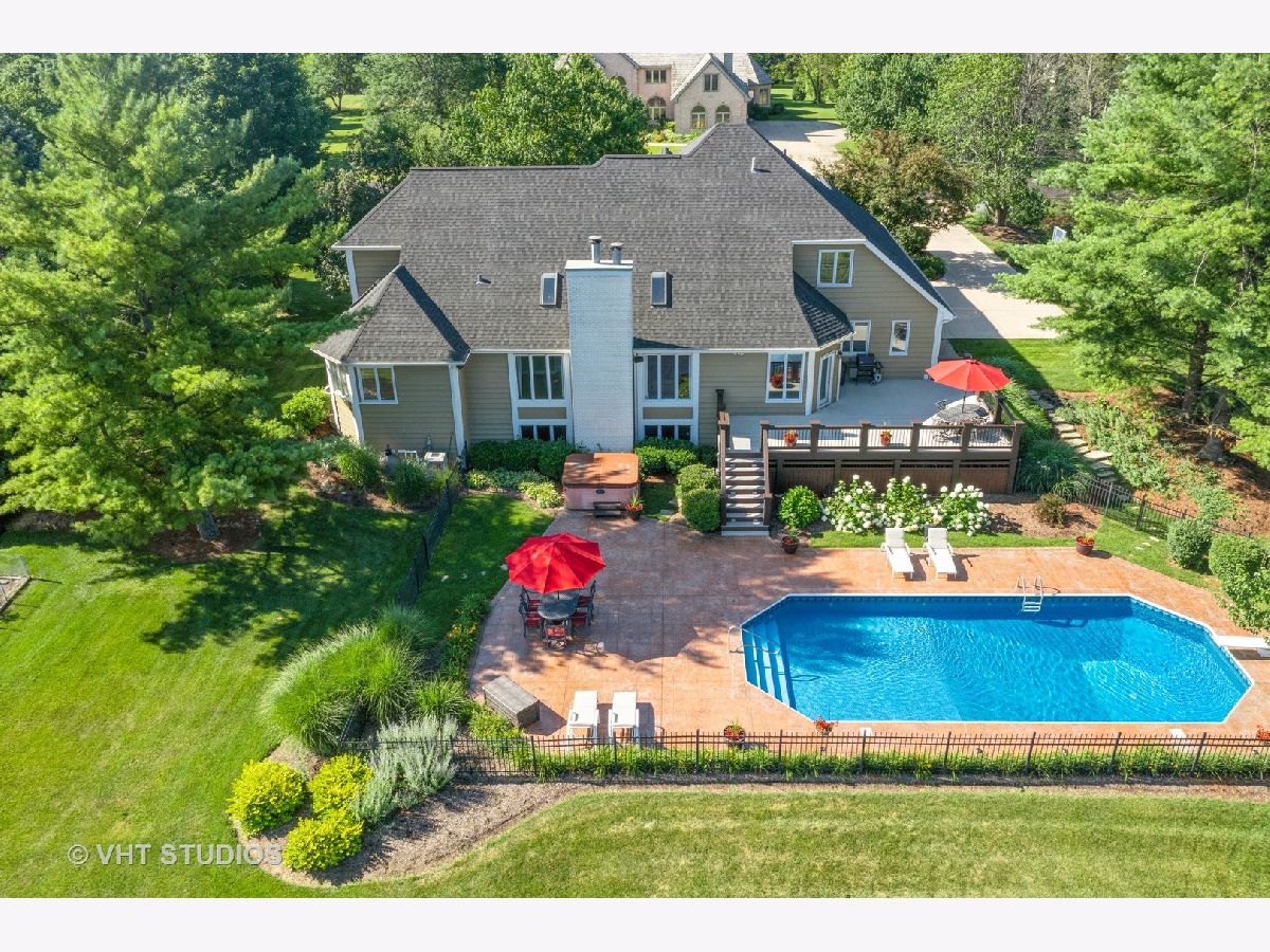 Make a splash with your family with this exceptional 5 bedroom home in coveted Heritage on Burr Road. The kitchen features 42" cherry cabinetry, granite countertops, island with breakfast bar, SS appliances including Subzero refrigerator, built-in double oven, cooktop, undermount sink, recessed lighting, pendant lighting, tile backsplash, fluted casements & spacious breakfast nook. The kitchen is open to the great room which offers a 2 story fireplace flanked by a wall of windows for abundant natural lighting. The dining room boasts Brazilian cherry hardwood flooring, chair rail & picture frames. French doors lead to first floor office with Brazilian cherry hardwood flooring. Exquisite FIRST FLOOR MASTER SUITE offers a double bowl vanity, travertine marble flooring, custom tile (marble) shower surround, water closet & organizers in massive walk-in closet. A Hollywood staircase with iron balusters leads to the 2nd floor offering 3 generously sized bedrooms with walk-in closets (potential for 2nd floor 4th bedroom over garage). Fully finished English basement offers 2,400 sf encompassing a 5th bedroom, fireplace, dry bar, 16' whiteboard learning room, 2 health club grade leg lifting machines, 9' maple pool table, ping pong table & electronic darts. The following is new in the last 3 years: roof, gutters, water heater, pool filter, pool liner, professionally painted interior & exterior. Nestled on 1.4 acres overlooking a professionally landscaped private rear yard with mature trees. The outstanding rear yard features a massive 18' X 42' inground pool (pool cover) featuring perimeter fiber optic lighting surrounded by 1300 sf of stamped concrete. Elevated 540 sf of maintenance free composite decking. Unwind in the 8' X 7.5' Hot Springs spa or simply relax by the firepit. Massive 3 1/2 car garage with epoxy flooring & storage room. Adjustable Porter basketball hoop with large shooting area located in front driveway. Close proximity to Metra, I90 & local amenities. This is an exemplary home for family and entertaining! Note...there is a 2 year wait on an in-ground pool and the cost is approximately $200K.