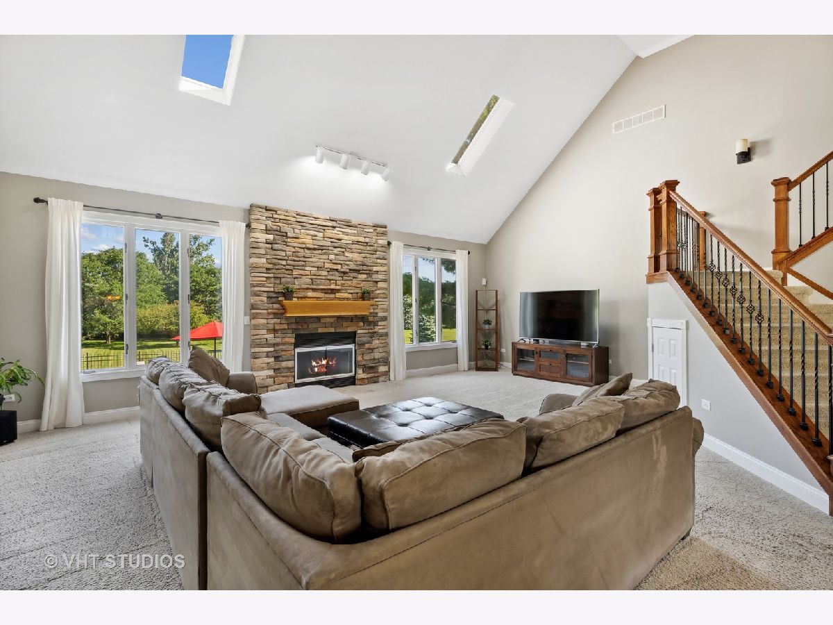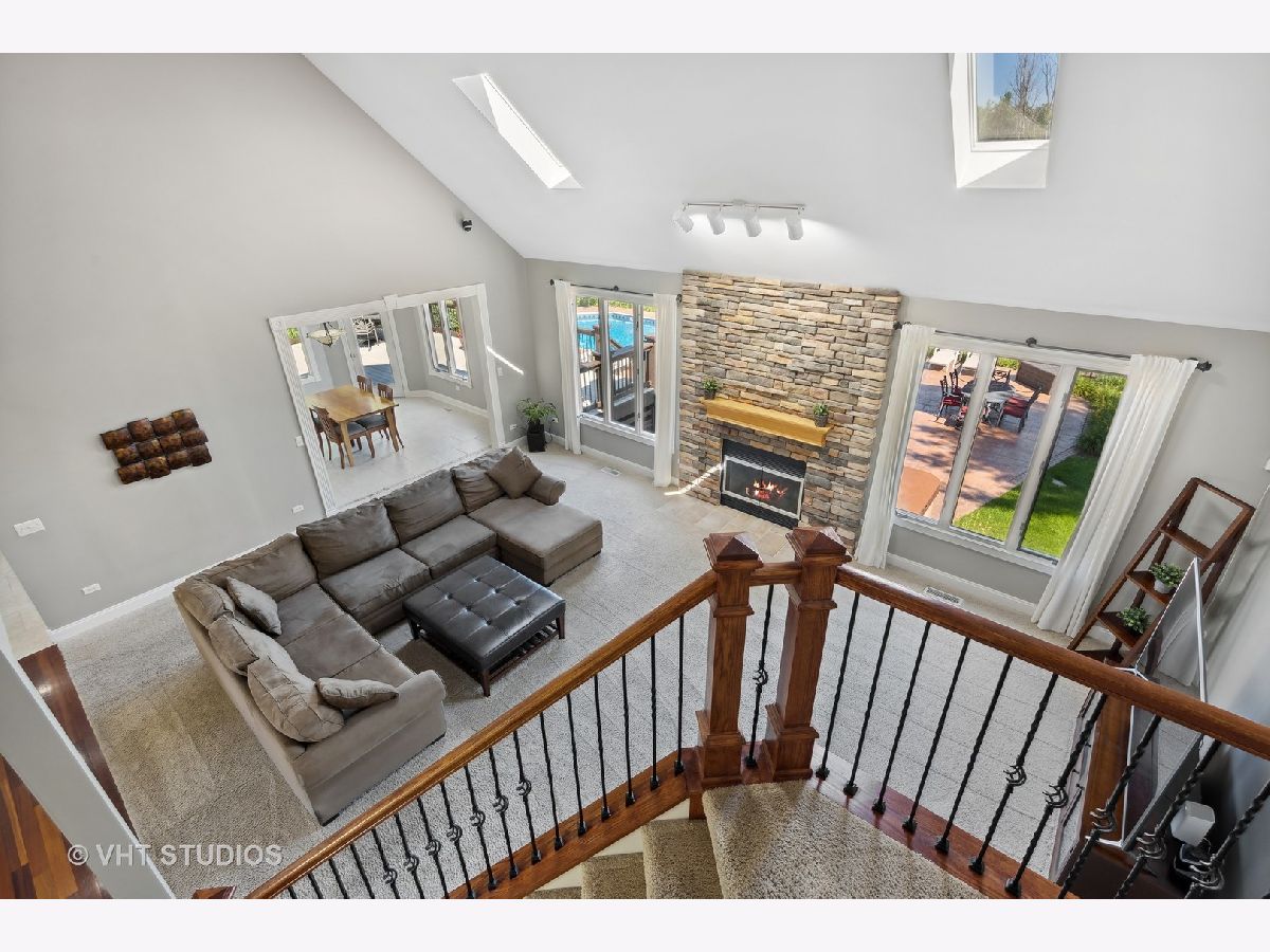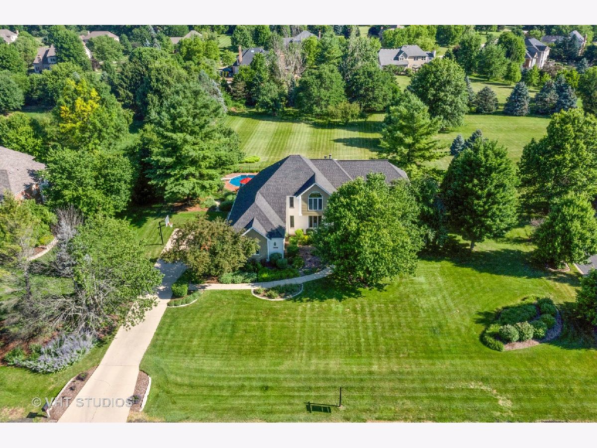 Make a splash with your family with this exceptional 5 bedroom home in coveted Heritage on Burr Road. The kitchen features 42" cherry cabinetry, granite countertops, island with breakfast bar, SS appliances including Subzero refrigerator, built-in double oven, cooktop, undermount sink, recessed lighting, pendant lighting, tile backsplash, fluted casements & spacious breakfast nook. The kitchen is open to the great room which offers a 2 story fireplace flanked by a wall of windows for abundant natural lighting. The dining room boasts Brazilian cherry hardwood flooring, chair rail & picture frames. French doors lead to first floor office with Brazilian cherry hardwood flooring. Exquisite FIRST FLOOR MASTER SUITE offers a double bowl vanity, travertine marble flooring, custom tile (marble) shower surround, water closet & organizers in massive walk-in closet. A Hollywood staircase with iron balusters leads to the 2nd floor offering 3 generously sized bedrooms with walk-in closets (potential for 2nd floor 4th bedroom over garage). Fully finished English basement offers 2,400 sf encompassing a 5th bedroom, fireplace, dry bar, 16' whiteboard learning room, 2 health club grade leg lifting machines, 9' maple pool table, ping pong table & electronic darts. The following is new in the last 3 years: roof, gutters, water heater, pool filter, pool liner, professionally painted interior & exterior. Nestled on 1.4 acres overlooking a professionally landscaped private rear yard with mature trees. The outstanding rear yard features a massive 18' X 42' inground pool (pool cover) featuring perimeter fiber optic lighting surrounded by 1300 sf of stamped concrete. Elevated 540 sf of maintenance free composite decking. Unwind in the 8' X 7.5' Hot Springs spa or simply relax by the firepit. Massive 3 1/2 car garage with epoxy flooring & storage room. Adjustable Porter basketball hoop with large shooting area located in front driveway. Close proximity to Metra, I90 & local amenities. This is an exemplary home for family and entertaining! Note...there is a 2 year wait on an in-ground pool and the cost is approximately $200K.
