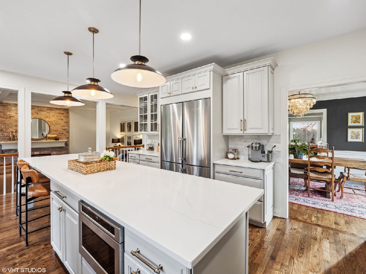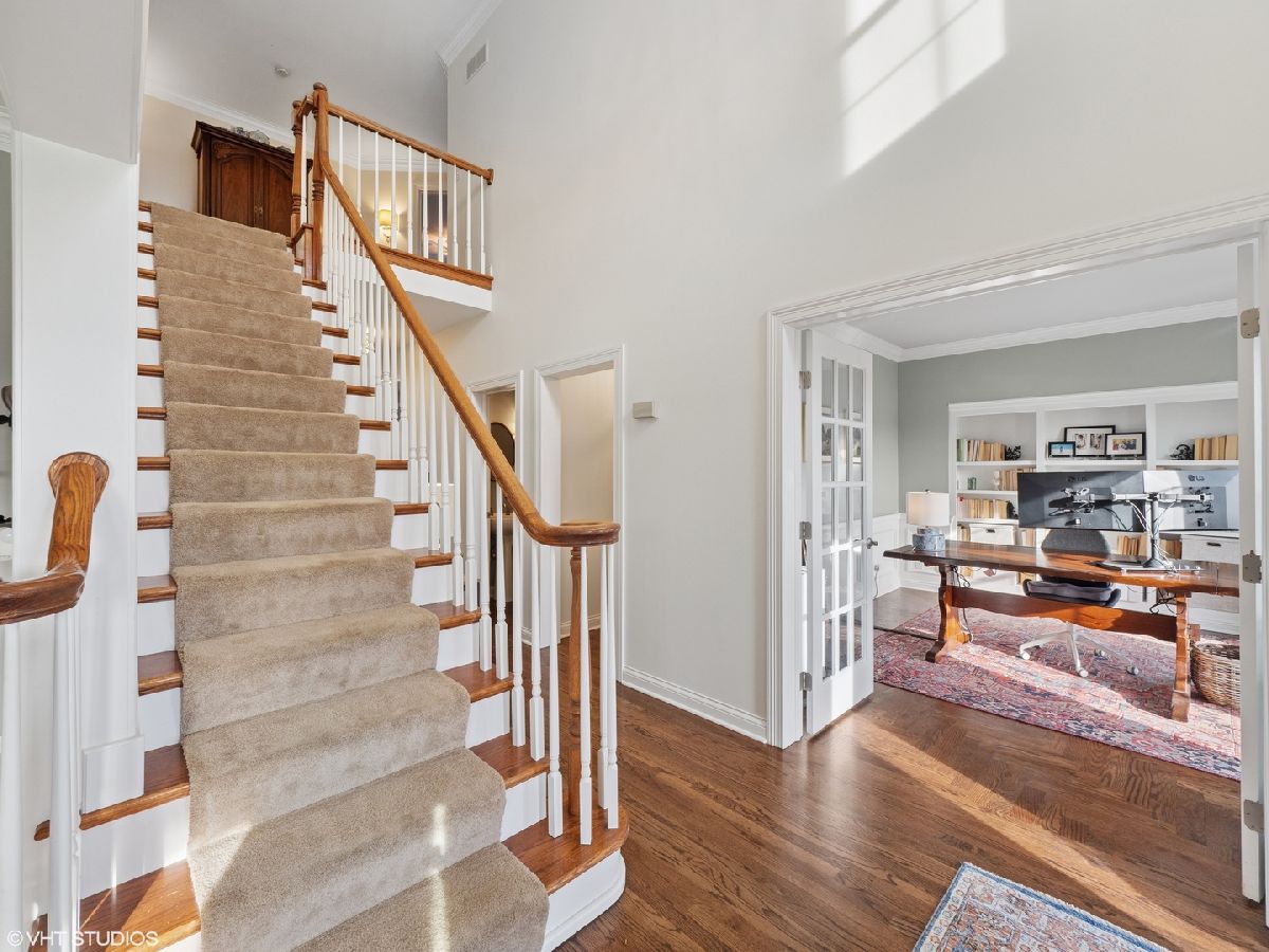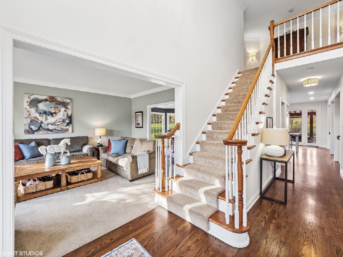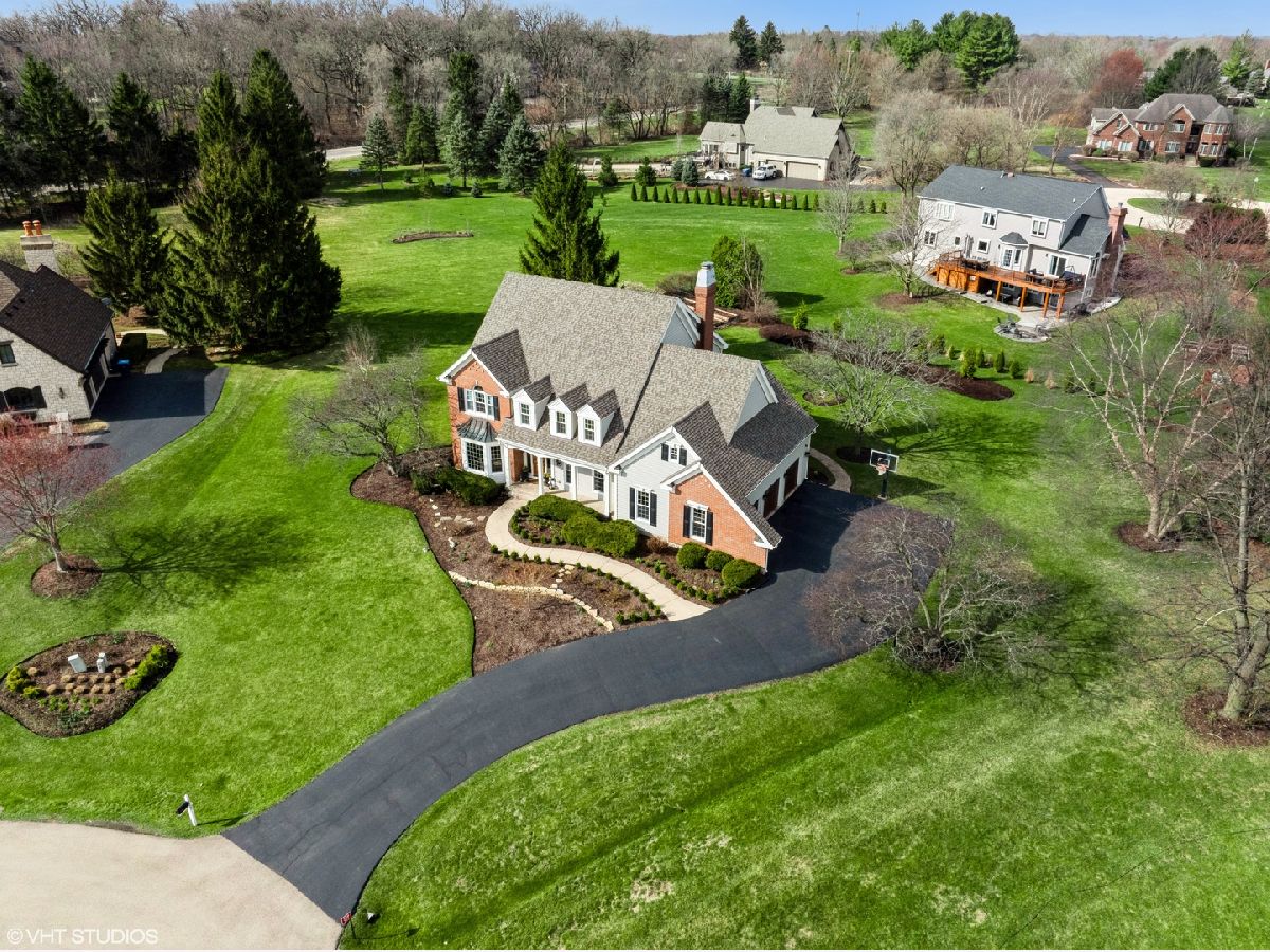 This stunning Cape Cod-style home is ideally positioned on an elevated 1.25-acre lot at the heart of a quiet cul-de-sac in the highly desirable Three Lakes subdivision. Surrounded by professionally landscaped grounds, the home exudes timeless charm and curb appeal. Step through the front door into an impressive two-story foyer with an open staircase that sets the tone for the home's elegant interior. To the right, glass-paned French doors open to a private office-perfect for remote work or study-while to the left, a spacious living room offers an inviting space for entertaining guests. Throughout the home, numerous recent updates combine classic character with modern comfort. In 2024, the home received new windows and a sliding exterior door, along with beautifully refinished hardwood floors. The kitchen, fully remodeled in 2023, is a true centerpiece, featuring custom cabinetry, a large island with quartz countertops, and seating for seven. High-end stainless steel appliances include a Liebherr four-door refrigerator, Electrolux double oven, five-burner cooktop, and dishwasher. Ideally situated between the dining room and family room, the kitchen offers an ideal flow for both daily living and entertaining. The warm and welcoming family room includes hardwood flooring, a cozy fireplace, beamed ceiling, and sliding glass doors that lead to an expansive patio. Complete with a pergola, the patio provides a shaded retreat perfect for outdoor dining and relaxation. Upstairs, the generous primary suite offers a peaceful escape, featuring a large walk-in closet, dual quartz vanities, a separate shower, and a luxurious two-person Jacuzzi tub. The updated Jack-and-Jill bathroom (2024) serves three additional bedrooms and includes a new double-bowl quartz vanity, updated tile flooring, and a modernized shower. Bedroom two features custom built-in cabinetry and a walk-in cedar closet. Bedroom three also offers a walk-in closet, while bedroom four includes two closets for ample storage. The finished basement expands the home's living space with a versatile recreation area, ideal for a media room, office, or craft space, plus ample storage. A three-car side-load garage provides additional space for a third vehicle, bicycles, or recreational gear. Garden enthusiasts will appreciate the beautifully maintained backyard garden, offering a serene space to grow and relax. Additional upgrades include: Reverse osmosis system at the kitchen sink, Lennox furnace with AprilAire humidifier (2020) Roof and skylights replacement (2022). Main water shutoff system (2024) New well (2018) Two new hot water heaters (2022), and a water monitoring system that detects leaks. This meticulously maintained home is move-in ready-offering comfort, style, and convenience in the heart of beautiful St. Charles.