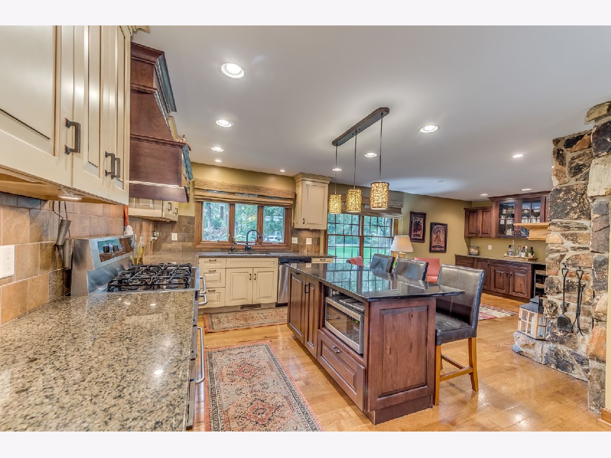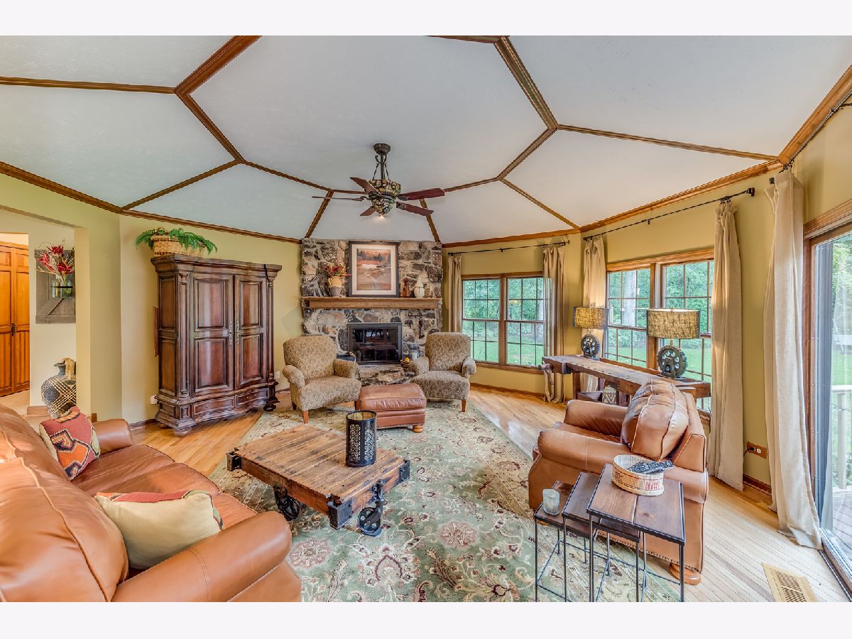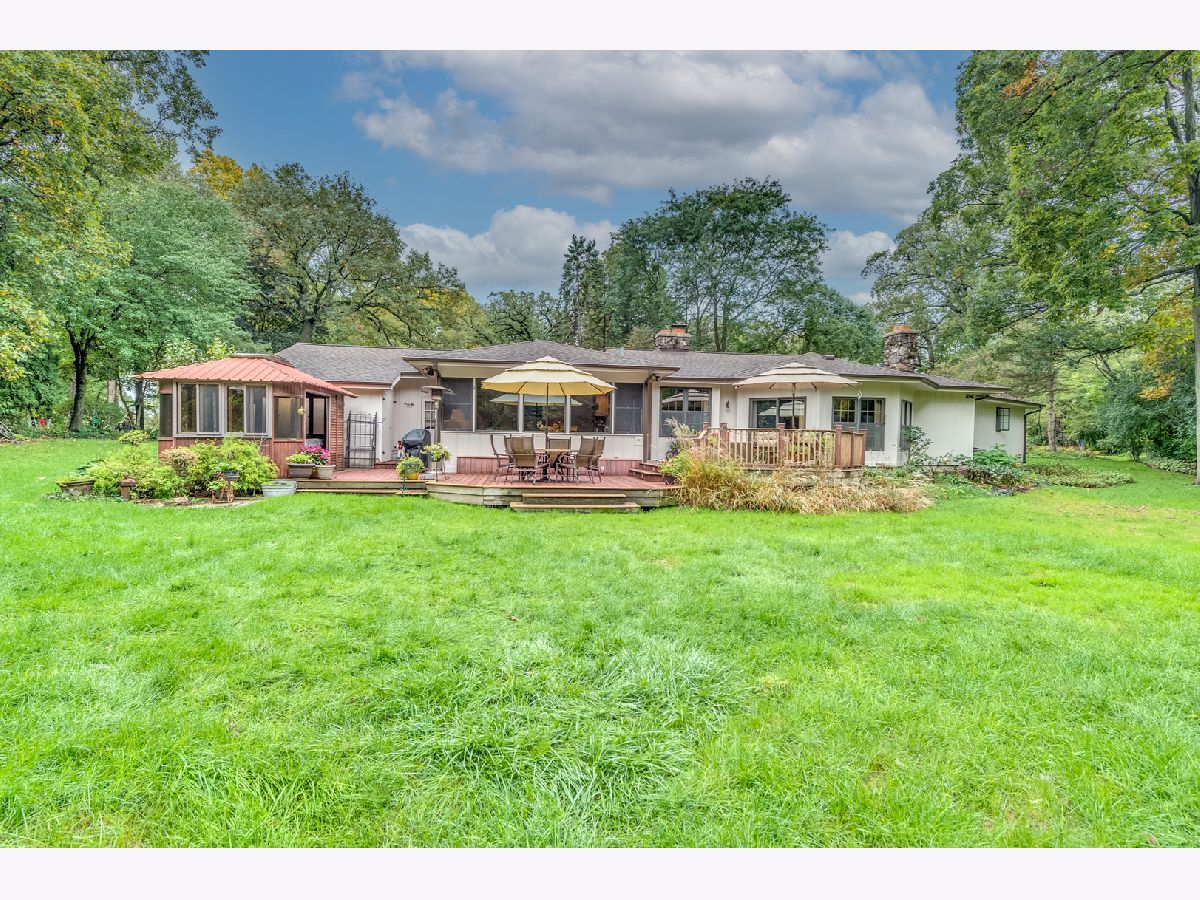 Meticulously maintained, rarely available ranch home nestled amongst nature on 1.4 wooded acres! Step inside the welcoming foyer that leads you to the family room, which is sure to be the heart of the home, with an exquisite stone fireplace and full wall of windows overlooking the expansive, private backyard. The newly updated gourmet kitchen features custom cabinetry, granite countertops, and stainless steel appliances. Cozy up to the dual sided, stone fireplace in the breakfast area complete with a bar/butlers station. On the other side of the fireplace you will find a welcoming dining room overlooking the backyard. Step into the four seasons sun room with walls of windows and scenic nature views that can be enjoyed all year long. The bedroom wing is located at the opposite end for ultimate quiet and privacy. Featuring a spa like master suite with private bath and dual vanities, and a hallway bath with tub/shower combo which services well appointed bedrooms 2 & 3. Retreat to the backyard where you will have your own serene oasis! Step out to the huge deck ideal for entertaining with a hot tub enclosed in a private gazebo. Complete with an already finished bathroom, the spacious, full basement is waiting for your finishing touches! Minutes away from Randall Rd., shopping, metra, downtown St. Charles and so much more! This home is not to be missed!