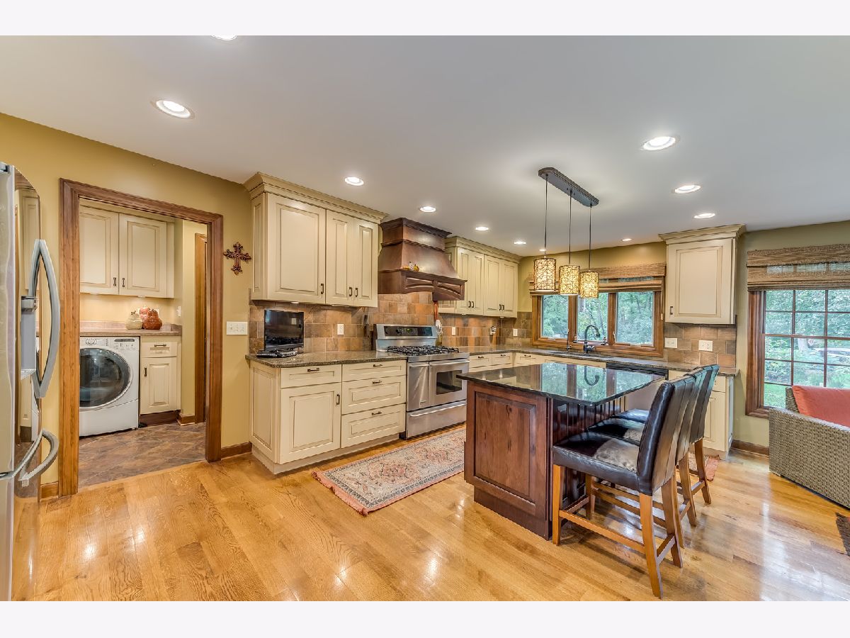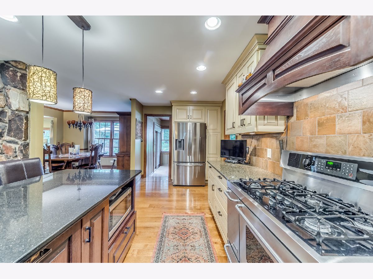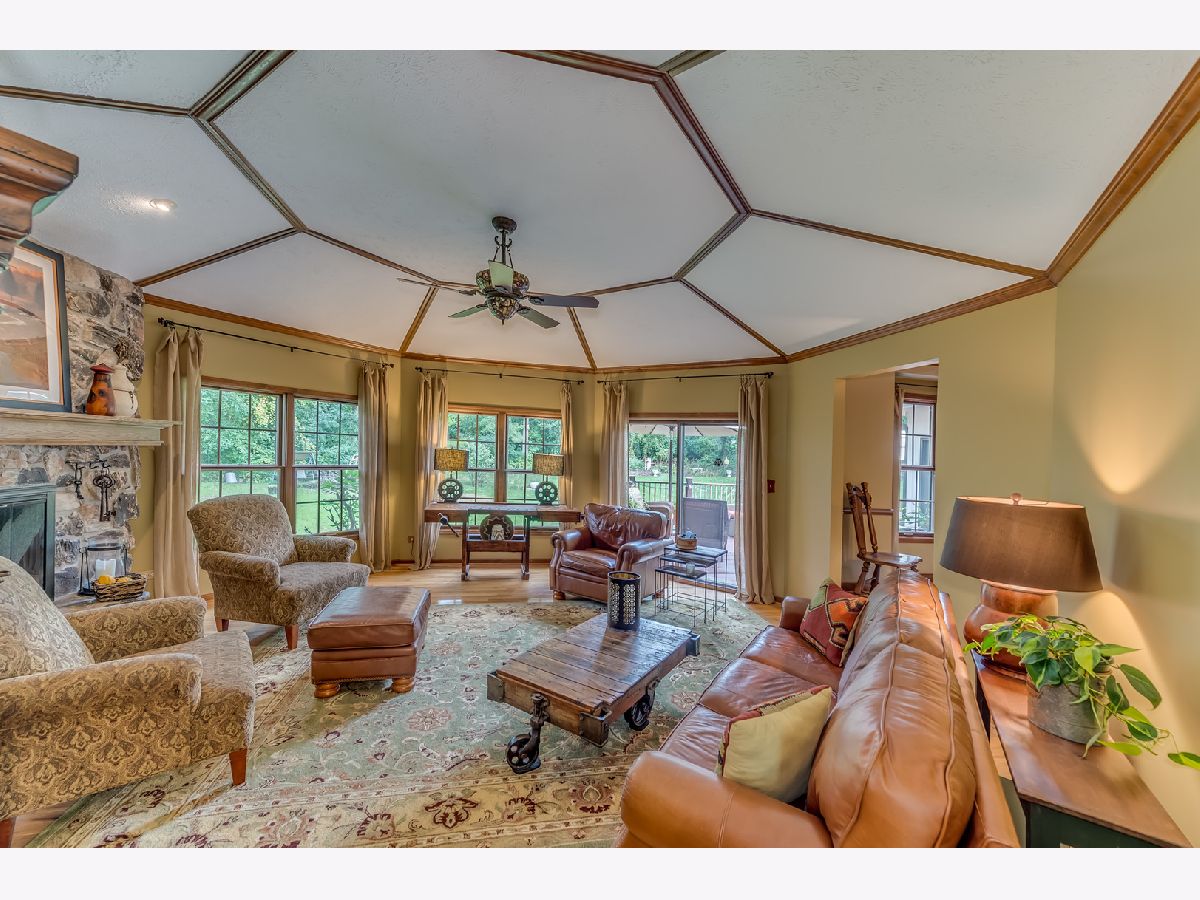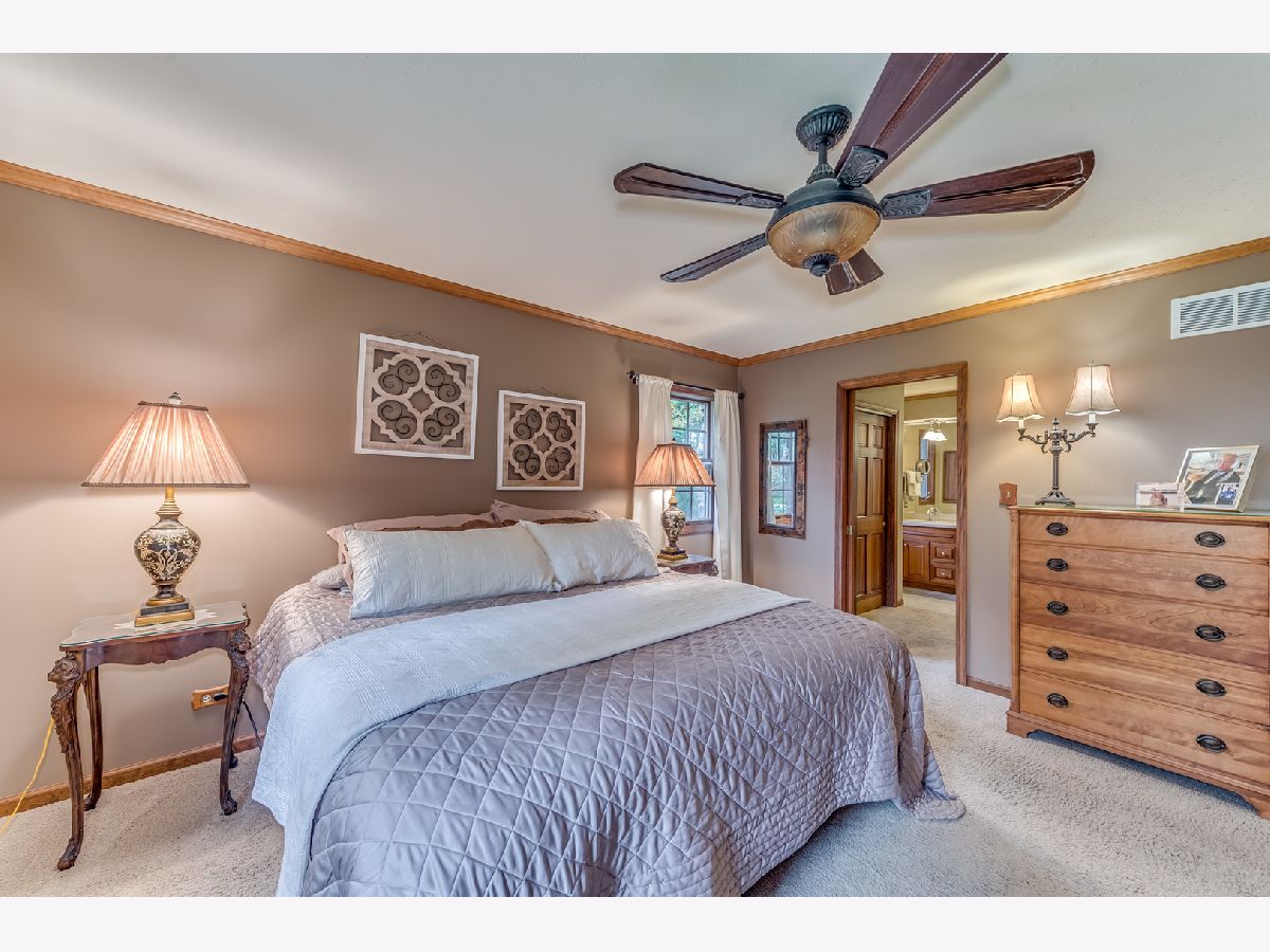 Meticulously maintained, rarely available ranch home nestled amongst nature on 1.4 wooded acres! Step inside the welcoming foyer that leads you to the family room, which is sure to be the heart of the home, with an exquisite stone fireplace and full wall of windows overlooking the expansive, private backyard. The newly updated gourmet kitchen features custom cabinetry, granite countertops, and stainless steel appliances. Cozy up to the dual sided, stone fireplace in the breakfast area complete with a bar/butlers station. On the other side of the fireplace you will find a welcoming dining room overlooking the backyard. Step into the four seasons sun room with walls of windows and scenic nature views that can be enjoyed all year long. The bedroom wing is located at the opposite end for ultimate quiet and privacy. Featuring a spa like master suite with private bath and dual vanities, and a hallway bath with tub/shower combo which services well appointed bedrooms 2 & 3. Retreat to the backyard where you will have your own serene oasis! Step out to the huge deck ideal for entertaining with a hot tub enclosed in a private gazebo. Complete with an already finished bathroom, the spacious, full basement is waiting for your finishing touches! Minutes away from Randall Rd., shopping, metra, downtown St. Charles and so much more! This home is not to be missed!