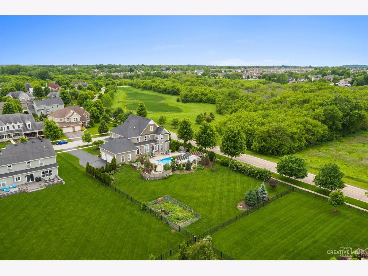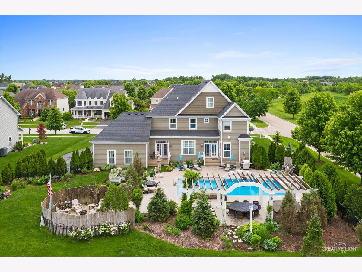 A NEWER HOME AND RESORT STYLE LIVING! Looking for THE ONE home that has it all? This 2016 built home has the exceptional quality you're looking for & the amenities you & your guests will love! With unparalleled views of open space, this beautiful home blends luxury, comfort & entertainment. The backyard is very private with lush landscaping. The amazing outdoor space features a .5 acre fenced yard, private in-ground pool, pergola, 8 person hot tub, firepit area & vegetable garden. Imagine the entertaining you'll have! No need to travel! Impeccably maintained, this home features attention to detail w/many custom built-ins & extensive mouldings. Gorgeous hardwood flooring through most of the 1st floor. Fabulous kitchen features 2 islands, granite, SS appliances & spacious eating area overlooks pool. Butler's pantry with two wine refrigerators. The kitchen open to the family room. Formal dining room is large enough to host the entire family. Living room is off the foyer & features beautiful hardwood flooring. Two curved staircases in open, two story foyer. First floor features 10 foot ceilings. Lots of windows and doors with transoms for tons of natural light. Fireplace sitting room off the kitchen is the perfect spot for morning coffee. Private office/den. Huge primary bedroom with French doors leading to a deck ~ enjoy those views! Luxury primary bath is very spacious. 2 large primary closets. Bedrooms 2,3 & 4 are all a great size. The finished basement is a great entertaining space featuring a large bar with granite tops, movie viewing area, 4th bedroom, full bath, flex room & storage room. Infrared sauna. 1st floor laundry/mudroom is amazing with granite counters, custom cabinetry & will keep you organized. Fantastic curb appeal with 3 sided wrap around front porch with three trex porches off the back. 3 car garage. One of the few .7 acre lots in Mill Creek. Down the street to the neighborhood tennis courts, ball fields, basketball courts & trails. Located in Mill Creek w/golf, miles of trails, tennis & market. Heartland Elementary School. Close to Metra, tollway, schools, fabulous restaurants & shops.