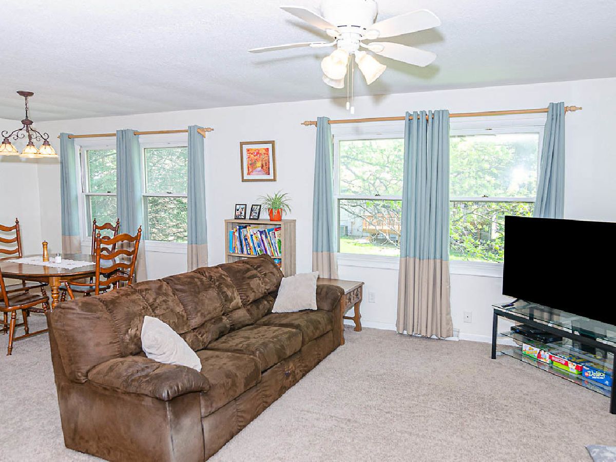 Lots of space in this updated home in desirable Ayshire neighborhood! Remodeled (2015) open kitchen with stainless appliances and beautiful black walnut counter top on the island. Four bedrooms and a room that could be office, work area or even a 5th bedroom. Two full bathrooms. Lower level family room has fireplace with newer wood burning insert and walks out to spacious, fenced back yard complete with firepit and even some strawberry plants and raspberry bushes! Two car garage has extra storage space and attached storage room. Roof replaced in 2014. Exterior repainted 2018. New furnace and central air in 2019. Short walk to Bottenfield Elementary. Don't miss the opportunity to make this your new home! Home will be available for showings Sat 5/15, Sun 5/16, and Mon 5/17.