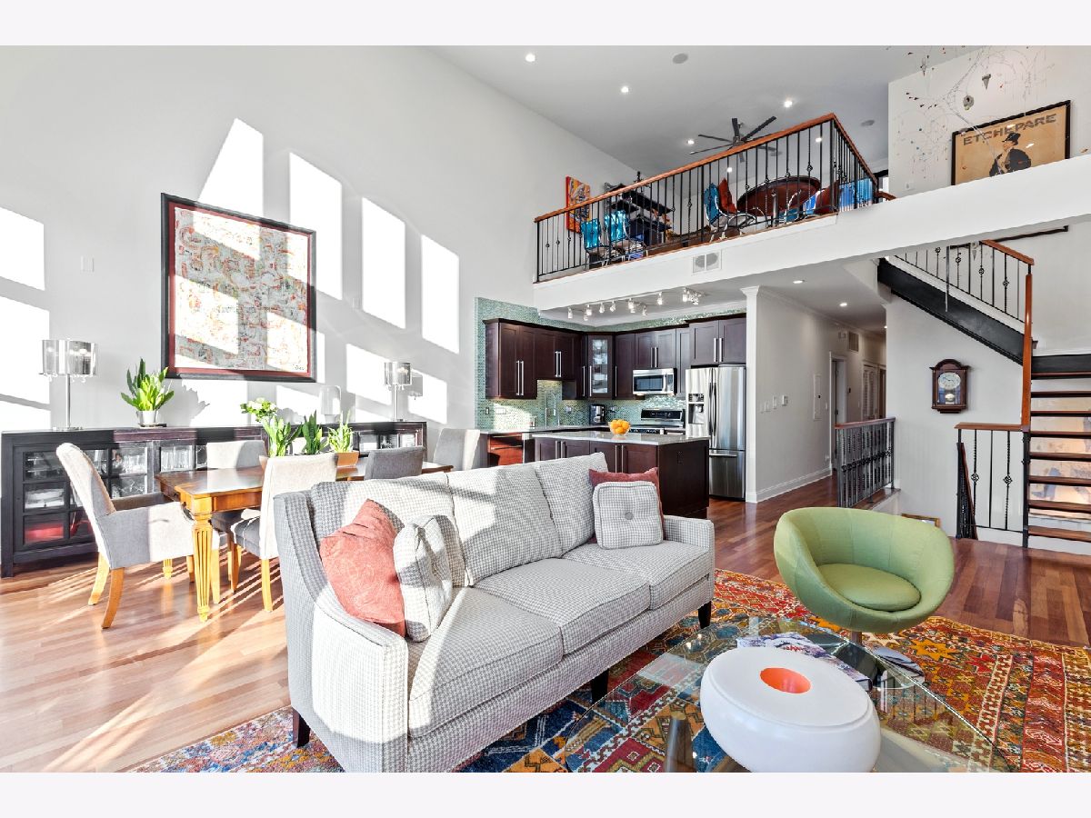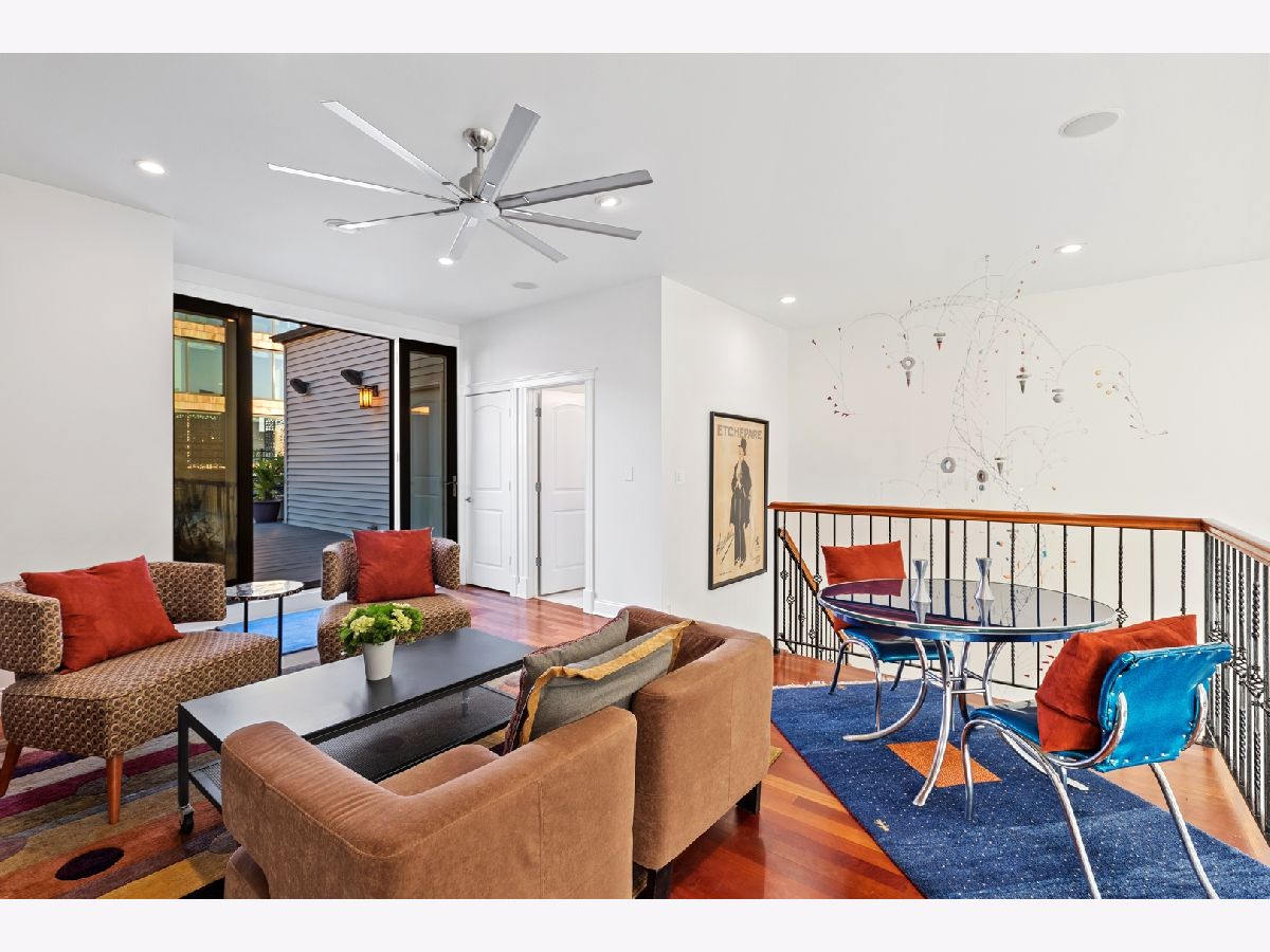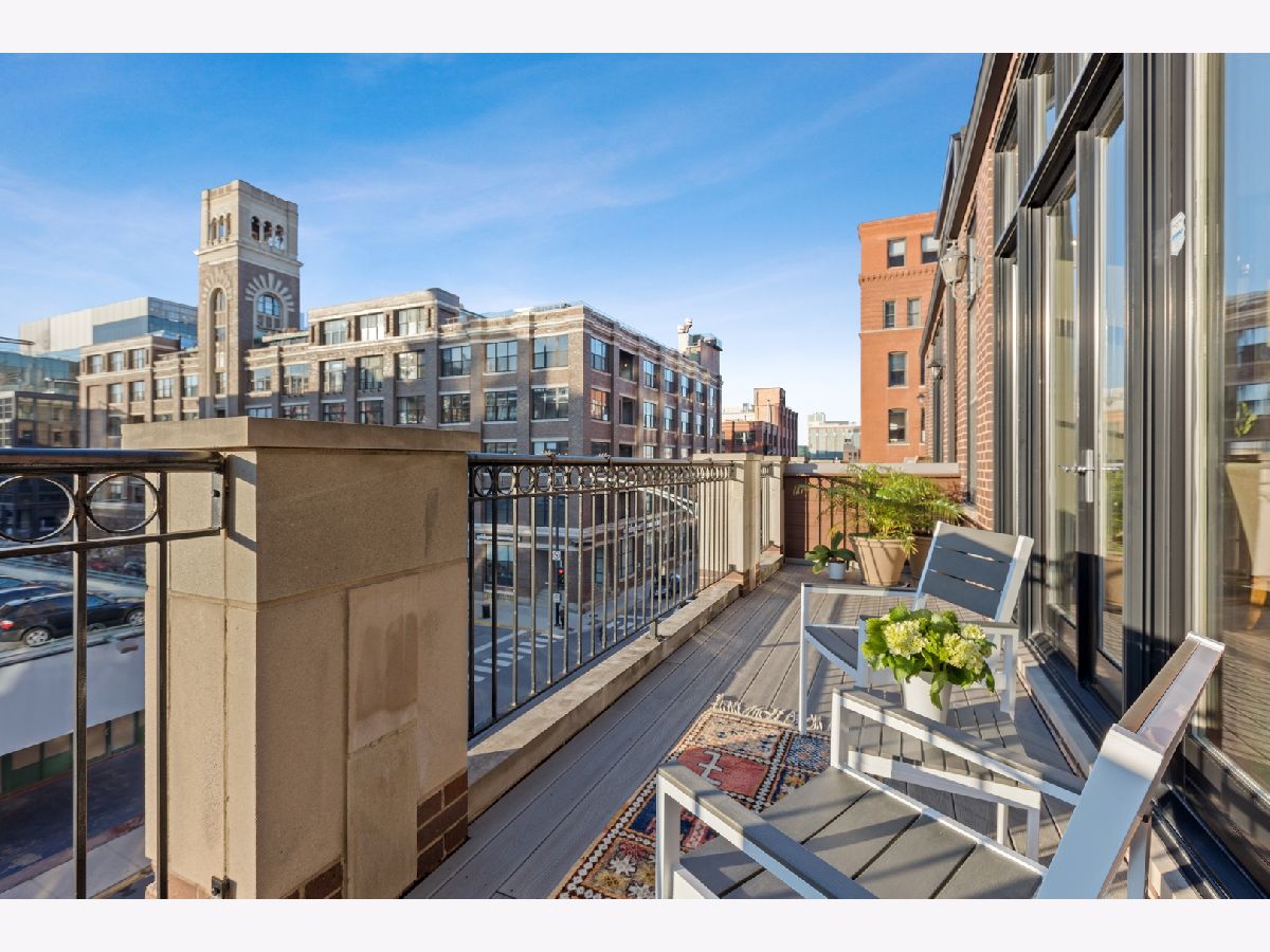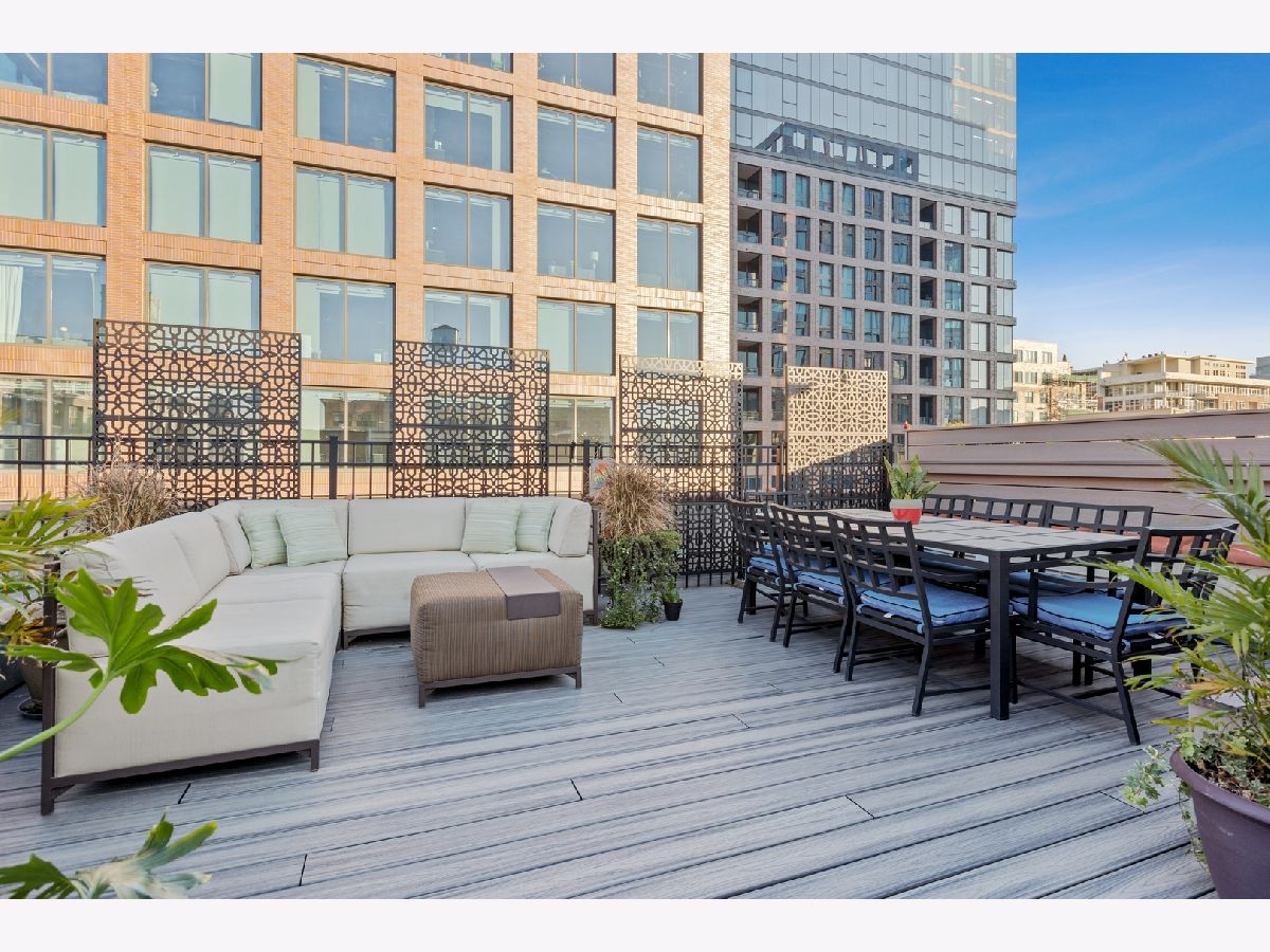 Stunning Penthouse duplex up in a walk up building steps to Randolph Street, Fulton Market, McDonald's HQ, and Google HQ. From the moment you walk in, you'll be greeted by the 2 story living room which features a full wall of windows and large front terrace with room for a grill, table & chairs, and more! Unit has been freshly painted, new high end carpet installed on entry stairs, and all recessed lighting has been updated to LED with smart lighting controls. Open kitchen features stainless steel appliances, custom glass backsplash, and tons of storage. Primary bedroom has custom built walk in closet, private terrace, motorized shades and a brand new bathroom with separate floating tub, large walk in steam shower, and double vanities. 2nd bed has been outfitted with a queen size murphy bed. All bathrooms have Decora custom vanities with Toto undermount sinks, quartz counters, Toto dual flush toilets, and Medeli lit and heated vanity mirrors. Large family room on the upper level has a full bath and french doors out to a private roof deck! Unit spans almost 2000 square feet of interior space and over 700 square feet of private outdoor space. Oversized, attached & heated garage parking space included. A++ location steps to Randolph street, Fulton Market and more!