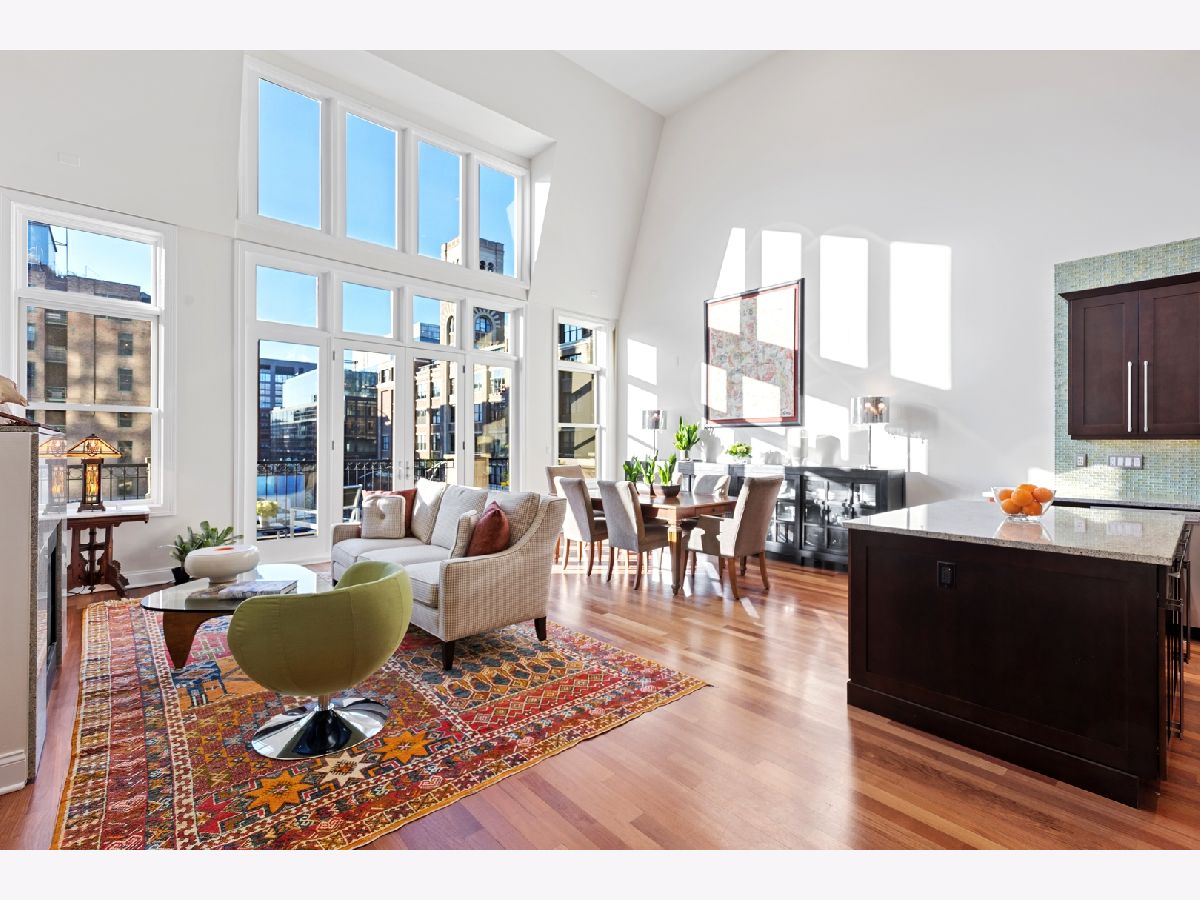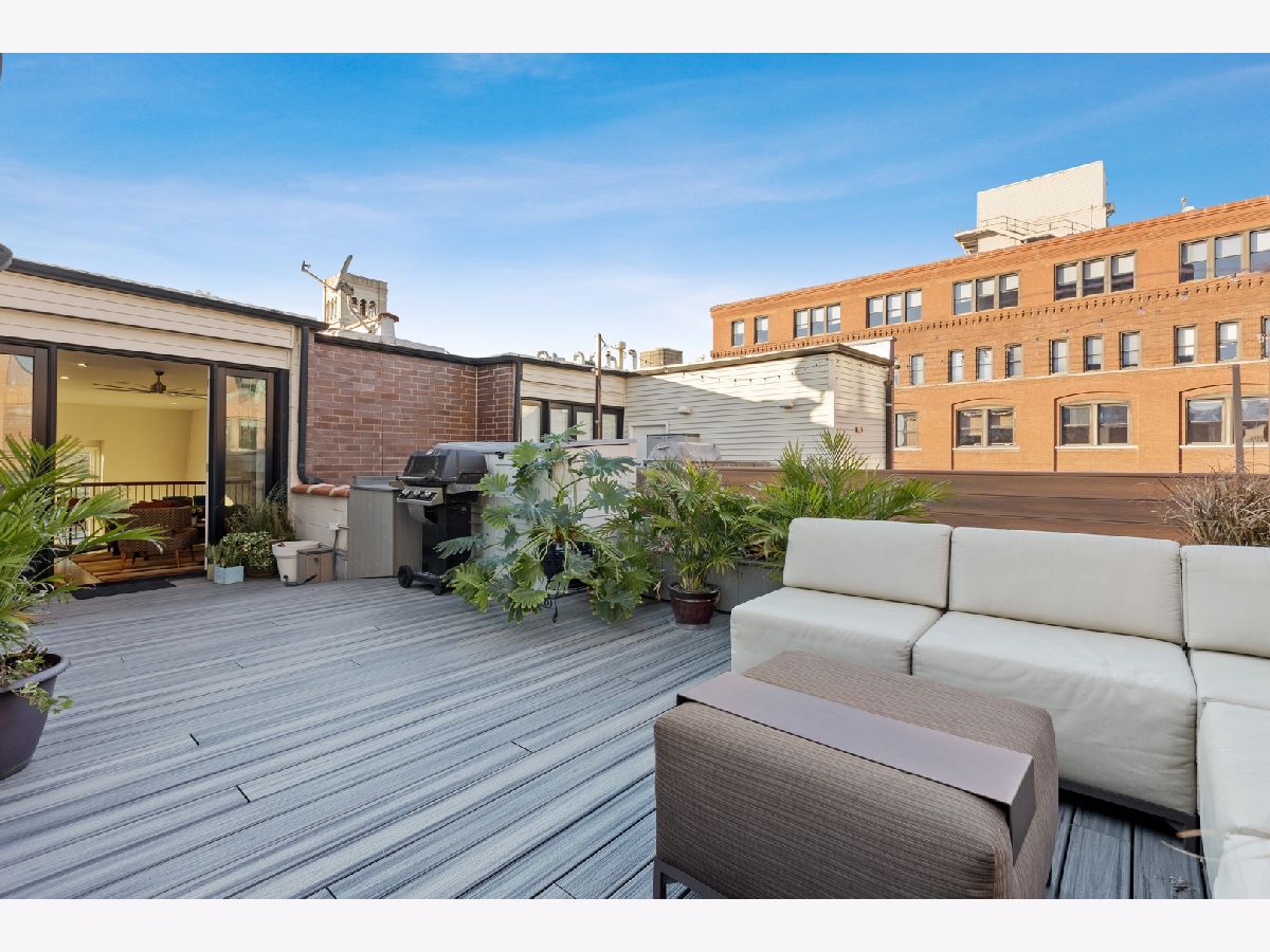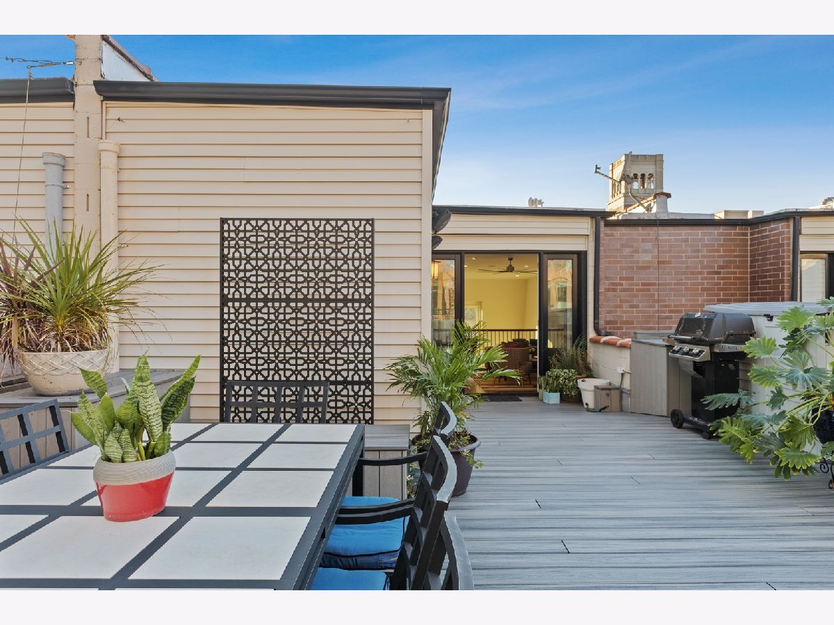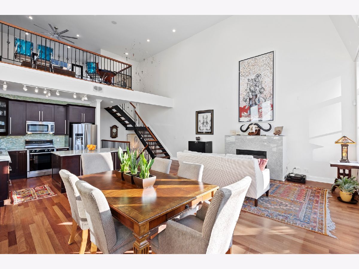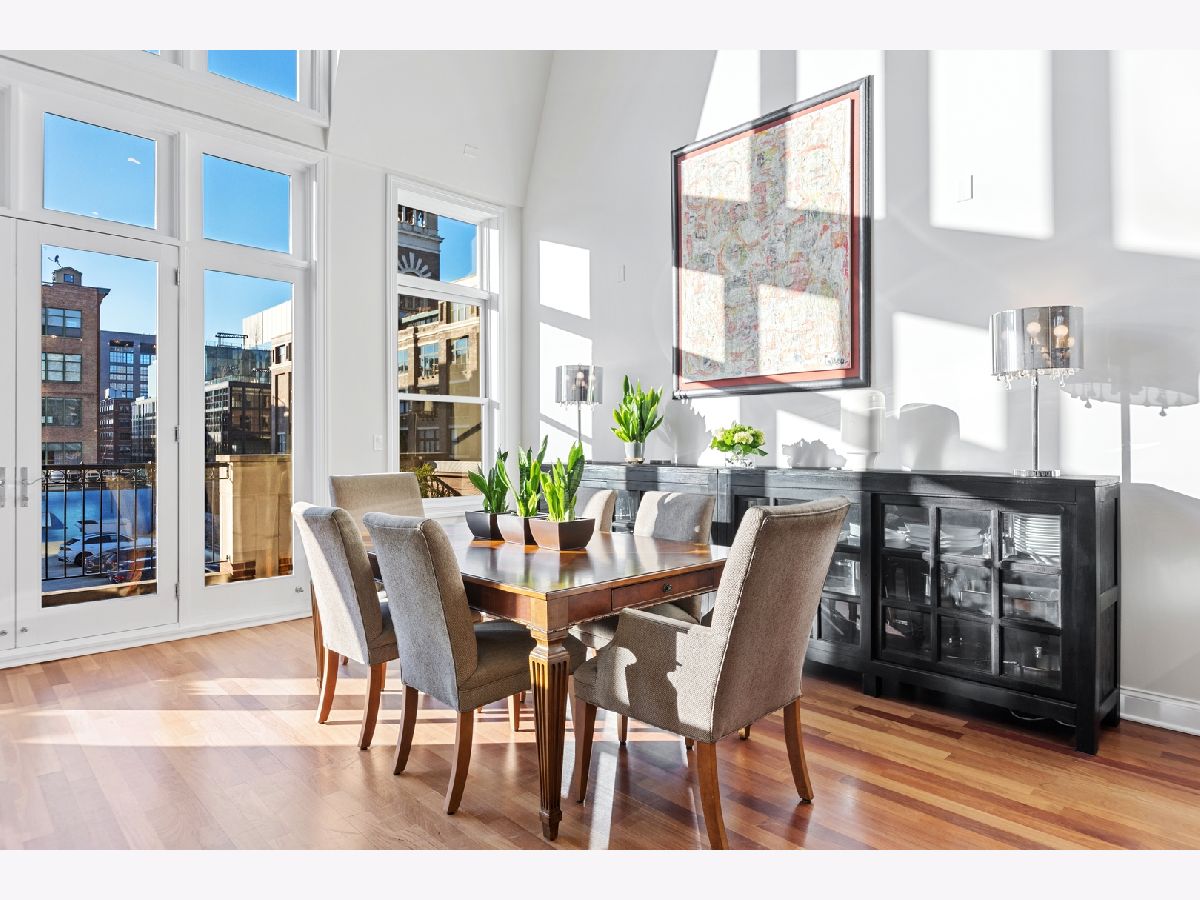 Stunning Penthouse duplex up in a walk up building steps to Randolph Street, Fulton Market, McDonald's HQ, and Google HQ. From the moment you walk in, you'll be greeted by the 2 story living room which features a full wall of windows and large front terrace with room for a grill, table & chairs, and more! Unit has been freshly painted, new high end carpet installed on entry stairs, and all recessed lighting has been updated to LED with smart lighting controls. Open kitchen features stainless steel appliances, custom glass backsplash, and tons of storage. Primary bedroom has custom built walk in closet, private terrace, motorized shades and a brand new bathroom with separate floating tub, large walk in steam shower, and double vanities. 2nd bed has been outfitted with a queen size murphy bed. All bathrooms have Decora custom vanities with Toto undermount sinks, quartz counters, Toto dual flush toilets, and Medeli lit and heated vanity mirrors. Large family room on the upper level has a full bath and french doors out to a private roof deck! Unit spans almost 2000 square feet of interior space and over 700 square feet of private outdoor space. Oversized, attached & heated garage parking space included. A++ location steps to Randolph street, Fulton Market and more!