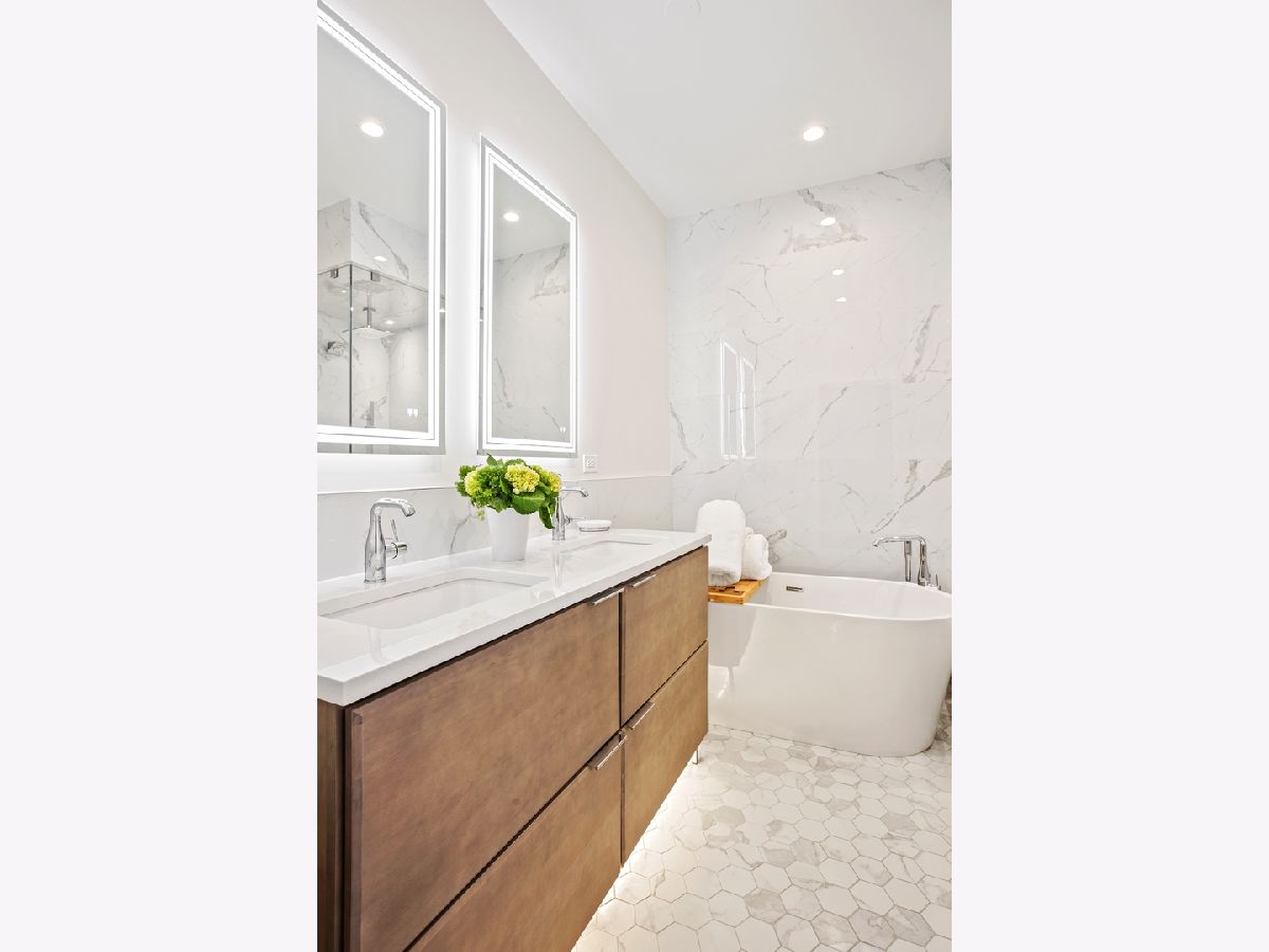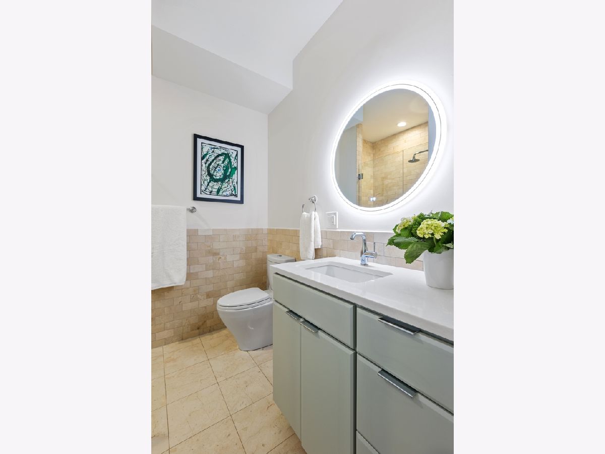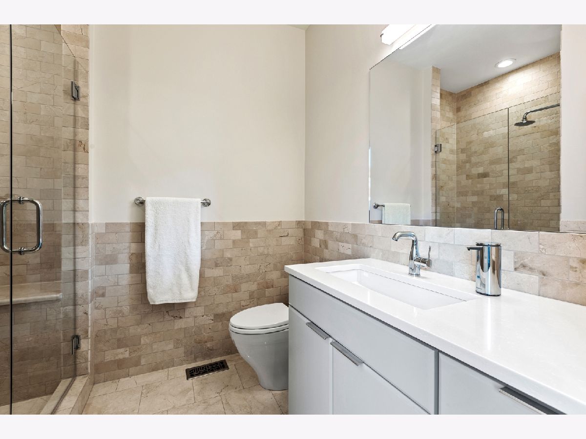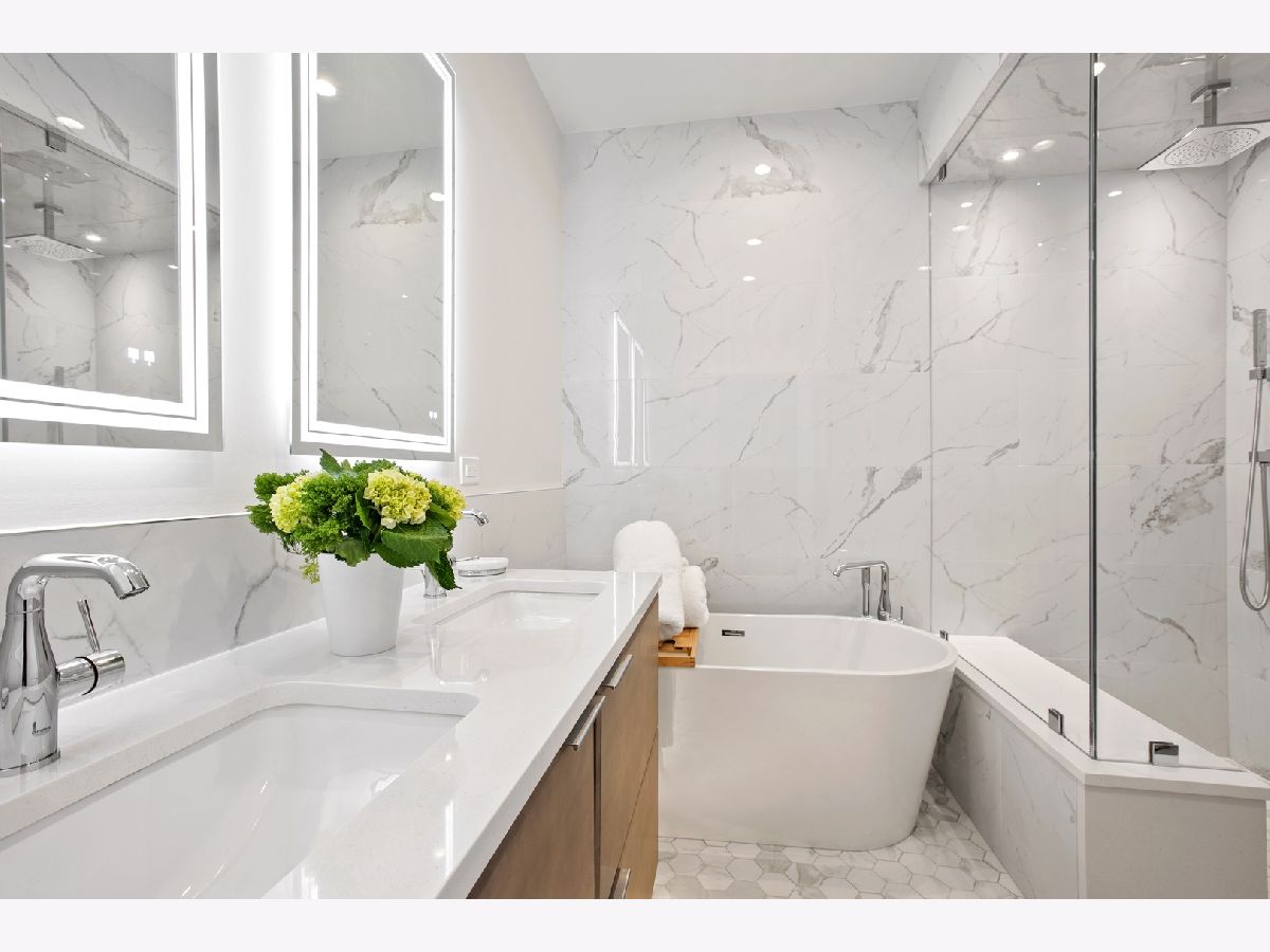Stunning Penthouse duplex up in a walk up building steps to Randolph Street, Fulton Market, McDonald's HQ, and Google HQ. From the moment you walk in, you'll be greeted by the 2 story living room which features a full wall of windows and large front terrace with room for a grill, table & chairs, and more! Unit has been freshly painted, new high end carpet installed on entry stairs, and all recessed lighting has been updated to LED with smart lighting controls. Open kitchen features stainless steel appliances, custom glass backsplash, and tons of storage. Primary bedroom has custom built walk in closet, private terrace, motorized shades and a brand new bathroom with separate floating tub, large walk in steam shower, and double vanities. 2nd bed has been outfitted with a queen size murphy bed. All bathrooms have Decora custom vanities with Toto undermount sinks, quartz counters, Toto dual flush toilets, and Medeli lit and heated vanity mirrors. Large family room on the upper level has a full bath and french doors out to a private roof deck! Unit spans almost 2000 square feet of interior space and over 700 square feet of private outdoor space. Oversized, attached & heated garage parking space included. A++ location steps to Randolph street, Fulton Market and more!