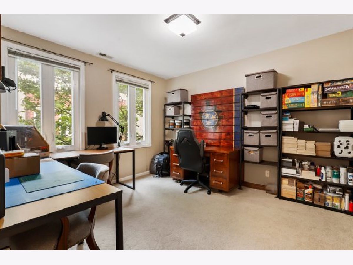 Corner 3 bedroom, 2 bath town house sits in meticulously maintained courtyard with two private outdoor spaces. Freshly painted first floor boasts hardwood floors throughout, spacious living room/dining room and wood burning fireplace with slate surround. Kitchen with granite counter tops, custom cabinets and stainless steel appliances. The second floor has a full bath with shower/tub and heated floors and two spacious bedrooms plus side by side laundry. The top floor features a bonus flex office/work out/sitting space with French doors that leads to the primary suite with walk in closet, room for king set plus primary bath with walk in shower, heated floors and granite topped dual sink vanity. Private gated courtyard area with room for grill, patio set and landscaping. Gated entrance off Sheridan for easy street access. Garage parking included. Blocks to Lake Michigan beach, running/bike trails, Sheridan Red Line stop, Wrigley Field, DuSable Lake Shore Drive and Lakeview/Wrigley retail and dining.