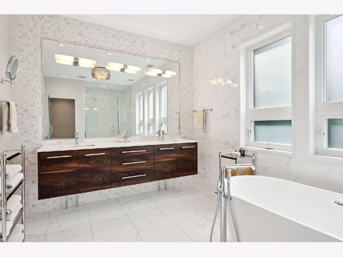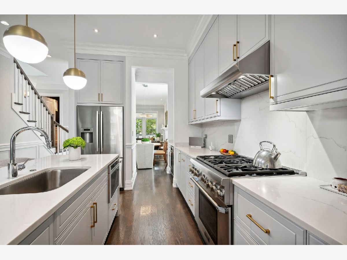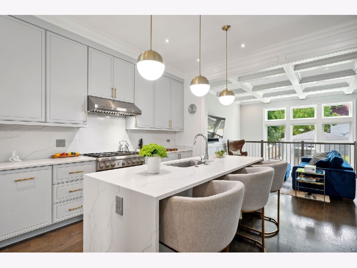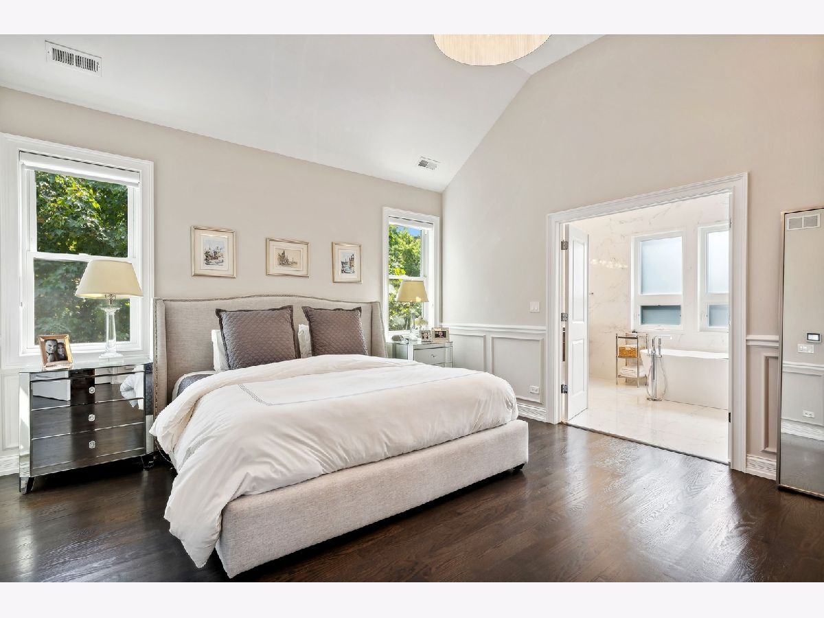 Step into this gorgeous, newer construction home, perfectly situated on a deep corner lot in Old Irving Park. This home feels like a suburban retreat right in the city.From the beautifully landscaped front yard to the spacious backyard, you'll love every inch of this property. Enter from the inviting front porch into a living room that boasts a stunning marble fireplace and elegant wainscoting. The dining room flows into a butler's pantry, complete with a wine fridge, and leads to a custom kitchen that's a chef's dream. The pale cabinets, quartz countertops, large pantry, Thermador and Bosch stainless steel appliances, and an 8-foot waterfall island make this kitchen both functional and stylish. The family room, with its coffered ceiling, features a wall of windows overlooking the expansive backyard and paver patio, perfect for hosting gatherings or relaxing in peace. Upstairs, skylights flood the home with natural light. The primary suite is a serene haven with a vaulted ceiling, walk-in closet, wall of additional closets, and a luxurious spa-like bathroom featuring a soaking tub, separate shower, heated floors and double sinks.Two additional bedrooms are on the top floor, one with a walk-in closet, along with a convenient second laundry area. The lower level offers heated floors, a spacious family room, wet bar, guest suite, an additional bedroom (currently used as a workout room), a full bathroom, and a well-equipped laundry room with side-by-side washer/dryer, sink, cabinetry, and hanging space. Outside, the backyard transforms into your private oasis when the trees are in full bloom-ideal for entertaining or unwinding. Even better than new construction, owners invested thousands in upgrades, including custom closet organizers, window treatments, and extensive landscaping. The detached two-car garage offers extra storage space. Conveniently located just a 15-minute drive from O'Hare Airport, downtown Chicago, and the lakefront, and within walking distance to the Blue Line, Metra, Disney Elementary, Eris Brewery, Starbucks, Smoke BBQ, Independence Park Farmer's Market, and more-this home is the perfect blend of luxury and convenience. Don't miss the opportunity to make it yours! Electric Car charger in the garage.