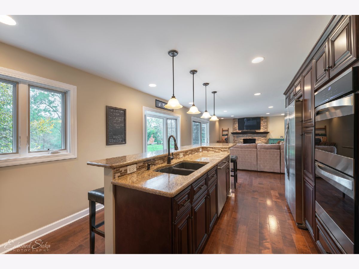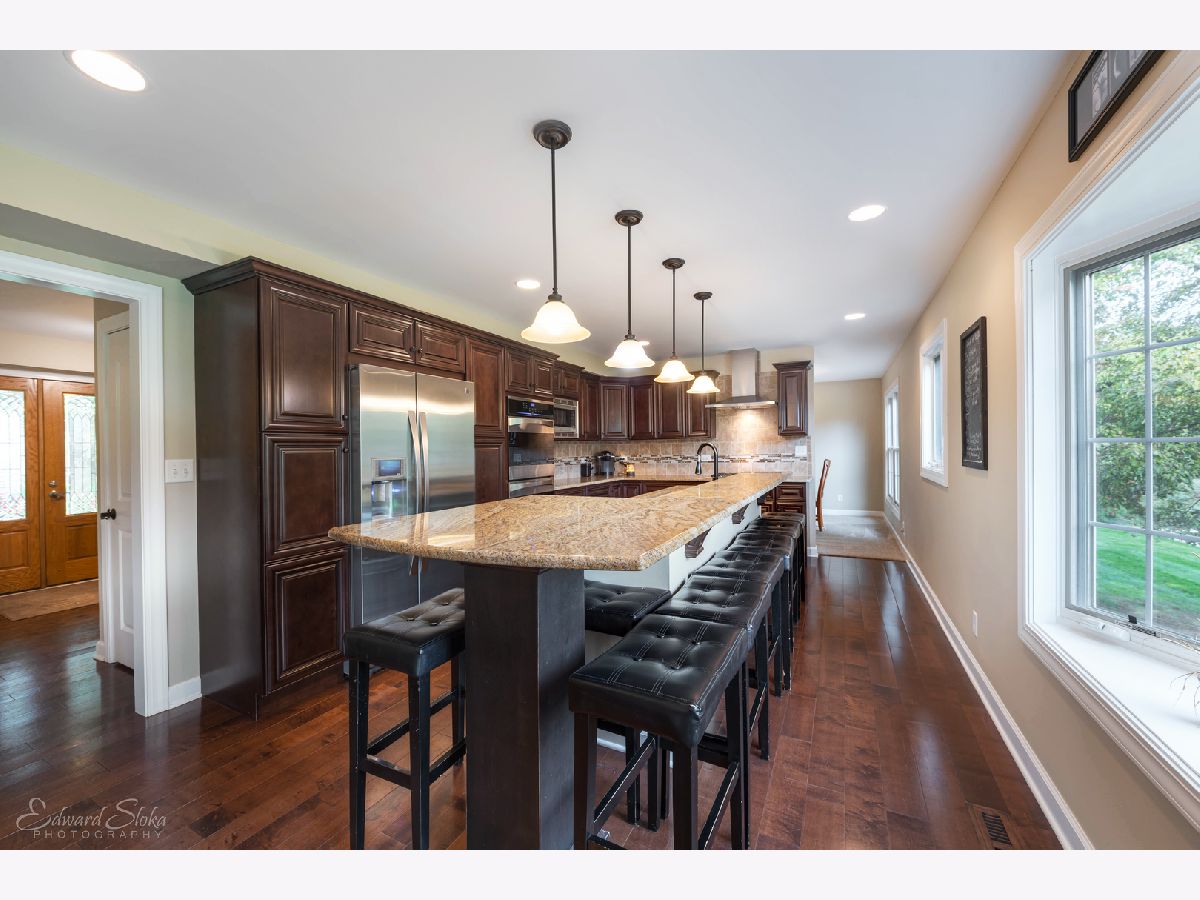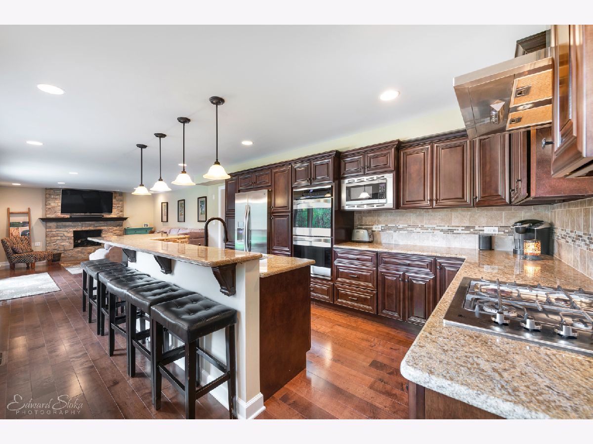You will fall in love with this immaculate home and its picturesque, park like 1 - acre retreat! Be impressed by this home's thoughtful design with great attention to detail, and creative floor plan with a spectacular flow. Enjoy open concept living as the stunning gourmet kitchen flows into the cozy family room with a beautiful stone gas fireplace. So much room for family time or to entertain in this space! The kitchen features all stainless appliances, double ovens, range and hood, granite counters, huge island with breakfast bar, gorgeous lighting and hardwood flooring. The main level also boasts the dining room, living room and temperature controlled sun room with wall to wall windows and spectacular views out every one! Upstairs you will find four spacious bedrooms, including a newly renovated master suite, brand newly renovated luxury master bath, huge walk in closet and private balcony overlooking the back yard. The second full bath has also been newly updated. Enjoy hours of family fun in the 1200+ square foot finished basement featuring an amazing rec room, exercise space, half bath and office/5th bedroom/playroom...the possibilities are endless. Relax or entertain on the custom designed stone patio with built in gas grill, bar, fire pit and outdoor speakers over looking the scenic, private back yard oasis backing to nature area...no neighbors behind! But that's not all...Newer carpet, lighting, some new doors, casement windows, newer furnace and a/c along with the brilliant desirable decor. Feel like you've escaped it all but only minutes from town, Metra, shopping, dining, entertainment, parks, beaches & more! Award winning Crystal Lake schools, (D155) Prairie Ridge HS, and D47! There is nothing to do here but move in and ENJOY!