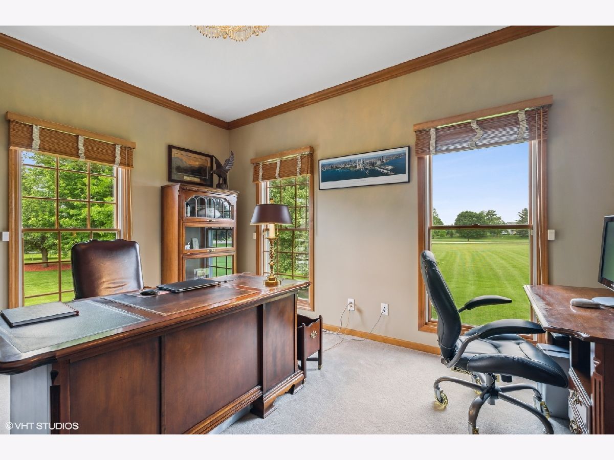 Welcome to this executive style, custom home perfectly situated on an oversized 2.2-acre corner lot within walking distance to top-rated Prairie Ridge High school in the coveted Squaw Creek subdivision. You will be warmly greeted upon entry by a dramatic two-story foyer leading into an expansive open floor plan with elegantly appointed finishes throughout. This home is ready for all your entertainment needs with a chef's kitchen boasting high-end stainless steel appliances, 42" cabinetry and custom backsplash, double Fisher and Paykel dishwashers, an oversized island with breakfast bar, all opening up to your eating area and family room with a cozy gas fireplace and a full wall of south-facing windows flooding the home with natural light. Enjoy large dinner parties in your spacious formal dining room, a nightcap in your formal living room, and a beautiful office overlooking your manicured yard on the main level. The upper level offers 4 spacious bedrooms and 2 bathrooms, including the luxurious primary suite offering a walk-in closet, a spa-like bath with dual vanity, a corner jet tub with serene treetop views, and a separate glass shower with body sprays. Your guests and in-laws will never want to leave their idyllic suite on the lower level, featuring an ensuite bath with a glass shower. On the lower level, you will also find a second office, complete with custom built-in shelving, a spacious rec room perfect for movie nights, plenty of space for a work-out room, and tons of storage including a cedar closet. No expense was spared in making the outdoor space the private oasis of your dreams. Enjoy grilling and relaxing on your composite deck conveniently off the kitchen surrounded by mature trees allowing for maximum privacy, hot days in the comfort of your gazebo, and cool evenings by your built-in fire pit surrounded by bluestone pavers and professional landscaping that surrounds the home. There is something for everything in this immaculate yard; a playground for the kids, a vegetable garden for the chef, a huge open yard for the athlete to play with their whole team, and plenty of space to build a pool. A 3 car garage completes this beautiful home. This rare gem is a short walk to award-winning Prairie Ridge High School, under a 5-minute drive to two Metra stops, paved bike trails, Three Oaks Recreation Area, Main Beach, Sternes Woods, downtown shops, golfing, Veterans Acre Park, and so much more! This home is sure to check all your boxes, welcome home!