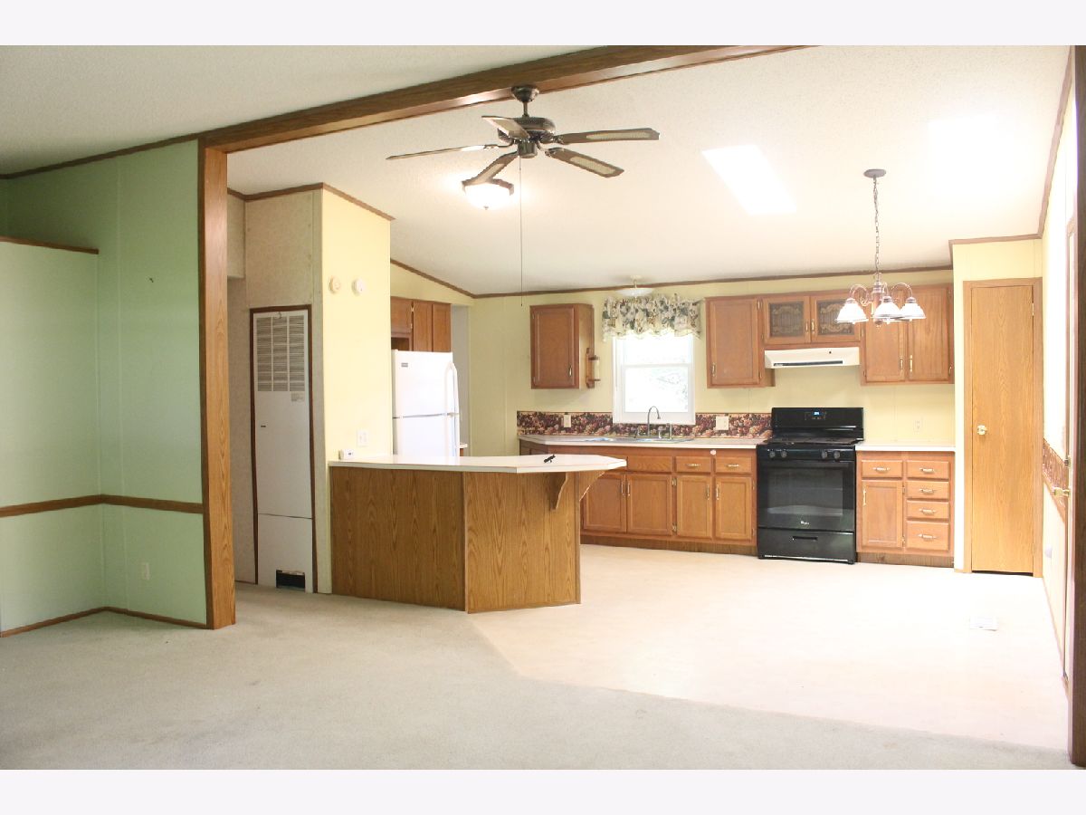 GREAT OPPORTUNITY AT GREENVIEW ESTATES! 2 BEDROOM, 2 BATH WITH 2.5 CAR GARAGE. NICE OPEN LIVING ROOM AND EAT-IN KITCHEN. PRIMARY BEDROOM SUITE WITH NEWER WALK-IN SHOWER AND LARGE WALKIN CLOSET. SECOND BEDROOM ALSO HAS WALK-IN CLOSET. LAUNDRY ROOM HAS NEWER WASHER AND DRYER. GARAGE HAS AREA FOR WORKBENCH AND SHELVING. 1120 SQ. FT. SOME CARPET NEEDS REPLACED AND HOME IS PRICED ACCORDINGLY. BEING SOLD "AS IS". PARK AMENITIES- BASKETBALL COURT, KIDS PLAYGROUND, ACCESS TO THE KISHWAUKEE RIVER. CURRENT LOT RENT $655 MONTHLY.