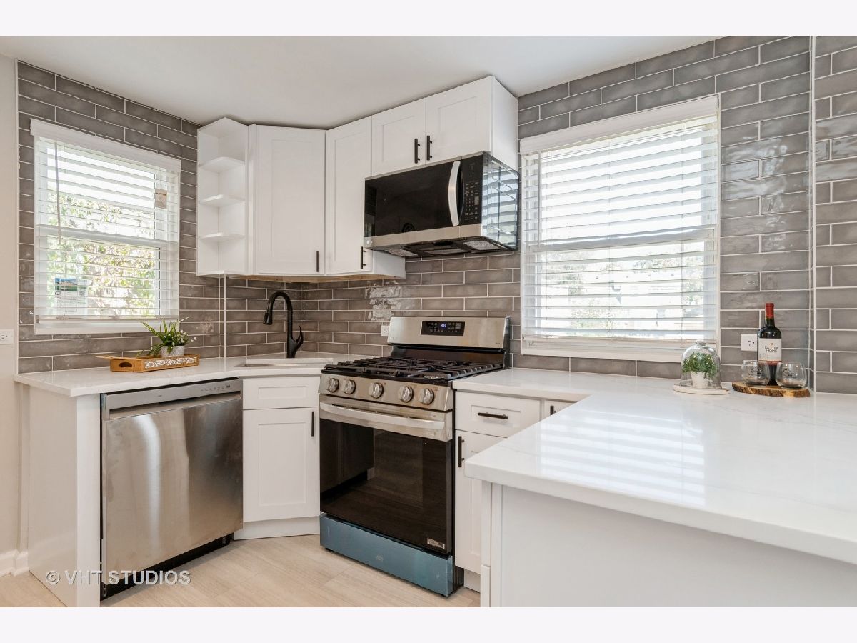 Welcome to your dream home in Bellwood! This beautifully renovated Georgian brick gem features a rare layout with 3 spacious bedrooms and 2 full bathrooms, located on a peaceful street. Step inside to find a brand new kitchen complete with a breakfast bar, perfect for morning coffee or casual meals. The main floor boasts bright, wood laminate floors, brand new bay window and freshly painted walls in soothing neutral tones, creating a welcoming atmosphere. The living room flows seamlessly into the dining room, which opens directly to the new kitchen. From here, step out onto the raised deck that leads to a newly installed concrete patio and a fully fenced yard, ideal for entertaining guests or enjoying a quiet evening outdoors. Upstairs, you'll discover 3 comfortable bedrooms and a modernized bathroom. The fully finished basement offers a cozy family room with new luxury wood laminate flooring and a second full new bathroom, a rare find in this area. Parking is a breeze with a two-car garage accessible from the back alleyway. This home is perfectly situated for convenience, offering easy access to highways, downtown Chicago, the airport, and more. Don't miss out on this exceptional property - it's close to everything you need and ready for you to move in and enjoy!
