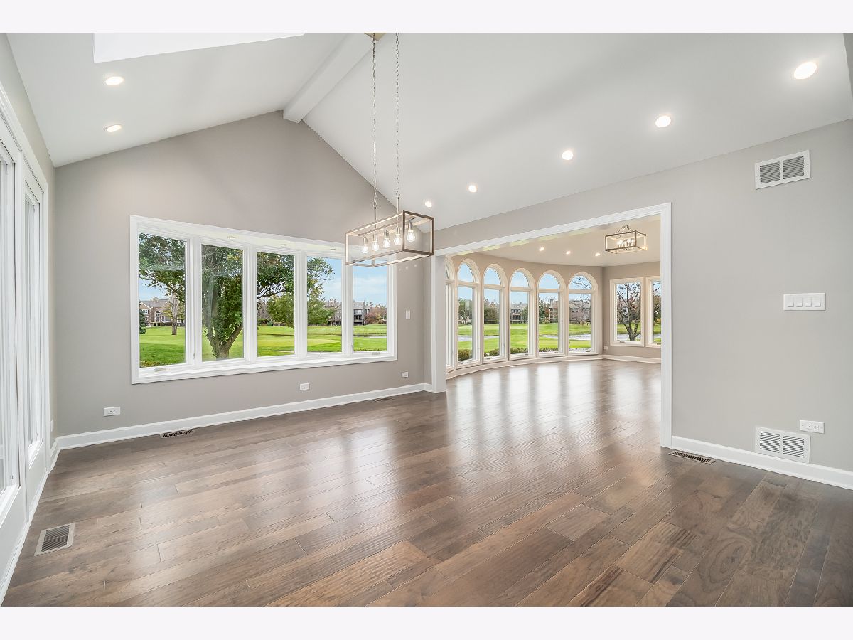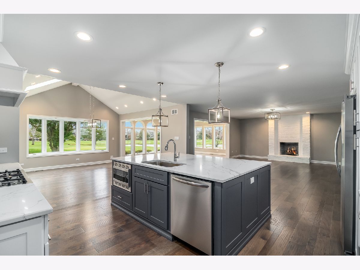 Extensive paver driveway, patio, and retaining walls welcome you to this exquisite dream home that has been re-imagined top to bottom. Entertainers dream with open floor plan which draws you into the panoramic rolling golf course and pond views of hole 17! Curved wall full of floor to ceiling arched windows will immerse you into the outdoor experience. Dream kitchen with 42" cabinets, huge island with quartz counter tops, dramatic hood, and beverage fridge. Amazing Master Suite with tray ceilings in main bedroom, massive walk in closet, vaulted ceilings in sitting room overlooking the tranquil view of the course and pond. Double door invites you into the master bath with tray ceiling, dual vanity, soaker tub, and massive walk in shower. Every bedroom has a walk-in closet. New carpet, new hardwood, new tile, new vanities, new vanity tops throughout. Bright finished basement with tons of lighting and full bathroom. Possible in-law arrangement with first floor bathroom. Huge mud room is open to your imagination. This home will not disappoint! Drastically reduced - Your opportuniy to own a home in this highly sought after golf club community!
