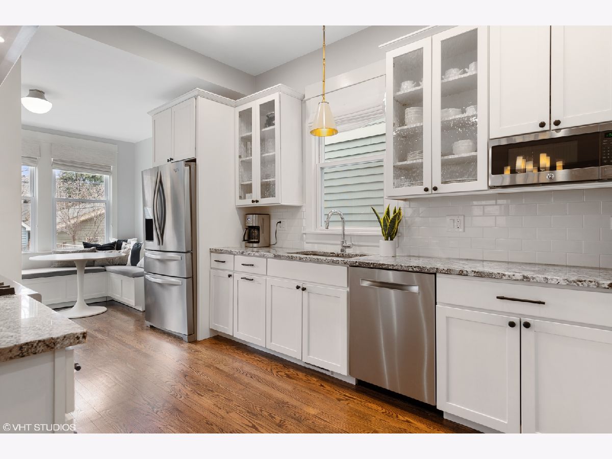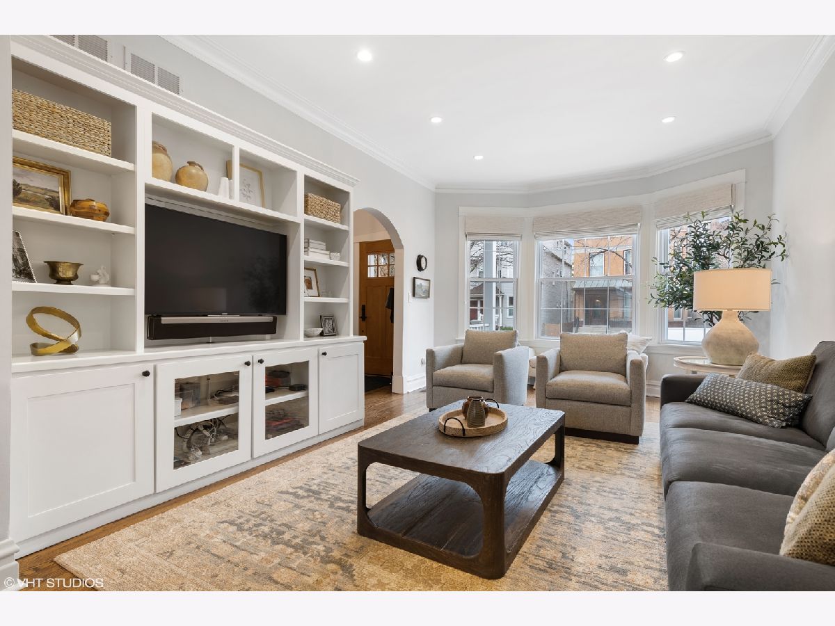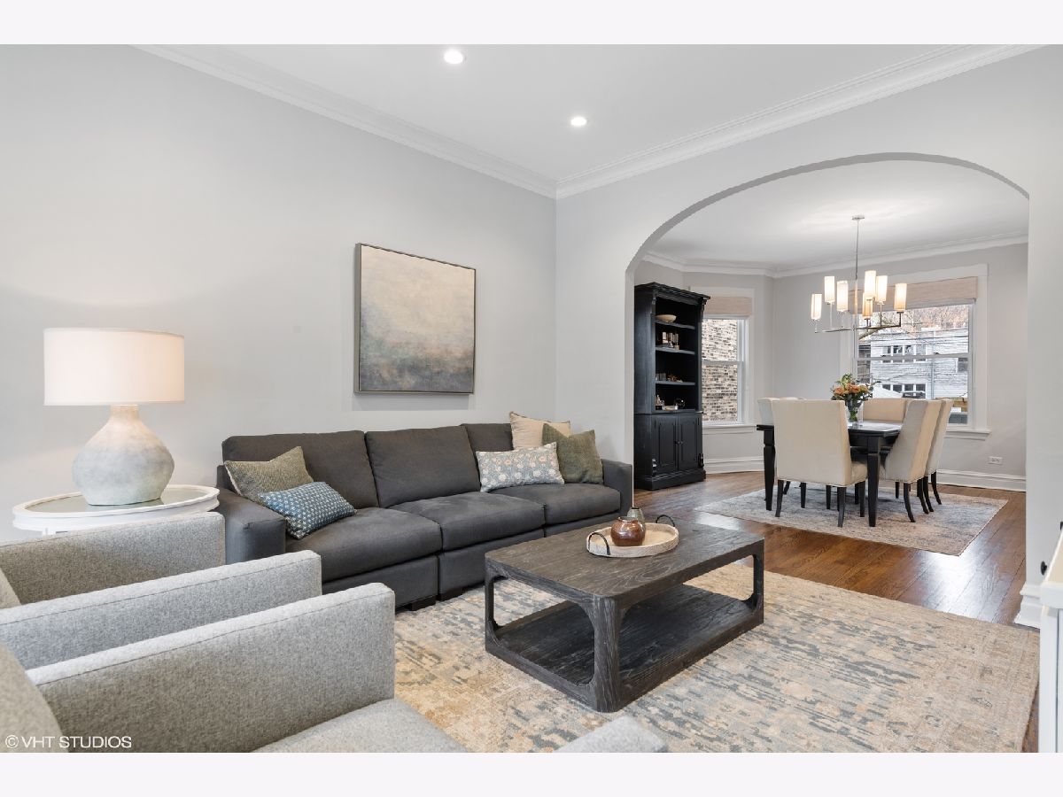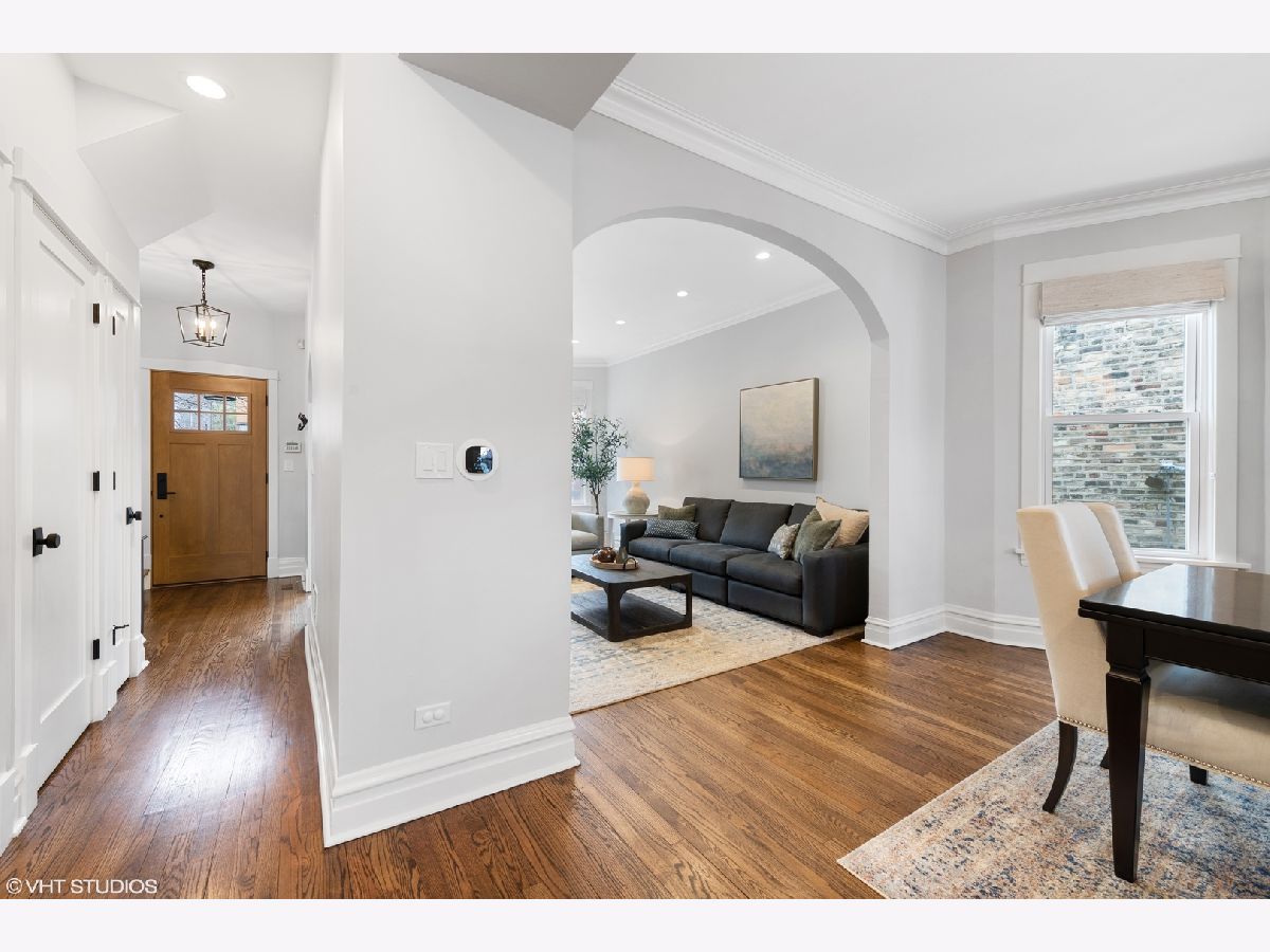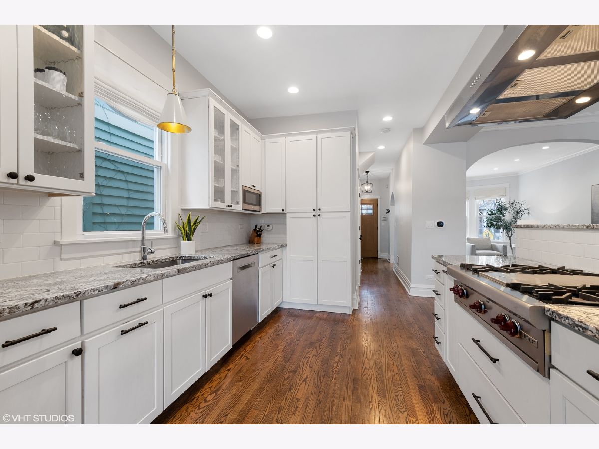 Welcome home to a bright, beautifully updated, and meticulously maintained home in the heart of North Center and the Bell School district! This home has been fully renovated with thoughtful and functional details added at every turn! Featuring a large and welcoming living room with bay window and custom built-ins upon entry, the seamless floor plan flows into a grand dining room and fabulous white chef's kitchen with high-end stainless appliances (new fridge and dishwasher), granite counters and eat-in area with banquette. This sun-filled room overlooks the over-sized and professionally landscaped lush backyard with quaint back deck, bluestone patio, and pergola, perfect for entertaining and relaxing! The second level includes 3 generously-sized bedrooms, all with custom closets and window treatments, including the king-sized primary suite with all new, completely gut renovated gorgeous primary en-suite bath with high-end Waterworks tile, dual custom vanities, toilet closet, and professionally designed walk-in closet. This floor also features a new W/D, along with a fully renovated 2nd full bath with new tile, vanity, Kohler fixtures, and lighting. The fully finished lower level is a perfect rec room, boasting brand new carpet, beautiful cabinetry, fireplace, and abundant storage, as well as a 4th bedroom and another full bath, perfect for guests. Additional updates include: all new canned lighting throughout and Circa/Rejuvenation lighting fixtures throughout, new hardwood floors added on top level, 1st level floors refinished, custom closets in each room including front/rear entry, kitchen, basement + all bedrooms, new sump and ejector pumps + tankless water heater, and all new doors/casings throughout! Ideal location, close to Trader Joe's, Marianos and Whole foods, Lincoln Avenue, Roscoe and Irving restaurant and bars, several parks and more!
