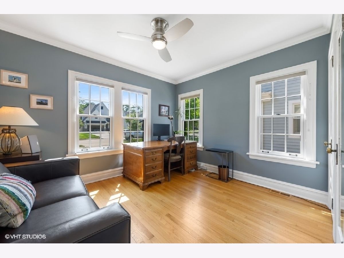 Gracious, English Tudor in the Old Town neighborhood of Western Springs. This pristine home boasts many architectural features- arched, leaded glass front door, arched doorways, wide crown moldings, alcoves and hardwood flooring. Loads of charm and character yet spacious and airy with modern finishes. Windows surround the first floor providing spectacular views of the tree-lined street and private, landscaped backyard. Relax and unwind by the fireplace in the spacious living room. Enjoy the beautiful white kitchen with island, eating area and attached sitting room. The dining room, first floor office/bedroom complete the first floor. Three bedrooms with vaulted ceiling on the second level, one being the primary bedroom with a spa bathroom all with great closet space. Finished basement with a laundry room and storage. The two car detached garage has additional storage.A short walk to town, schools, train and more!!