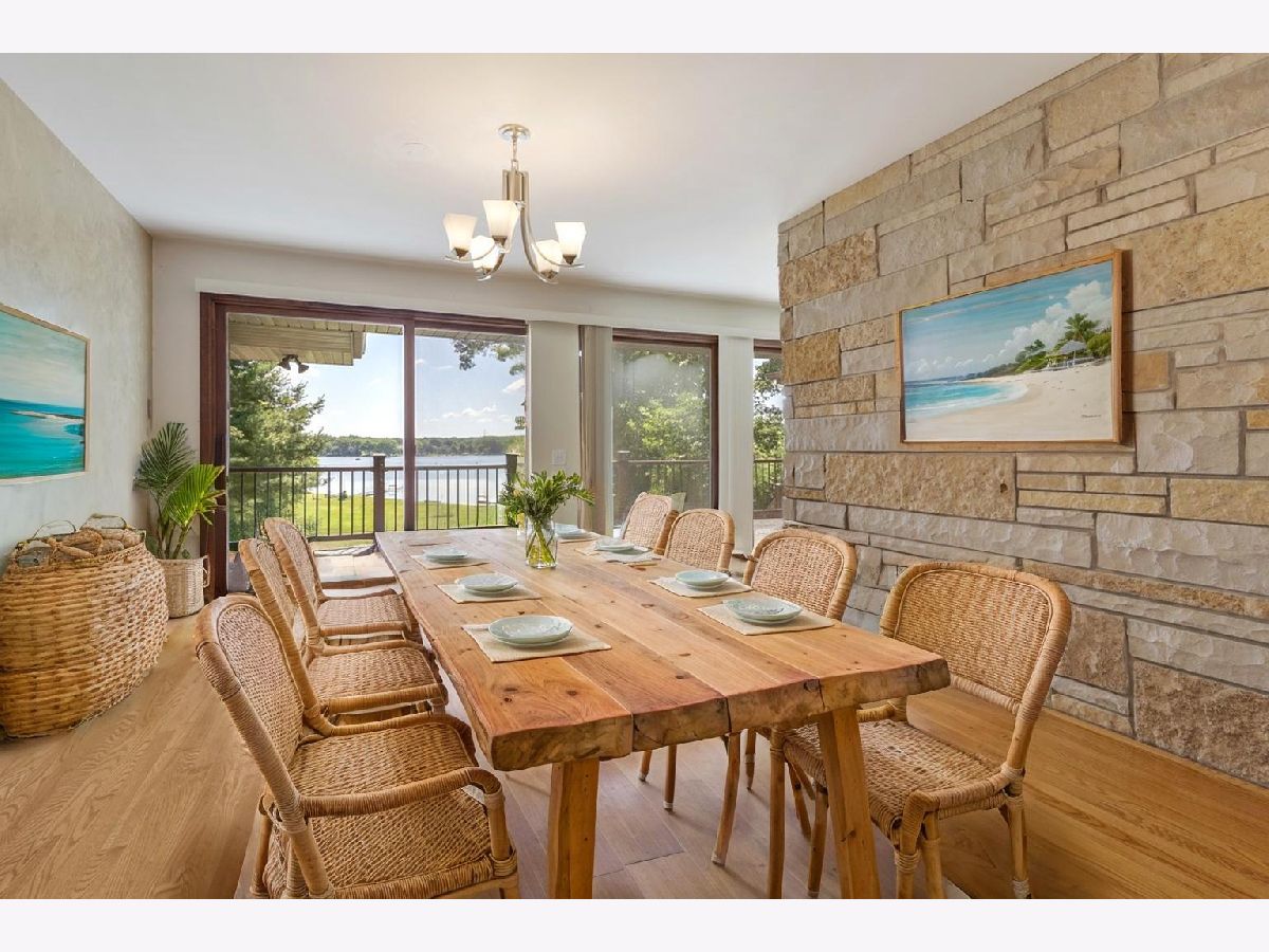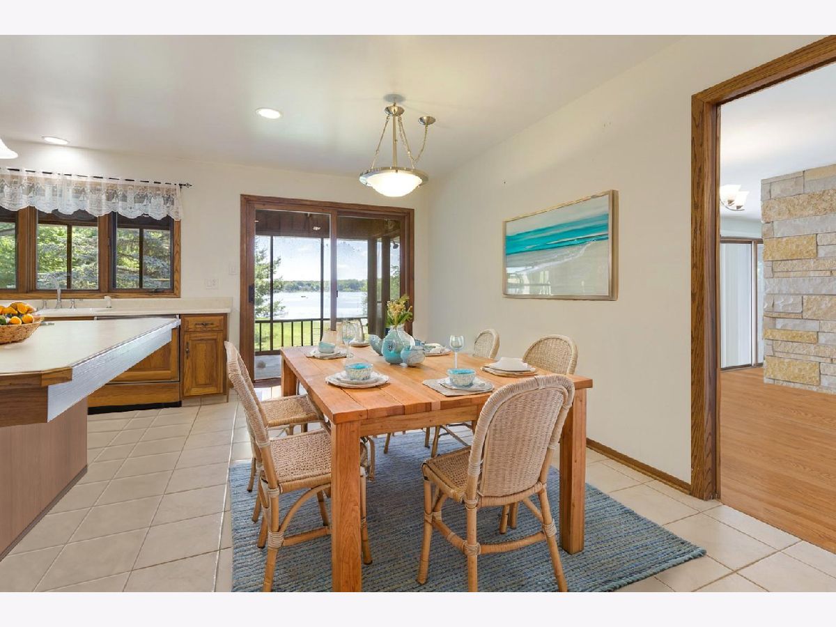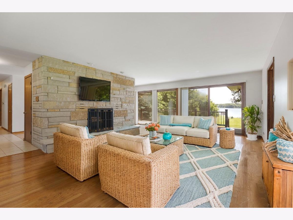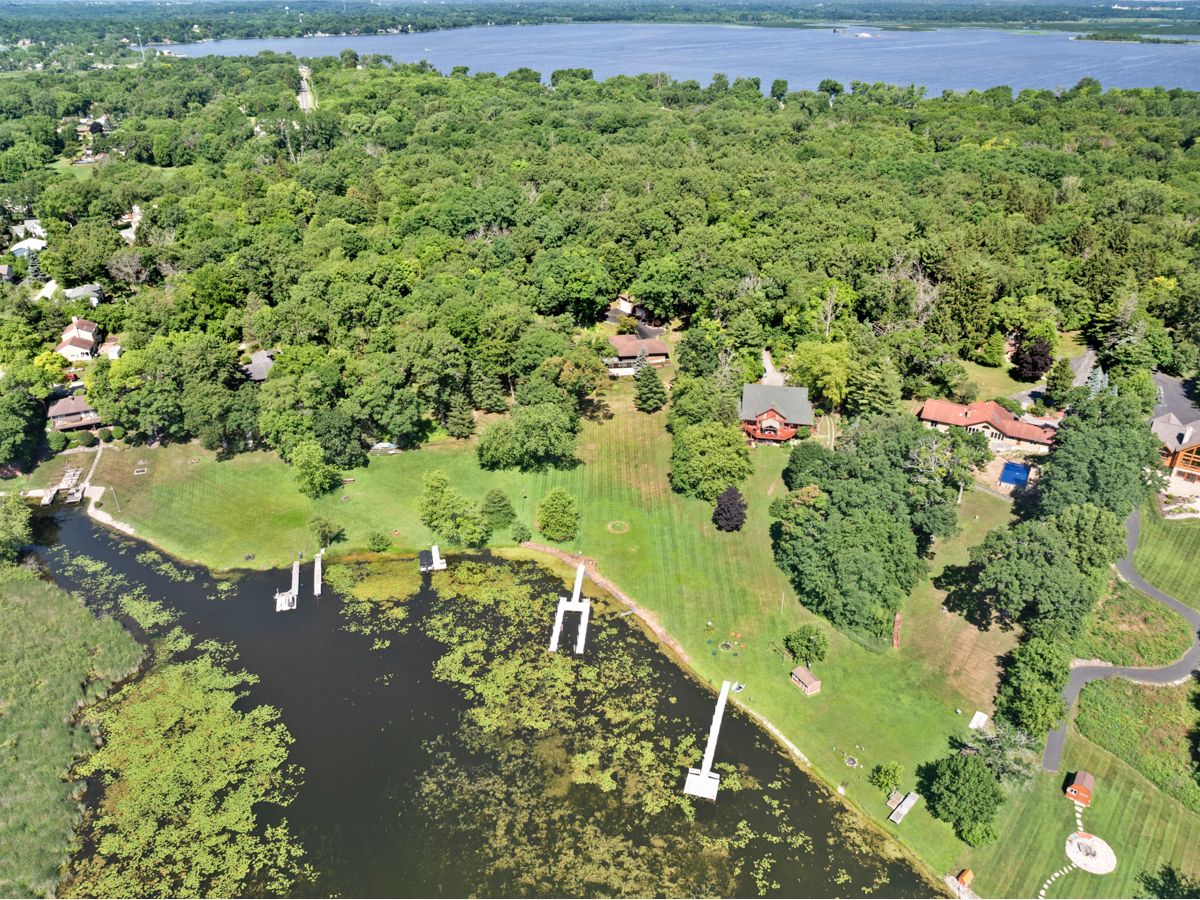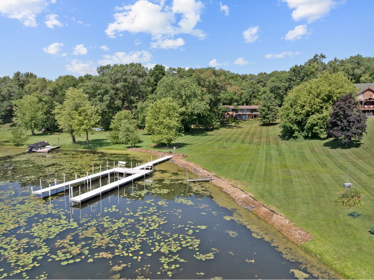 RARE CHAIN O'LAKES SETTING Stunning Waterfront Retreat on 2.55 ACRES with 177' of PETITE LAKE FRONTAGE! Welcome to your dream lakefront lifestyle! This incredible property offers ~177 feet of shoreline on Petite Lake-part of the sought-after Chain O'Lakes-with gorgeous panoramic views and a gently sloping yard that leads to your private dock. Nestled on a quiet dead-end street, you'll enjoy the peace and privacy of lake living while staying high and dry-out of the flood zone. Inside, this spacious ranch home features one level living with a full finished walk-out basement for added space (new carpet in the basement), 2 full kitchens (one on each level), and 2 cozy fireplaces (one on each level)-ideal for multigenerational living or entertaining guests. Both levels have a wall of sliding glass doors and windows to maximize water views and indoor / outdoor access. The main level primary suite has views of the water and a full en suite bathroom. There is also an optional main-floor laundry (and additional laundry in the basement). Hardwood floors throughout the main level. The attached 2-car garage is complemented by a massive detached garage with extra-tall doors and deep bays-perfect for storing boats, trailers, and lake toys. Garage capacity for ~ 8 vehicles, and the seller has stored a 40-foot boat with ease! A bubbler system lets you keep your dock in year-round, and both dock and power boat lift are included. Enjoy wide open green space for outdoor fun, relax by the water, or take your boat out for a day of adventure. Tree lined lot (along side and back of the lot) provides a feeling of tranquility and a personal, private space. This is one of the rare waterfront properties offering space, privacy, and functionality-all without compromising lake access or views. Plenty of guest parking when you want to host family and friends at the lake.