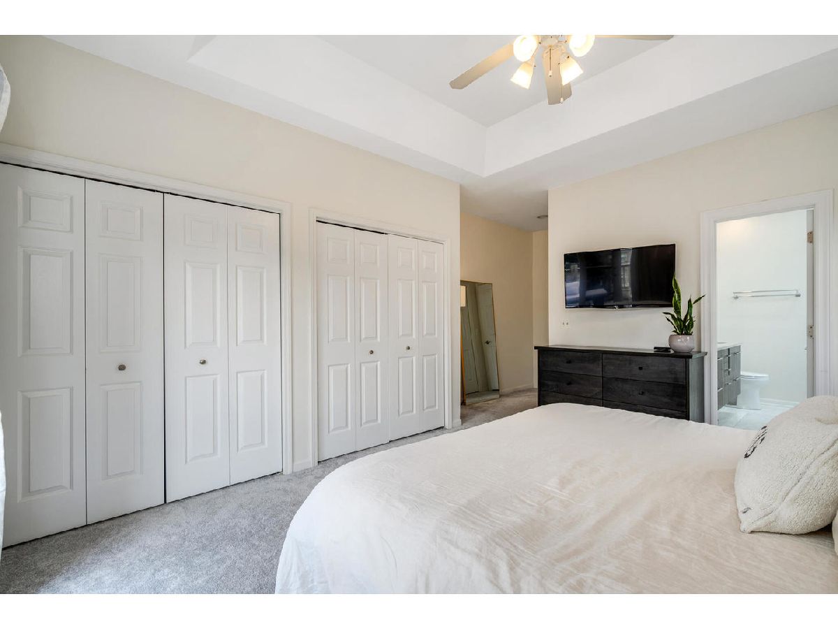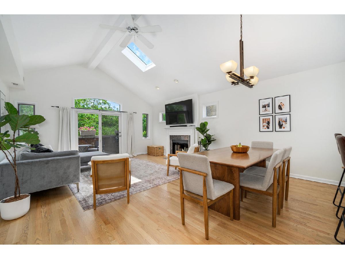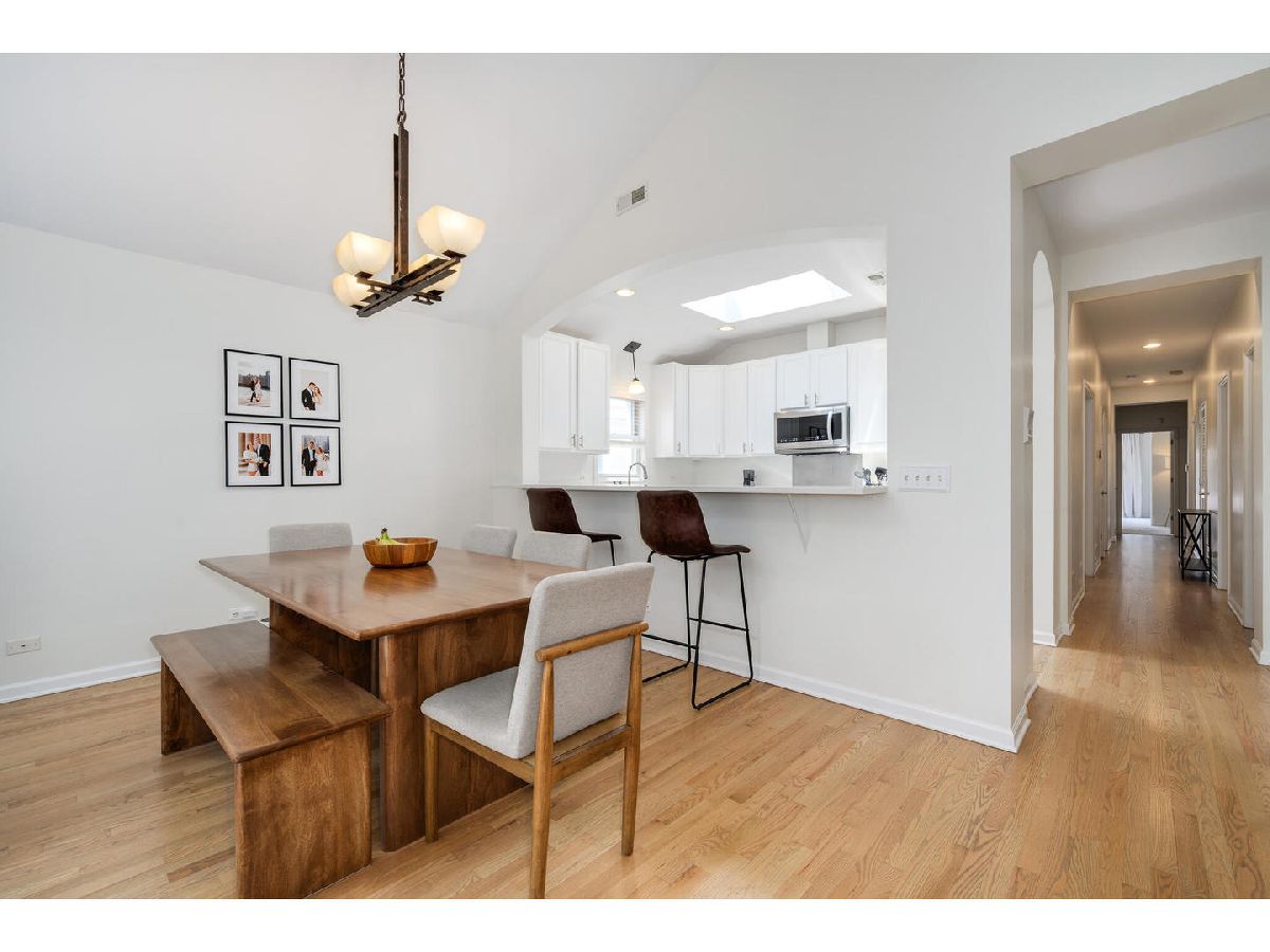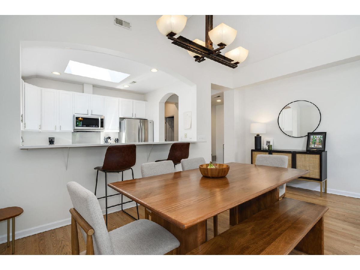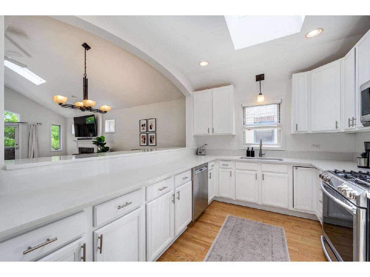 Stunning top-floor three bedroom, two bath condo with private two car garage in prime Southport Corridor Location! Nestled on tree-lined block in the highly sought-after Southport Corridor, this beautiful residence offers the perfect blend of space, light and functionality. Step into a sun-filled home featuring vaulted ceilings, skylights, and windows facing east, west, and south, allowing natural light throughout the day. The updated kitchen showcases new quartz countertops, a vast breakfast bar, stainless steel appliances, 42" white cabinetry and a large pantry for all your storage needs. The spacious living area offers a designated dining space, a cozy wood-burning fireplace and access to the front balcony. The generous primary suite offers three closets, a renovated en-suite bath with a large walk-in shower and dual vanities. Laundry room with side-by-side washer & dryer, countertop, and plenty of storage space. Front entry foyer and back entry foyer/mudroom. Additional features include: linen closet, gleaming hardwood floors, updated second full bathroom and new furnace. Enjoy ample private outdoor space, including a front and back balcony perfect for relaxing or entertaining. Boutique shopping, parks, acclaimed restaurants, grocery stores, CTA transportation, Wrigley Field and Blaine School right outside your door!