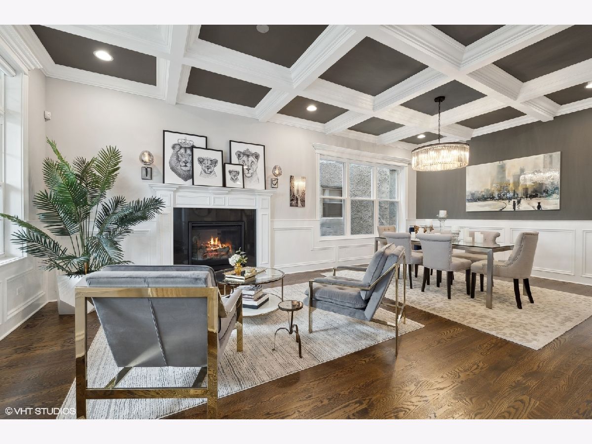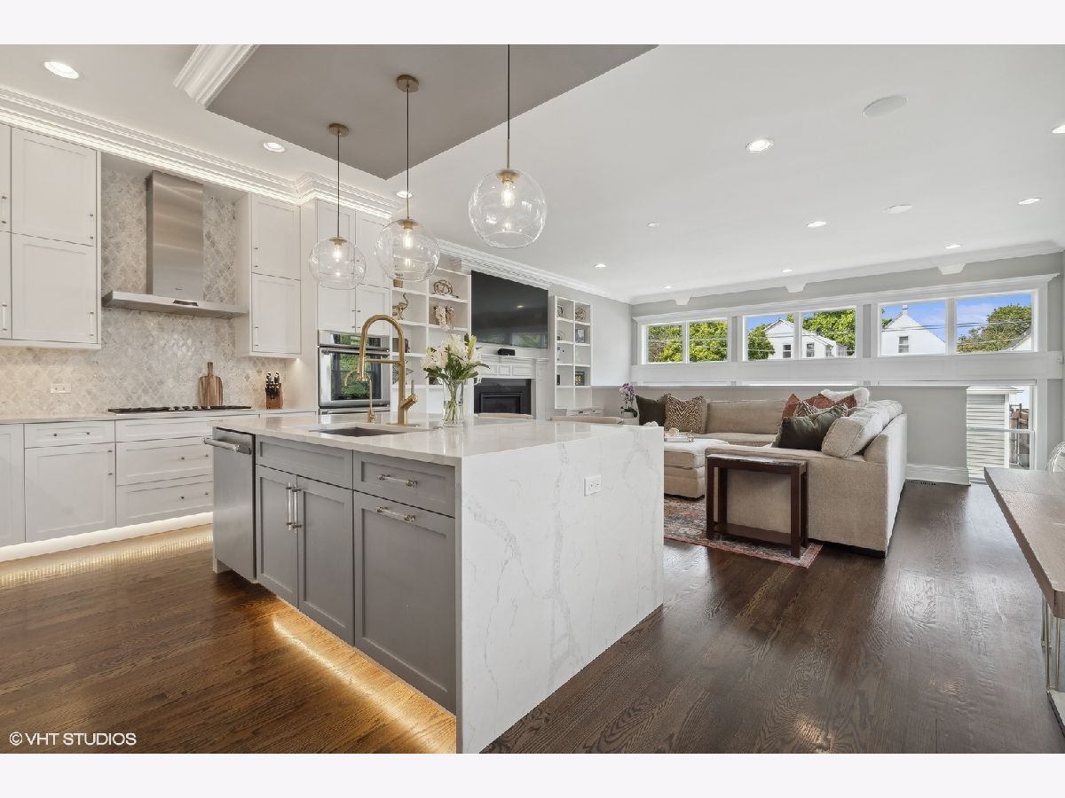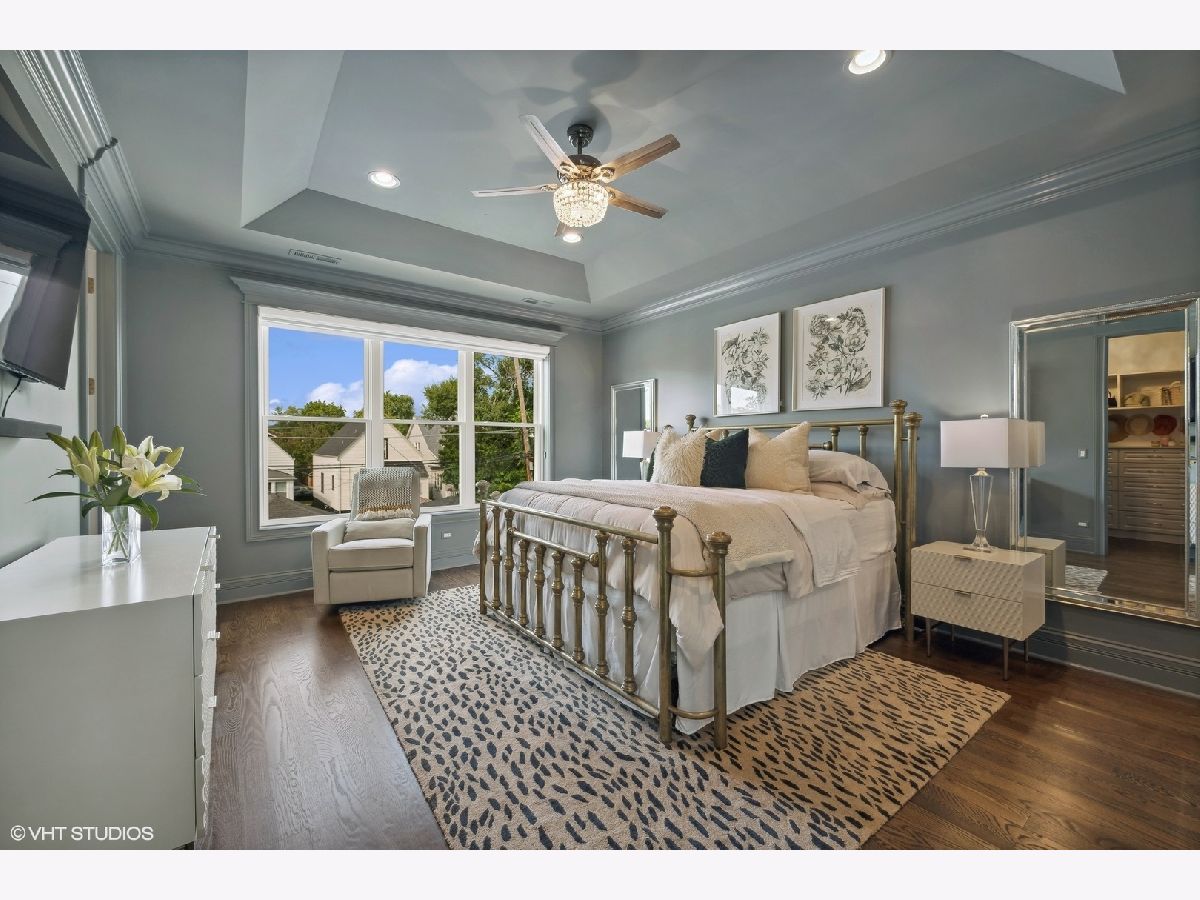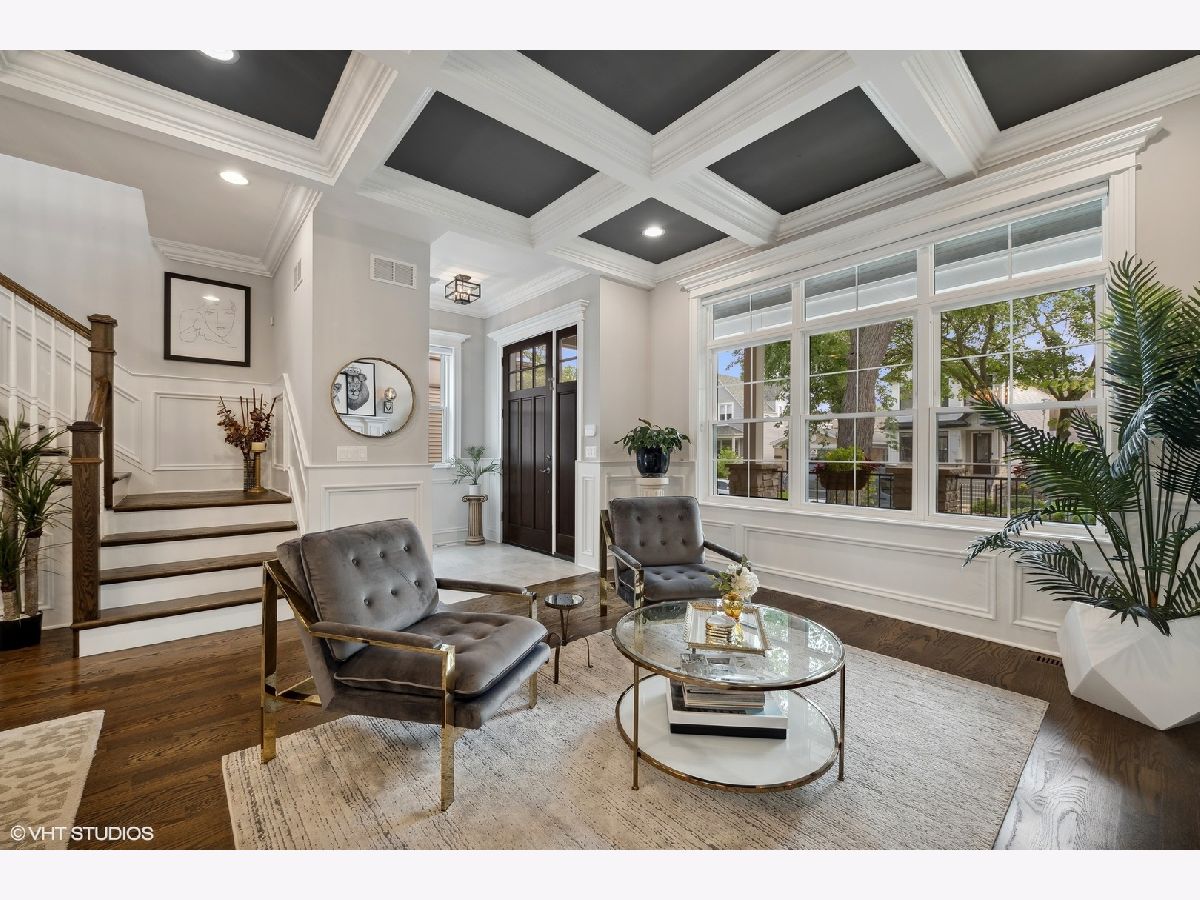 Impeccable newer construction single-family residence on an extra wide, 30' lot offering great curb appeal + the perfect charming covered front porch and fenced in back yard. Revel in its generously proportioned and open floorplan boasting 10' ceilings, hardwood floors and an of abundance of natural light throughout. The generous 4,000 sqft includes 4 bedrooms on the upper level + 5th bedroom in the lower level. Open concept living/dining room with gas fireplace, custom millwork, and coffered ceilings. Entertainer's kitchen featuring floor-to-ceiling white soft close cabinetry with crown molding detail and custom accent lighting, quartz counters, Thermador stainless appliances, and island with bar seating and beverage center. A cozy breakfast nook is the perfect place to gather. Adjoining family room with second fireplace surrounded by custom built ins and oversized windows. A convenient and organized rear mud room leads you to your fully fenced back yard with grass and pavers - leading you to your 2 car garage. Your primary bedroom is a sanctuary with two custom closets with built-in organizers, and the ensuite bath offers a dual vanity, quartz counters, freestanding tub, frameless glass shower, and designer tile. Three guest bedrooms, full bath with dual vanity and tub, and side by side laundry with washer/dryer complete the upper level. Finished lower level includes large recreation room featuring wet bar with sink and beverage center, 5th bedroom with full bath. This home feels brand new with the statement lighting fixtures, window treatments, custom ceiling details and more! Incredible location in Irving Park - Walk to Horner Park and the 312 RiverRun - stretching along the North branch of the Chicago River. Proximity to I90, the Blue Line, Bradley & McFetridge Sports Centers, DePaul, Lane Tech, Target, Jewel, Mariano's, restaurants, coffee shops and more! Nestled on a tranquil and picturesque block in East Irving Park, this home offers proximity to a wealth of activities.