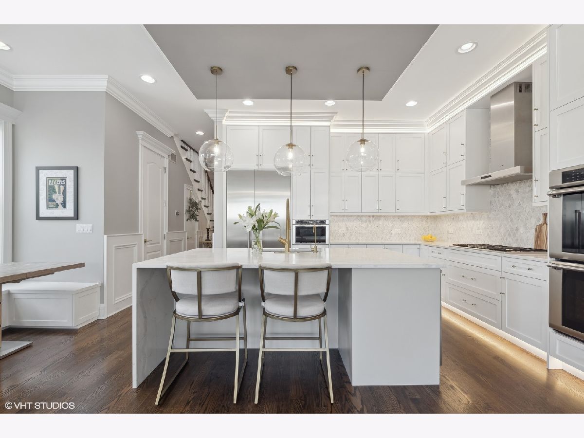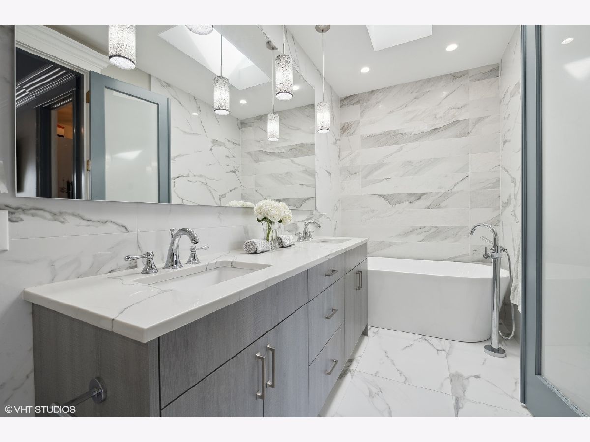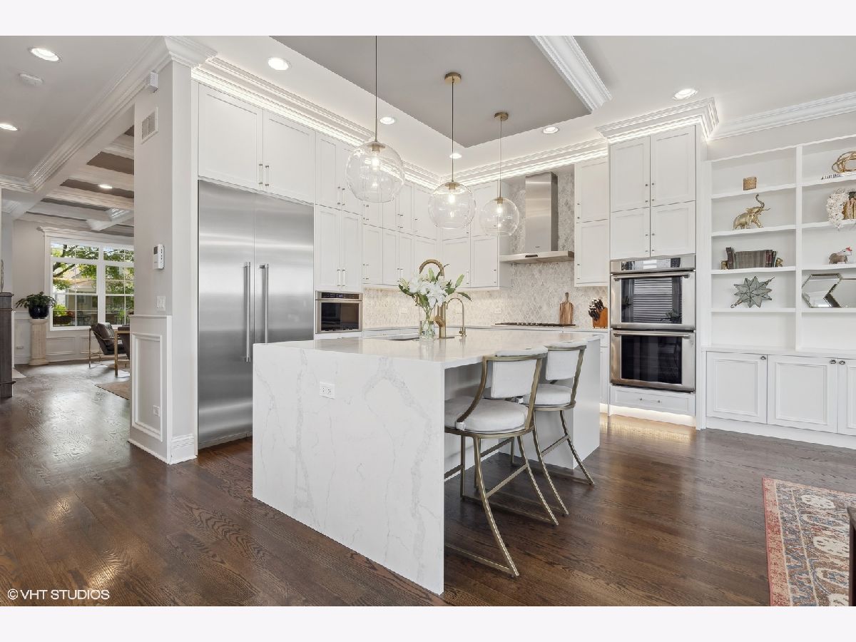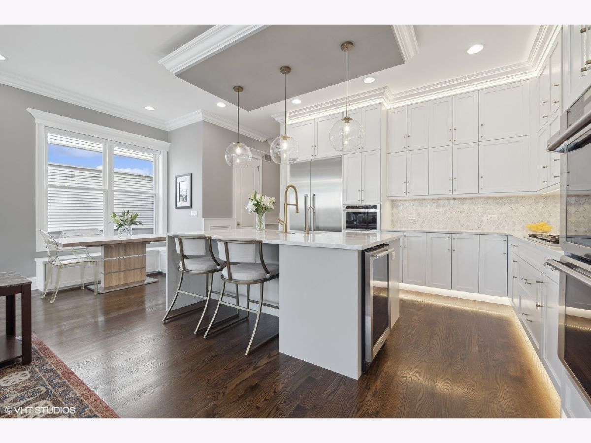 Impeccable newer construction single-family residence on an extra wide, 30' lot offering great curb appeal + the perfect charming covered front porch and fenced in back yard. Revel in its generously proportioned and open floorplan boasting 10' ceilings, hardwood floors and an of abundance of natural light throughout. The generous 4,000 sqft includes 4 bedrooms on the upper level + 5th bedroom in the lower level. Open concept living/dining room with gas fireplace, custom millwork, and coffered ceilings. Entertainer's kitchen featuring floor-to-ceiling white soft close cabinetry with crown molding detail and custom accent lighting, quartz counters, Thermador stainless appliances, and island with bar seating and beverage center. A cozy breakfast nook is the perfect place to gather. Adjoining family room with second fireplace surrounded by custom built ins and oversized windows. A convenient and organized rear mud room leads you to your fully fenced back yard with grass and pavers - leading you to your 2 car garage. Your primary bedroom is a sanctuary with two custom closets with built-in organizers, and the ensuite bath offers a dual vanity, quartz counters, freestanding tub, frameless glass shower, and designer tile. Three guest bedrooms, full bath with dual vanity and tub, and side by side laundry with washer/dryer complete the upper level. Finished lower level includes large recreation room featuring wet bar with sink and beverage center, 5th bedroom with full bath. This home feels brand new with the statement lighting fixtures, window treatments, custom ceiling details and more! Incredible location in Irving Park - Walk to Horner Park and the 312 RiverRun - stretching along the North branch of the Chicago River. Proximity to I90, the Blue Line, Bradley & McFetridge Sports Centers, DePaul, Lane Tech, Target, Jewel, Mariano's, restaurants, coffee shops and more! Nestled on a tranquil and picturesque block in East Irving Park, this home offers proximity to a wealth of activities.