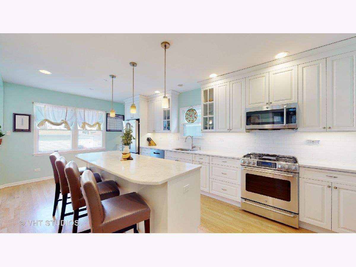 This Victorian beauty is located on one of the best blocks in the Bell School District in North Center. Tastefully renovated in 2014 and 2016, this home is the perfect mix of vintage charm and modern finishes making it warm and inviting - truly unique! Featuring 4 bedrooms/3.1 baths on an oversized lot, there is plenty of room for a growing family. As you enter the home, you are greeted by beautiful hardwood floors, stained glass windows and the original built-in hutch/bookcase in the family room. These period features are well balanced by the modern kitchen with large island, quartz countertops and mudroom to drop boots and backpacks. Head up to the second floor where you'll find the master bedroom suite with double vanities, soaking tub, separate shower, large walk-in closet, and room for sitting area/desk. Two other generous bedrooms and full bathroom round out the second floor. Up one more flight of stairs to the third floor which has the 4th bedroom, full bathroom and a bonus living area perfect for your office or teen hangout. The entire third floor can be a private sanctuary for out-of-town guests, in-laws, or nanny/au pair. The dry basement with high ceilings is perfect for fitness enthusiasts, hobbyists, or finish to create a whole other level of living/entertaining. Backyard features concrete patio and custom-built playset with activities for all ages. Easily walk to all neighborhood schools (Bell Elementary School, St. Ben's, Lane Tech HS and Lake View HS) and a 3-block walk to the Irving Park Brown Line for easy access downtown. Be ready to make your move and welcome home!