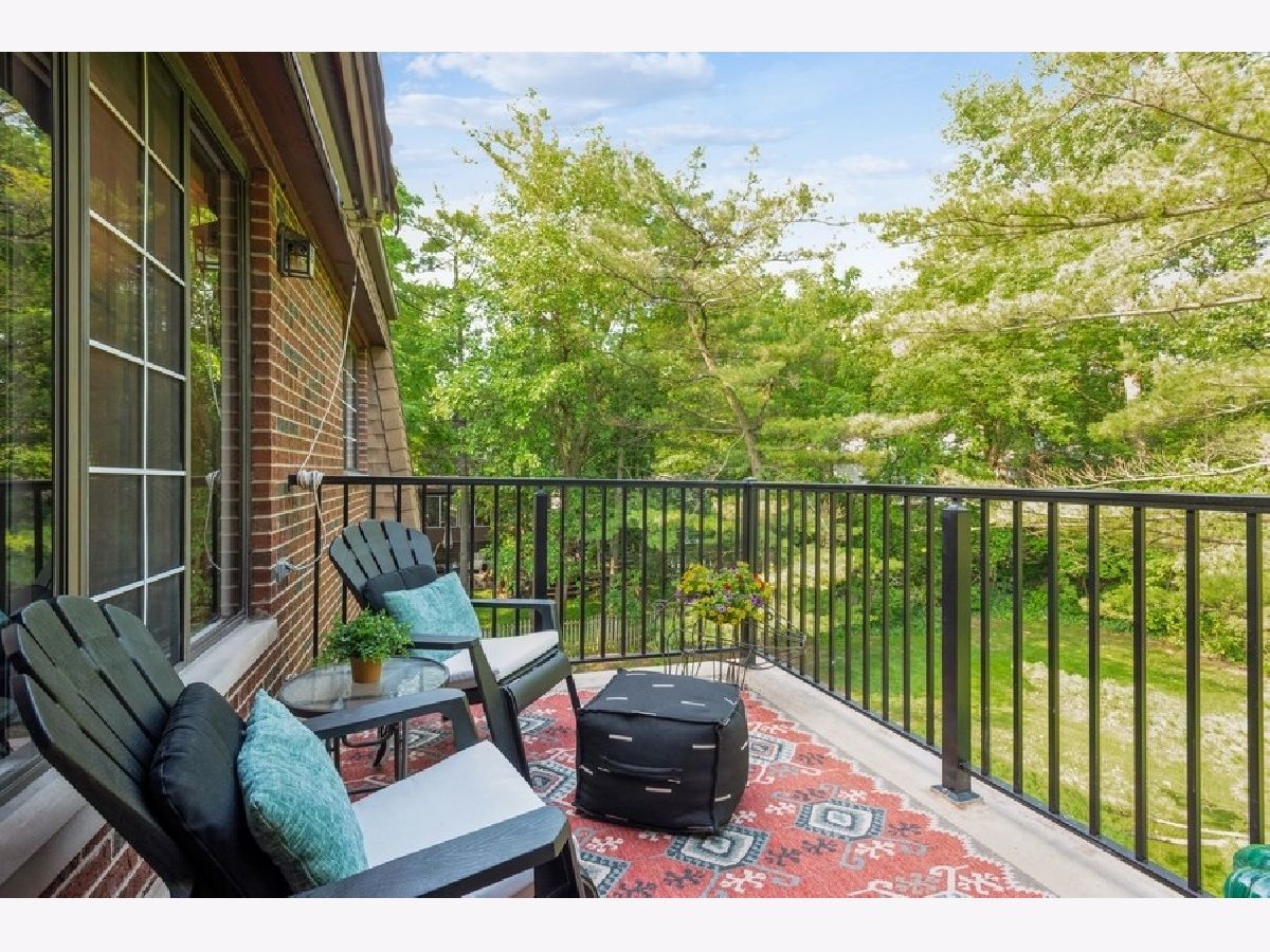 Sunlight streams through oversized windows in this 2 bedroom, 2 bath condo located in the most private corner of this lovely, established courtyard community in downtown Glen Ellyn. Open floorplan provides spacious living area with gas fireplace. Updated eat-in kitchen with newer appliances. Dedicated dining area. Gleaming hardwood floors and updated lighting and ceiling fans. Serene master bedroom with custom doors and ensuite full bath. Spacious bedrooms both feature built-in closet organizers. 2nd bath was recently given a lively refresh. Gorgeous views of verdant landscape enjoyed from your private patio with retractable remote-controlled awning allowing you to comfortably relax or entertain. In-unit laundry room. 1-car private garage with built-in storage shelves and wall-mounted bike rack. Ample guest parking spaces. Recently renovated common hallways and lighting. Close to Metra, downtown shops, restaurants and movie, Prairie Path, Lake Ellyn and more. Monthly assessment provides water, trash/recycling, exterior maintenance (snow/lawn) and common insurance. Don't miss our complete list of features and improvements in photo showcase. Check out our interactive walk-through floorplan and schedule a showing for your chance to tour this light and bright gem.