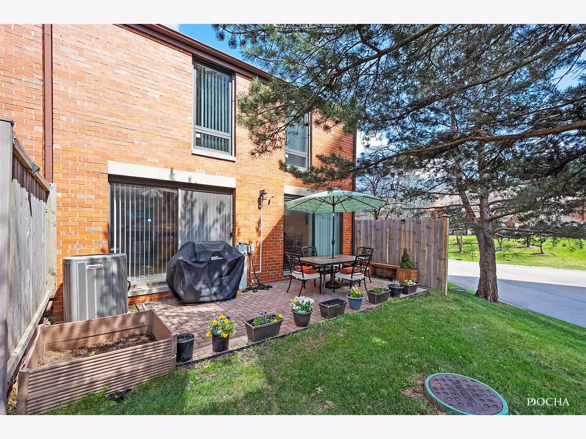 Welcome home to your rarely available beautifully updated end-unit in Glenview's desirable subdivision of Triumvera offering 3 BRs, 2.5 Bs + FR! End-unit featuring 3 large sliding patio doors (2020) in Kitchen, DR, and LR along with 4 new windows (2021) in an above grade Family Room, ensuite Master Bedroom, and two additional family bedrooms with a shared bathroom. Granite counter-tops and hardwood floors. Large eat-in Kitchen & formal Dining Room each with their own 8-ft glass sliders to a 20x10 brick patio. Enjoy melodious bird songs in the sun-bathed larger end-unit Living Room (24x12) with an 8-ft window and another 8-ft sliding glass patio door that opens up into a balcony overseeing a canopy of trees around the property in this green complex. LR also boasts a fireplace, wet-bar, and built-in wall storage. 1 car attached garage with additional driveway space for a second vehicle. End-unit also features - 9x5 storage room with a sink & washer/dryer, 12-ft foyer, and 9x6 utility room leading to 24x12x5 lighted storage space with poured concrete. Resort-styled living with Recreation Center amenities including an indoor pool, exercise facilities, game room, lodge-like floor to ceiling fireplace, exercise facilities, yoga studio, library, and more! Ready to move in.