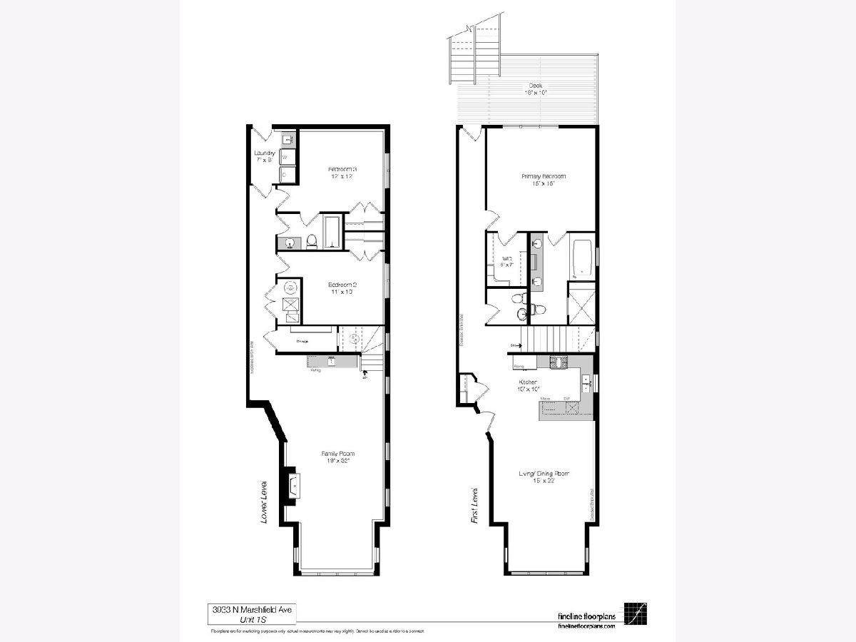 Perfectly situated on tree-lined Marshfield and within renowned Blaine School District, this 2400 square foot 3 bedroom/2.1 bathroom duplex down is within walking distance to both the coveted Southport Corridor and retail along Lincoln Ave. This home offers the perfect blend of modern updates with vintage character, including exposed brick, hardwood flooring, impressive millwork and ceiling height. The main level boasts an expansive living room that opens to an oversized sunlit dining nook with a wall of west-facing windows. The chef's kitchen features a plethora of cabinets, an oversized breakfast bar, stainless steel appliances, granite countertops and built out pantry. This extra wide floor plan offers an additional seating space in the kitchen and open hallways and stairwell with tons of natural light and a nearby powder room perfectly tucked away. The main floor primary suite includes an oversized bedroom with huge walk in closet, spa like bathroom with separate vanities and plenty of cabinet storage, a soaking jacuzzi tub, heated floors and steam shower. The lower level offers an additional wide living space with fireplace, tons of windows, surround sound and a wet bar with beverage refrigerator. This floor also features 2 additional large bedrooms with built out closets, full bathroom with tub and an oversized laundry room with side by side washer and dryer, sink and additional cabinetry for storage. The home also includes a sizable rear terrace that is covered, wired for surround sound and ideally located off the back hallway. All nestled within one of the city's most desired neighborhoods - close to numerous parks, restaurants, shops, Trader Joe's, Starbucks and transportation.