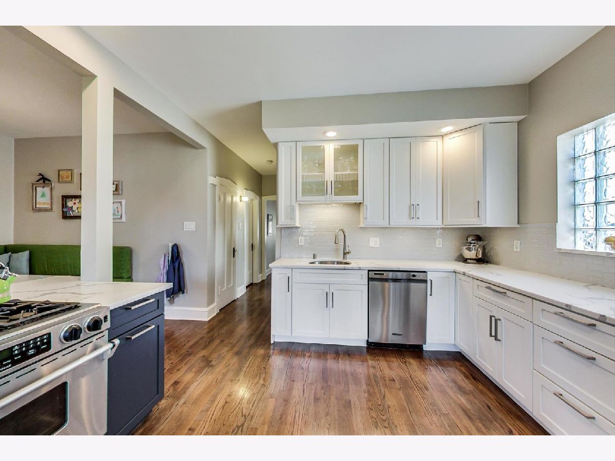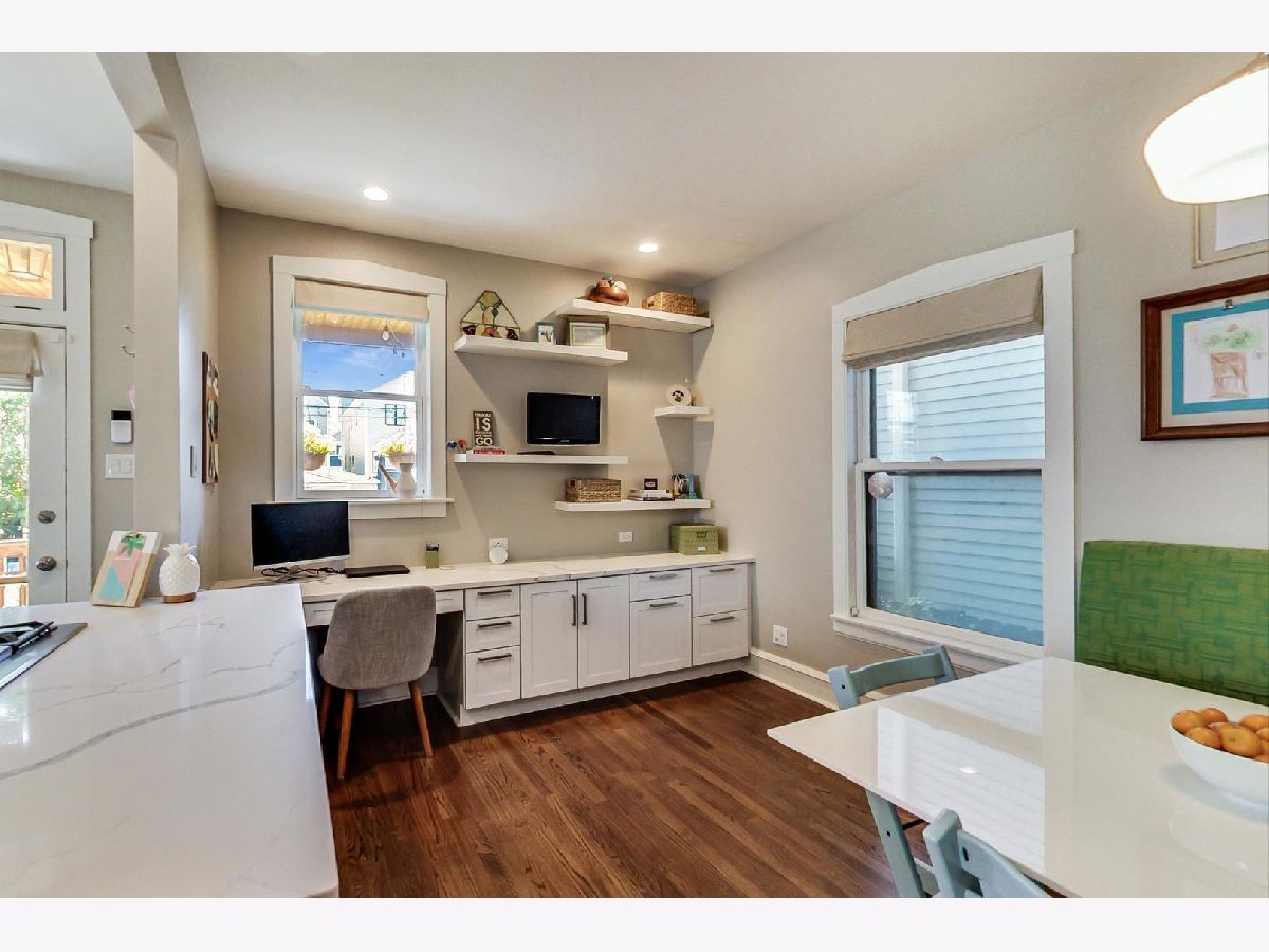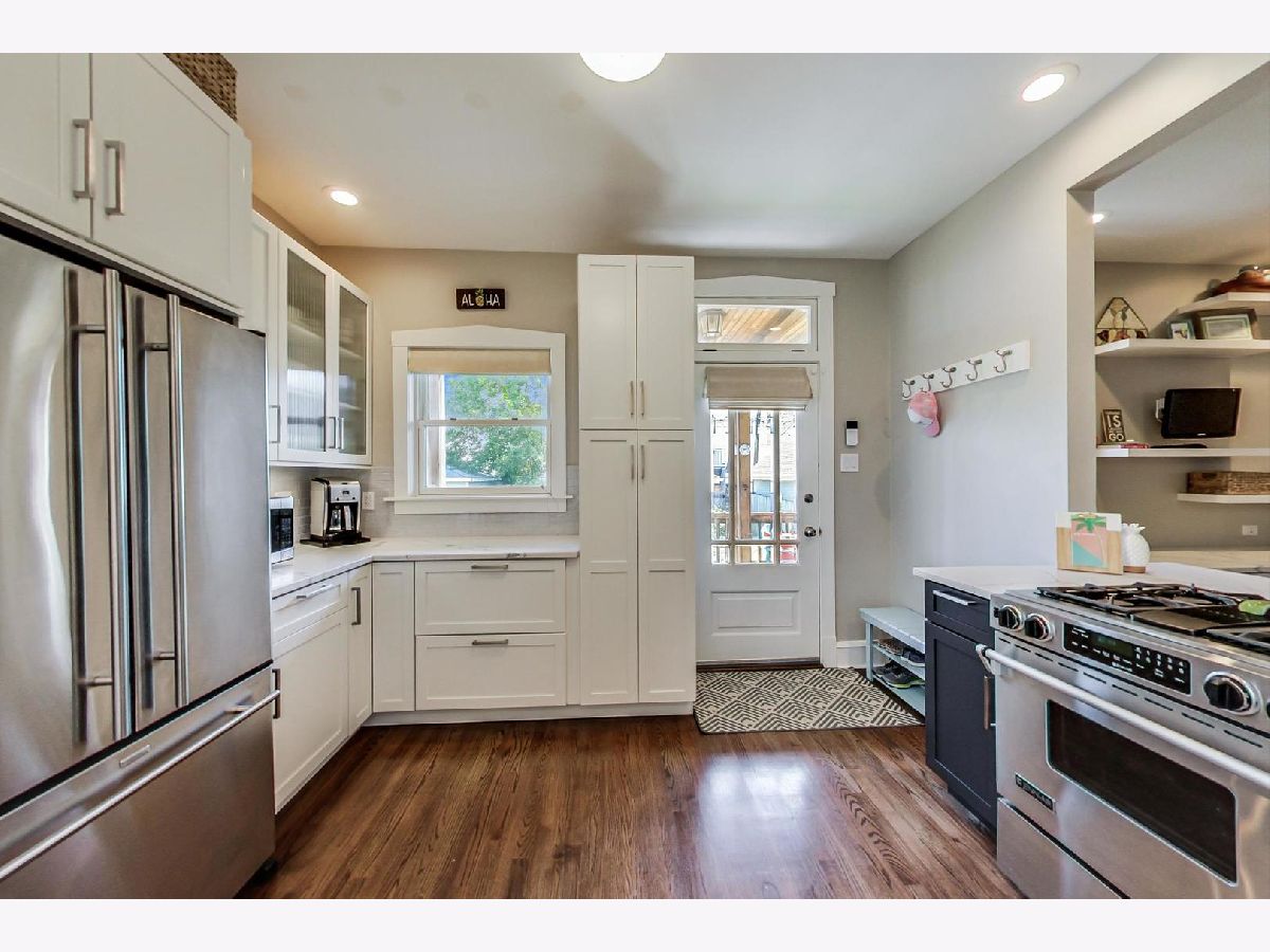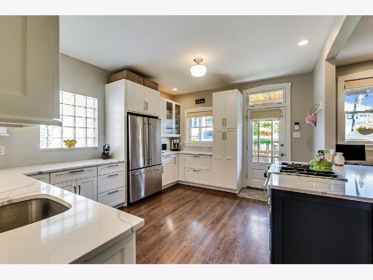 Absolutely darling classic brick bungalow featuring handsome exterior brick/stone detail! Situated on a 30 foot lot with a full 2nd floor addition makes this a treasured "jumbo bungalow"! A perfect blend of vintage with clean lined transitional modern, the beautifully updated 4 bedroom/2.5bath home has been meticulously maintained. 3 sided bay windows frame the front living room and formal dining room. Gleaming hardwood floors lead to a newly expanded modern styled eat-in kitchen! Kitchen features beautiful quartz, tiles, Jenn Air appliances, good sized pantry, sweet little "mud" space at back door. Expanded kitchen opens to very well thought out eat-in banquet with clever XL built in office/desk. Charming screen door opens to lovely covered rear porch overlooking good sized landscaped yard! 2nd floor features 3 bedrooms plus a cozy family room w/vaulted ceilings! Well sized primary bedroom also with vaulted ceiling has 2 walk-in closets and brand new spacious ensuite bath (2019) with huge walk-in shower. 1st floor full bath brand new (2020). Big unfinished walkout basement is clean as a whistle and ready for your finishing. Wonderful tree-lined street, walking distance to restaurants, Trader-Joes, train, Roscoe Village, Lincoln Square, Wells Park and multiple award winning public and private schools, and all the fun activities this fantastic North Center neighborhood has to offer!