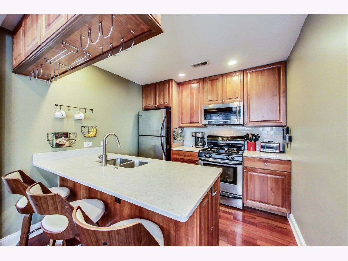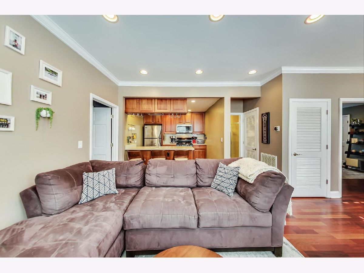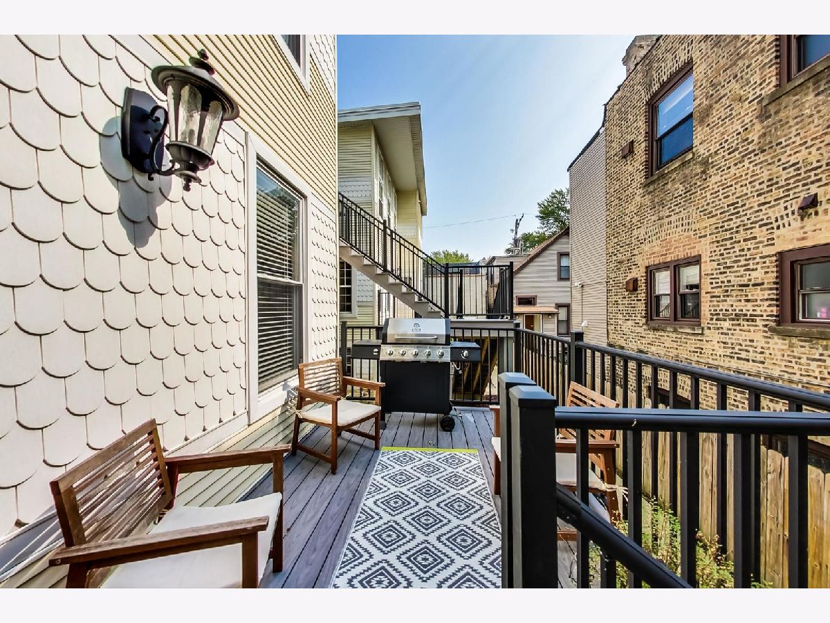 This is the one you have been searching for! Rare find high first floor 2 bed/2 bath, w/d in-unit, central HVAC, garage parking, private entrance and outdoor space! Many recent improvements include new bathroom vanities, new washer and dryer, brand new composite decking and front porch, newer front door and storm door. Higher end finishes include solid core doors, marble bath with separate shower and tub, crown molding and cherry wood flooring. Huge attached storage unit. Low assessments of $143/ month and taxes $5,495.05/ year. Located in Blaine school district and only .2 mi walk to Irving Park Brown Line Station.
